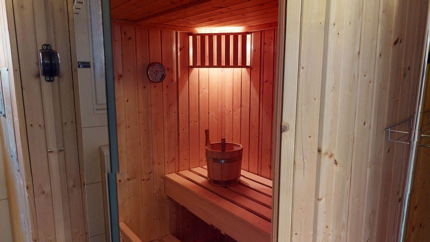 Das Haus verfügt über einen hellen Wohnbereich mit anschließender Essecke und eine schicke, komplett ausgestattete Einbauküche. Ein modernes Badezimmer mit eigener Sauna und zwei Schlafzimmer - eines mit einem Doppelbett und das andere mit zwei Einzelbetten - komplettieren das Ferienhaus.