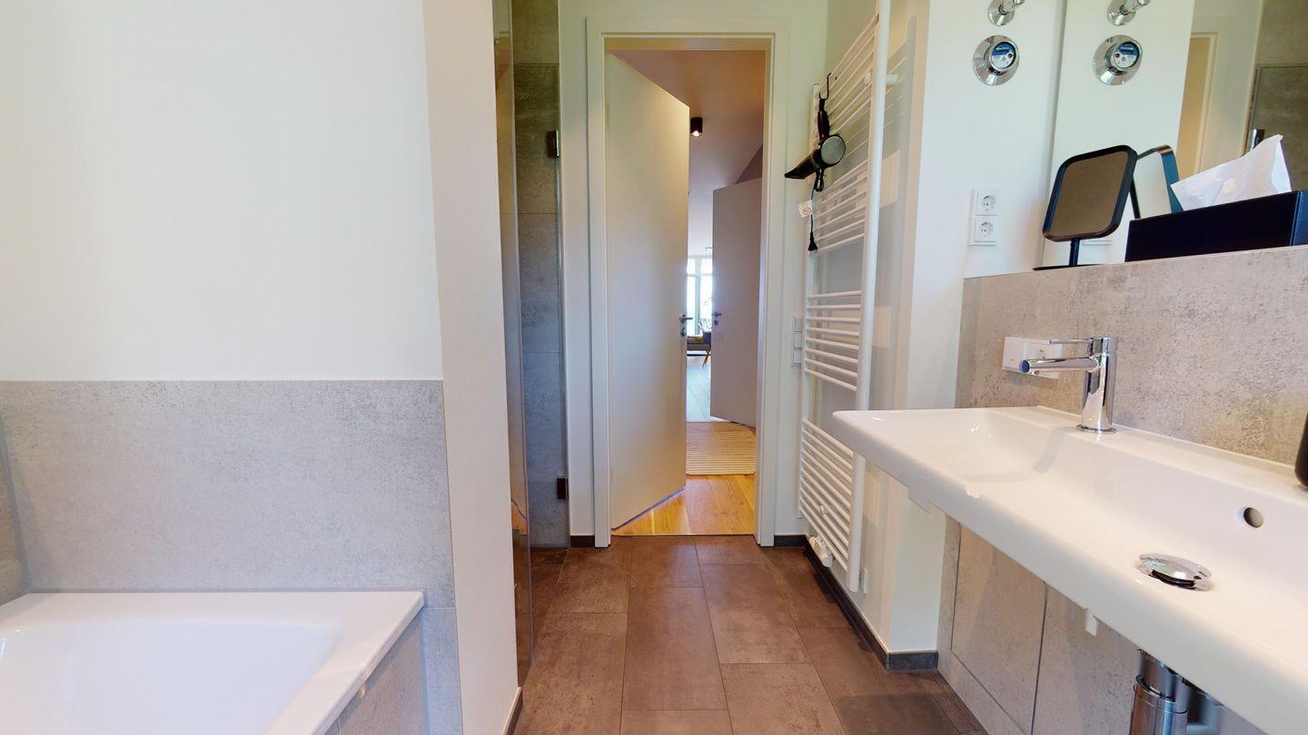 Besonders komfortabel sind die beiden Badezimmer, eines mit Dusche und Badewanne sowie ein zweites Badezimmer mit Dusche und integrierter Sauna – inklusive Blick aufs Meer! Die überdachte Loggia mit herrlichem Meerblick in Südlage ist mit einem Tisch, Elektrogrill, vier Stühlen und zwei Sonnenliegen ausgestattet.