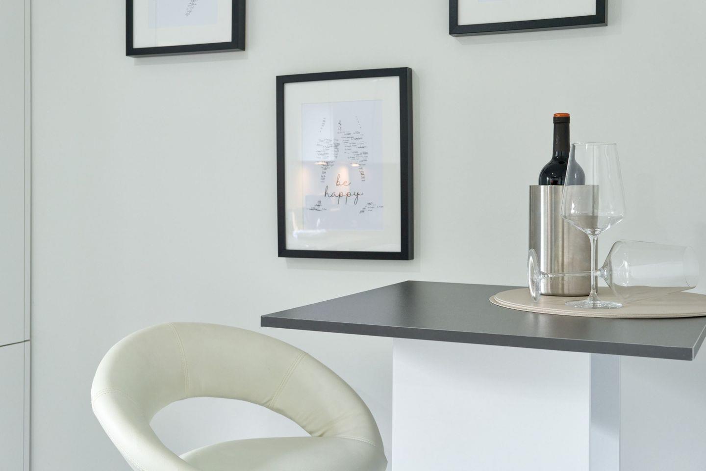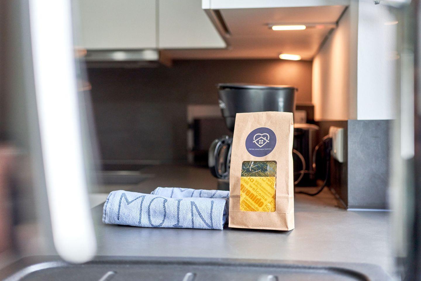 Die moderne und neue Küche ist komplett ausgestattet. Der große Kühlschrank bietet Ihnen reichlich Platz, damit Sie sich rundum wohlfühlen. Hochwertige Töpfe, Geschirr und Besteck lassen keine Wünsche offen. Ein Backofen mit Ceranfeld unterstützt Sie bei Ihren Kochwünschen. Eine Mikrowelle und eine Filterkaffeemaschine gehören ebenfalls zur Ausstattung.