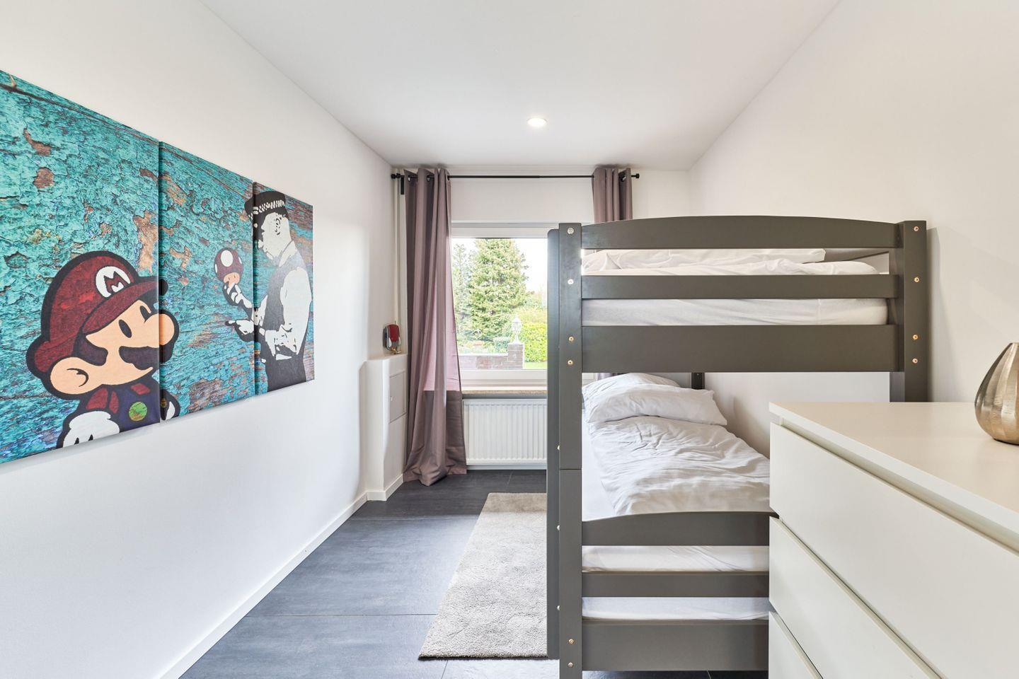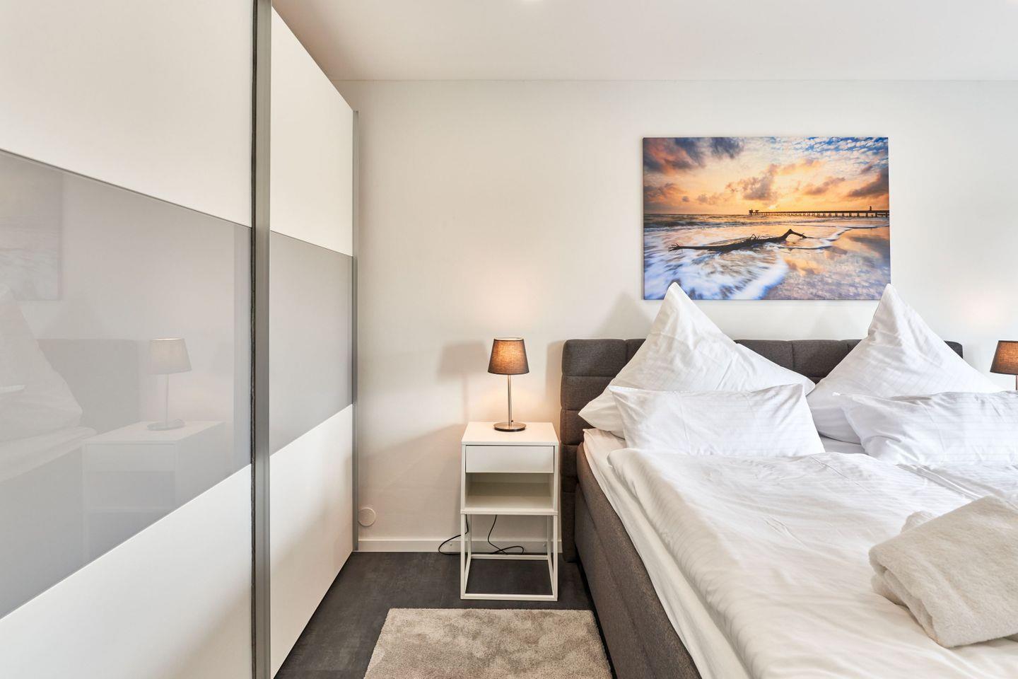Das Masterschlafzimmer verfügt über eine komfortables Boxspringbett (180x200cm), das Ihnen einen ruhigen und erholsamen Schlaf während Ihres Aufenthalts schenken wird. Im Kinderschlafzimmer ist ein Etagenbett (90x200cm) und schafft einen eigenen Bereich für schöne Träume nach einem Strandtag. Bitte beachten Sie, dass Wäschepakete nicht enthalten sind, sie können jedoch optional hinzu gebucht werden.