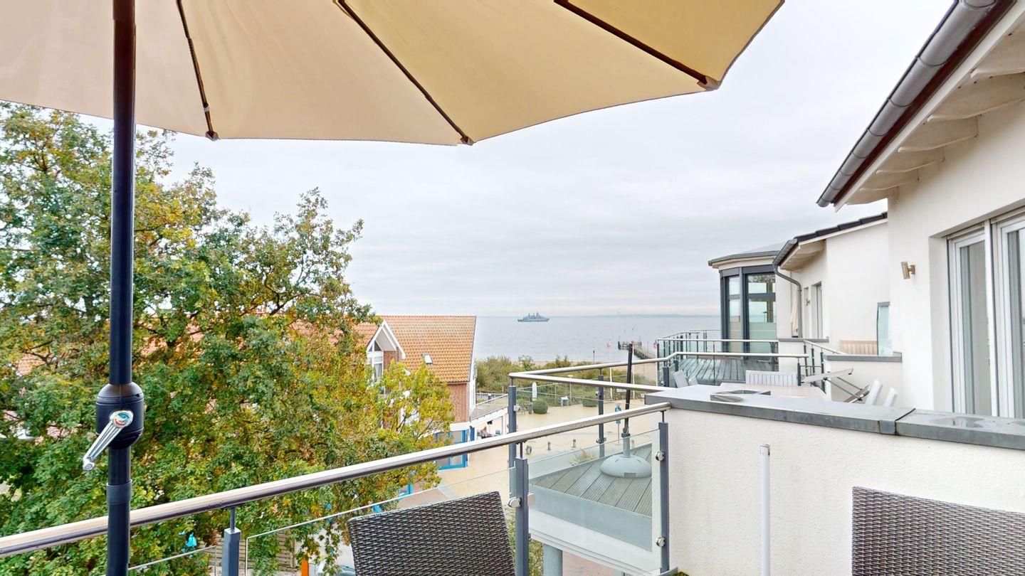 Von Ihrem Balkon mit Strandkorb können Sie auf die Lübecker Bucht schauen und herrliche Stunden an der frischen Luft verbringen.