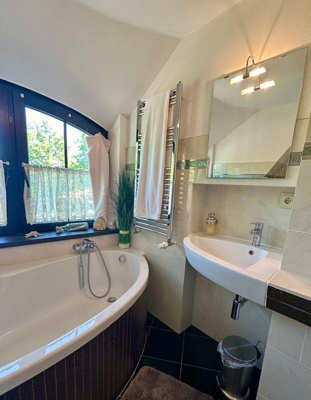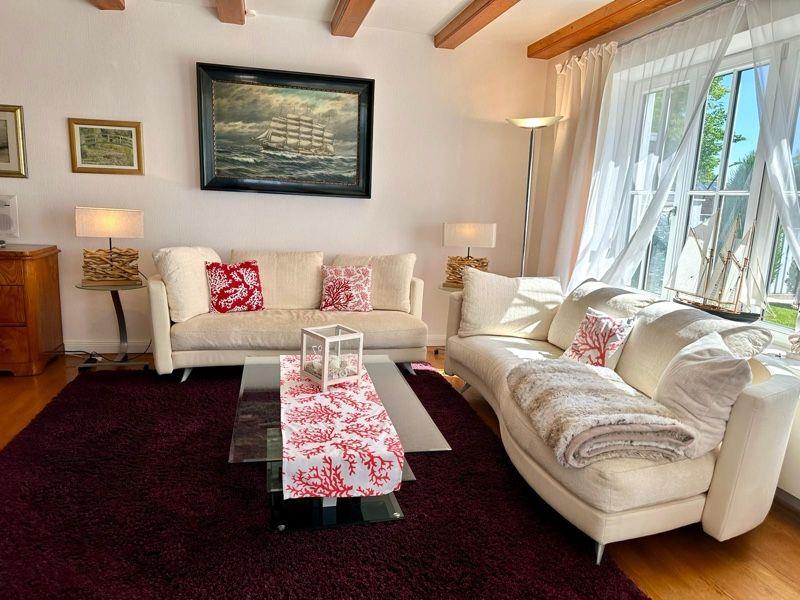 Das Hus op de Dün verfügt über 200 m² Wohnfläche auf drei Geschossebenen. Im Erdgeschoss betreten die Gäste über einen Flur unseren offenen Wohn- und Essbereich. Das lichtdurchflutete Wohnzimmer mit seinem geschmackvollen Interieur lädt zum gemütlichen Beisammensein oder entspannten Relaxen ein. Ein Holzkamin schenkt in der kühlen Jahreszeit wohlige Wärme und macht das Hus op de Dün jederzeit zu einem einladenden und gemütlichen Ort. Auch unsere neue, voll ausgestattete Küche wird über den Flur betreten. Sie ist auf einer Seite mit dem angrenzenden Essbereich verbunden, welcher genug Raum für Dinner mit Freunden oder gelungene Treffen mit der Familie bietet. Über den offenen Essbereich des Wohnzimmers hat man Zugang zu unserer windgeschützten Sonnenterrasse mit faszinierendem Meerblick und Blick auf den liebevoll gestalteten Garten. Hier kann man ein Sonnenbad genießen, Mahlzeiten einnehmen und entspannen! Im Erdgeschoss gibt es ein weiteres, abgeschlossenes Wohnzimmer mit Elektrokamin, Wintergarten und TV. Dieses Wohnzimmer verfügt über zusätzliche Aufbettungsmöglichkeiten mit einem Schlafsofa. Weiterhin bietet das Erdgeschoss ein schickes Gästebad mit bodengleicher Dusche. Im Obergeschoss erwartet die Gäste ein kleiner offener Flurbereich mit einer Pantryküche, einer Sitzgruppe und einem begehbaren Kleiderschrank mit Tresor. Daran schließt sich das Master-Schlafzimmer mit Dachterrasse und einer wunderbaren Sicht auf die Ostsee an. Das zweite Schlafzimmer mit seinem komfortablen Doppelbett lässt unsere Gäste wunderbar entspannen. Beide Zimmer bieten zusätzlich gemütliche Sitzmöglichkeiten und einen einladenden Schreibplatz. Das luxuriöse Badezimmer im Obergeschoss ist mit einer Badewanne und mit einem Bidet ausgestattet und enthält einen maßgefertigten Einbauschrank. Von allen Wohnräumen aus kann man beim Ausblick in den wunderbar gestalteten Garten oder auf das offene Meer die Gedanken schweifen lassen und sich ganz seinen Träumen hingeben. Im Untergeschoss steht ein weiteres exklusives Bad mit WC, Bidet, bodengleicher Dusche und einer Whirl-Eckbadewanne zur Verfügung.