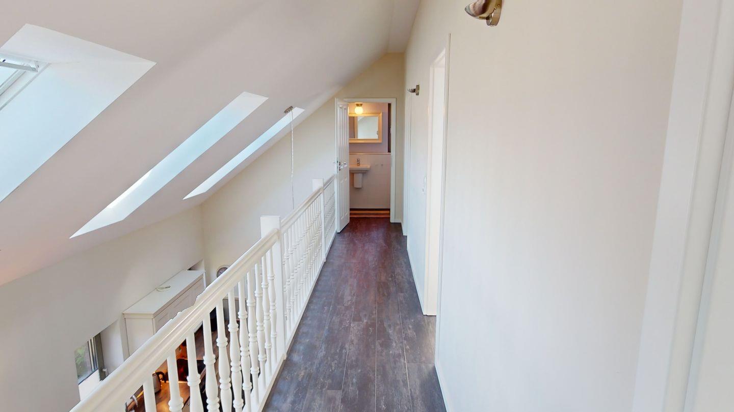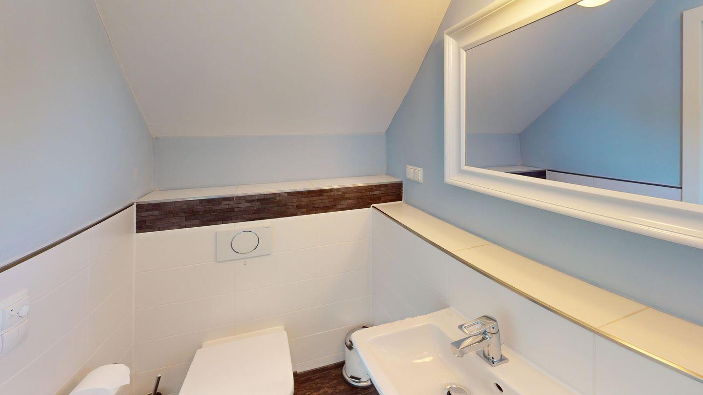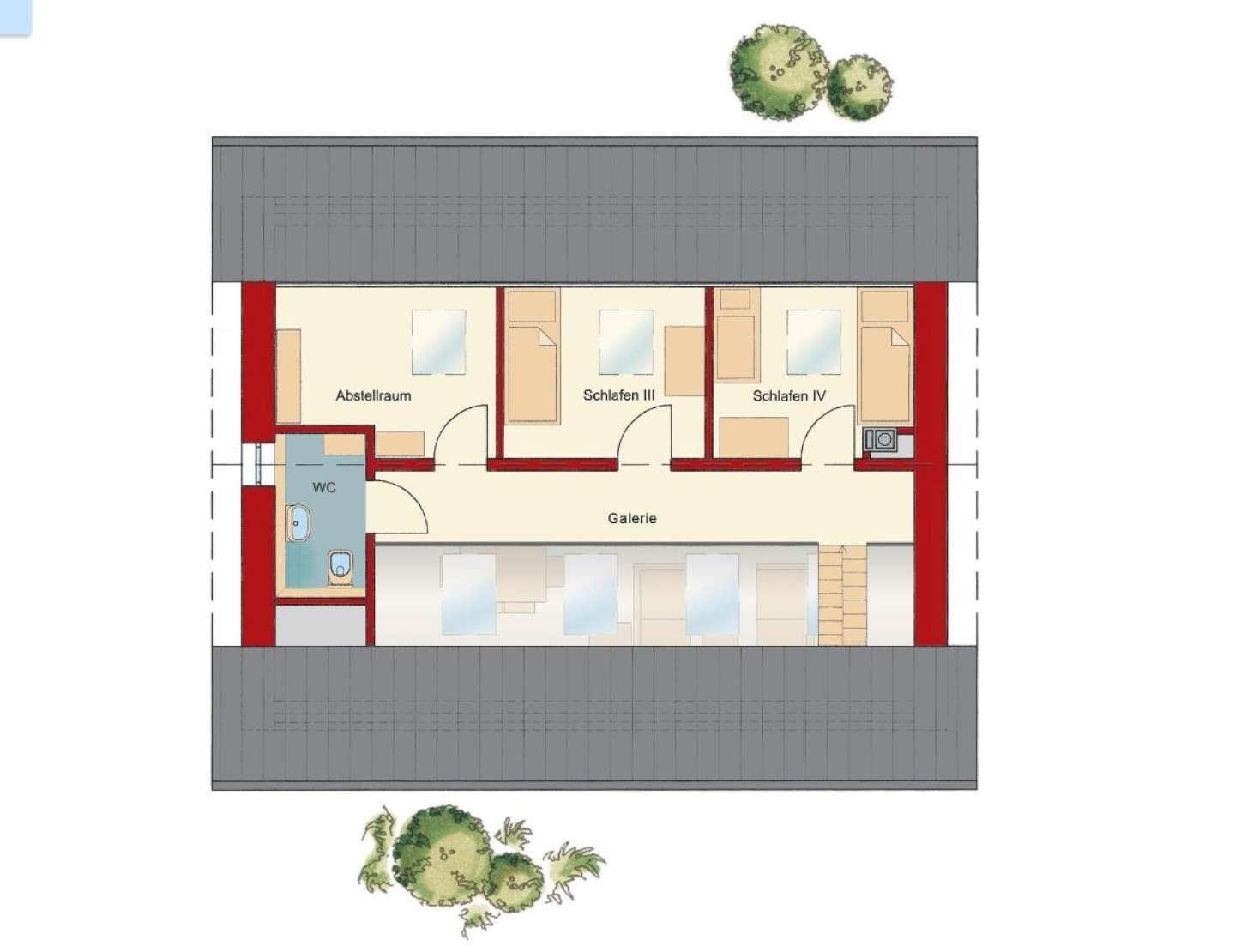 Das Obergeschoss ist ideal für Kinder. Es gibt zwei Schlafzimmer mit jeweils einem Einzelbett, eines davon zusätzlich mit einem Babybett. In der oberen Etage steht außerdem ein WC zur Verfügung.