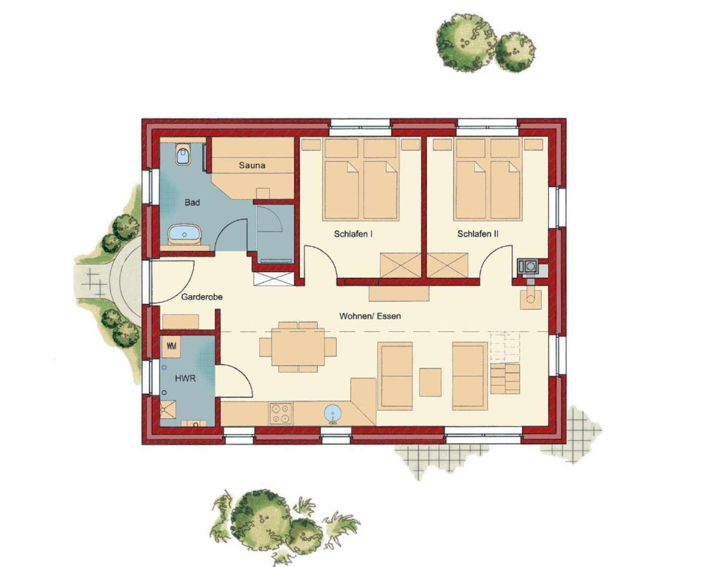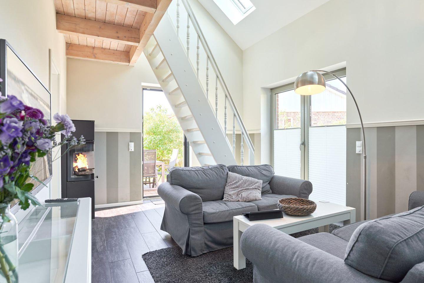 Abgerundet wird das Ferienhaus durch die Terrasse mit Strandkorb, Gartenmöbeln, Sonnenschirm und Holzkohlegrill für erholsame Tage an der frischen Luft.