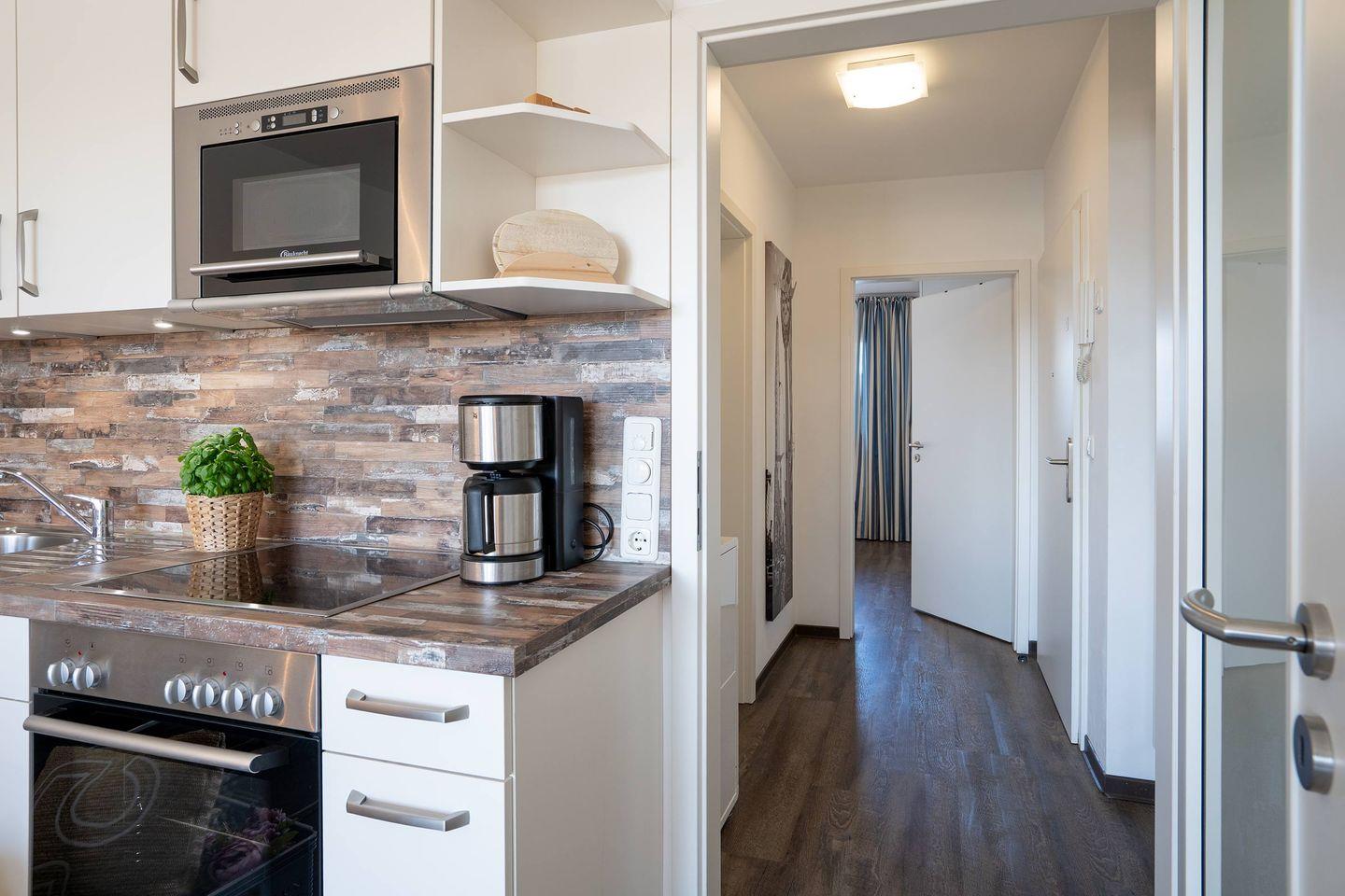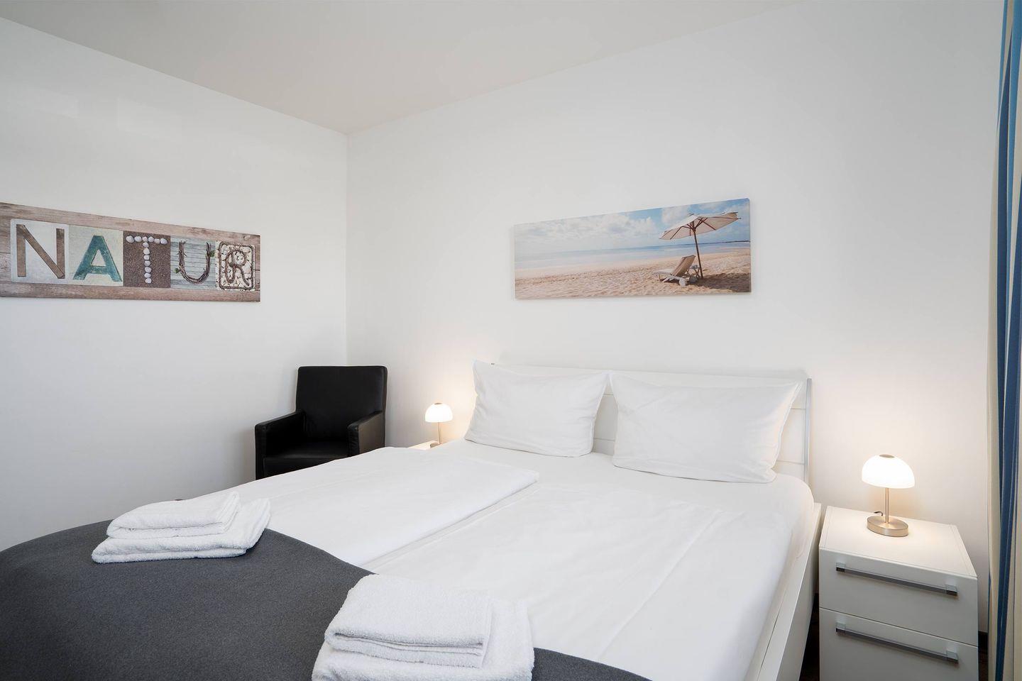 Das hochwertige 53m² große 2-Zimmer-Apartment im 1. Obergeschoss der Villa Meeresrauschen bietet Ihnen maximalen Komfort für bis zu 3 Personen und lässt keine Wünsche offen. Ihr Auto parken Sie bequem auf dem eigenen Tiefgaragenstellplatz, sodass Ihr Urlaub von Anfang an stressfrei beginnt.
