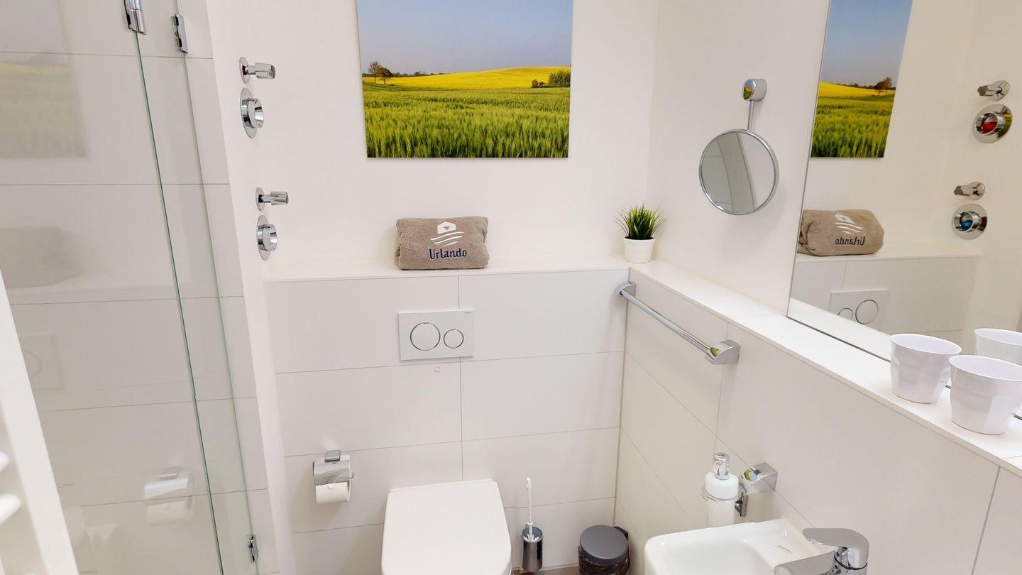 Eins der Schlafzimmer verfügt über ein komfortables Boxspringbett mit eigenem (Wannen-) Bad und Fernseher. Im zweiten Schlafzimmer erwartet Sie ein Etagenbett sowie zusätzlich ein Einzelbett. Im Bettkasten ist reichlich Spielzeug für Ihre Kinder untergebracht. Das zweite Bad im Flur ist mit einer Dusche ausgestattet. Kinderbett und Kinderhochstuhl sind vorhanden.