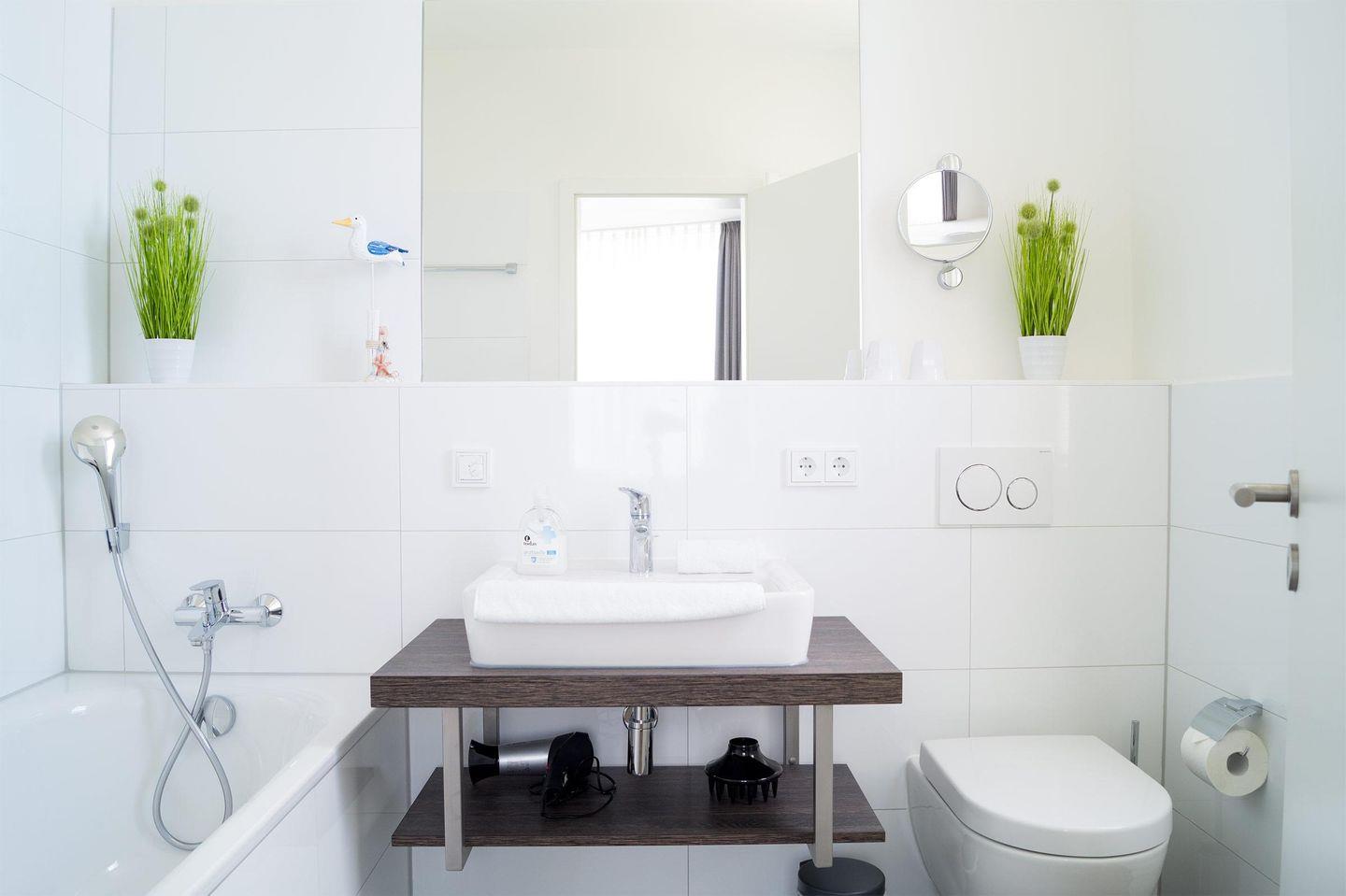 Durch die zwei Schlafzimmer können bis zu vier Personen hier einen entspannten Urlaub verbringen. Eines der Schlafzimmer ist mit einem komfortablen Boxspringbett-Doppelbett, einem großen Kleiderschrank und einem Flat-TV eingerichtet und hat ein eigenes Bad mit Badewanne. Das zweite Schlafzimmer verfügt über ein Einzelbett mit ausziehbarem "Kojenbett" sowie einem großen Kleiderschrank. Ein zusätzliches Duschbad bietet großen Komfort.