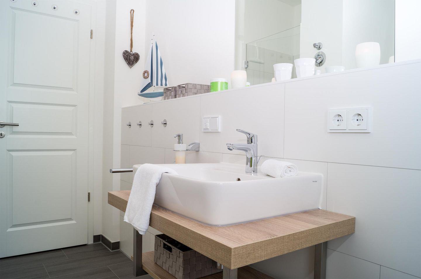 Es verfügt über ein nach Südwesten ausgerichtetes, lichtdurchflutetes Wohnzimmer mit Essbereich und anschließender offener, gut ausgestatteter Küche. Weiterhin gibt es ein Schlafzimmer mit einem Boxspring-Doppelbett für zwei Personen. Die Couch im Wohnzimmer dient als Schlafmöglichkeit und bietet weiteren Platz für 2 Personen. Abgerundet wird das Penthouse durch das moderne Bad mit Badewanne und Dusche. Je ein Kinderbett und ein Kinderhochstuhl sind in der Wohnung vorhanden.