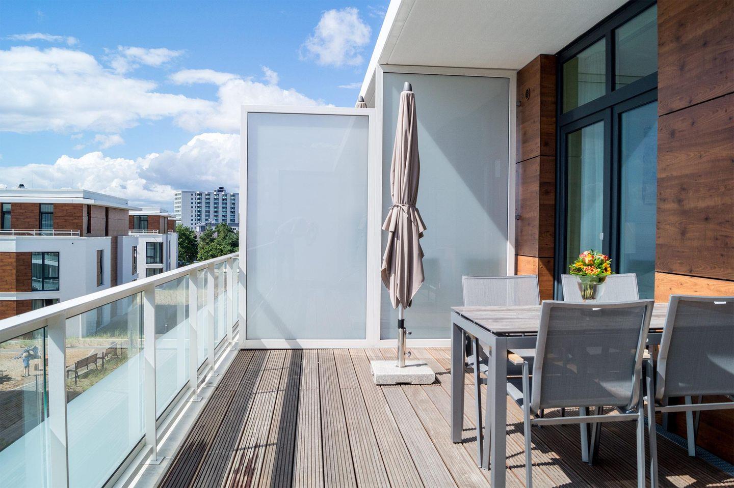 Im Schlafzimmer steht ein komfortables Boxspring-Doppelbett, ein geräumiger Kleiderschrank und ein Flachbildfernseher für Sie bereit. Auf den schönen Balkon gelangen Sie sowohl über das Wohnzimmer, als auch über das Schlafzimmer. Zur Ausstattung gehört eine Sonnenliege sowie ein Balkontisch mit vier Stühlen.
