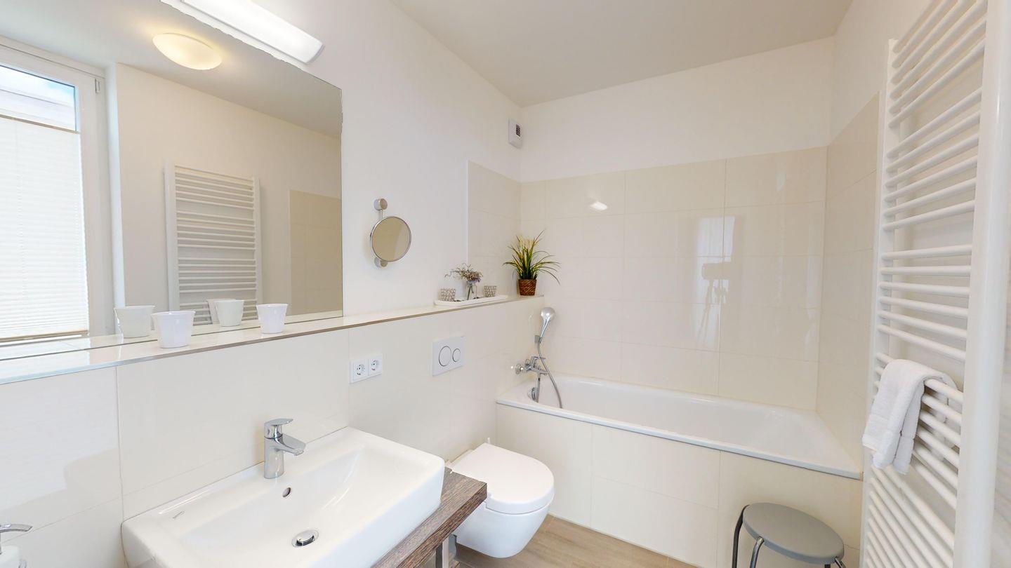 Die 4-Zimmer-Wohnung im zweiten Obergeschoss ist mit 99 m² für sechs Personen ausgerichtet. Im großen Wohnzimmer mit Küchenzeile genießen Sie Ihre Mahlzeiten, sowie Kaffee aus der Nespresso-Maschine und können gesellschaftliche Abende verbringen. Drei Schlafzimmer für je zwei Personen, dazu zwei Bäder (je eines mit Dusche und eines mit Badewanne) bieten größtmöglichen Komfort. Zwei der Schlafzimmer sind mit einem komfortablen Boxspringbett ausgestattet, das dritte Schlafzimmer verfügt über ein Einzelbett und ein ausziehbares "Kojenbett". Vom Balkon haben Sie den perfekten Meerblick über die Lübecker Bucht.