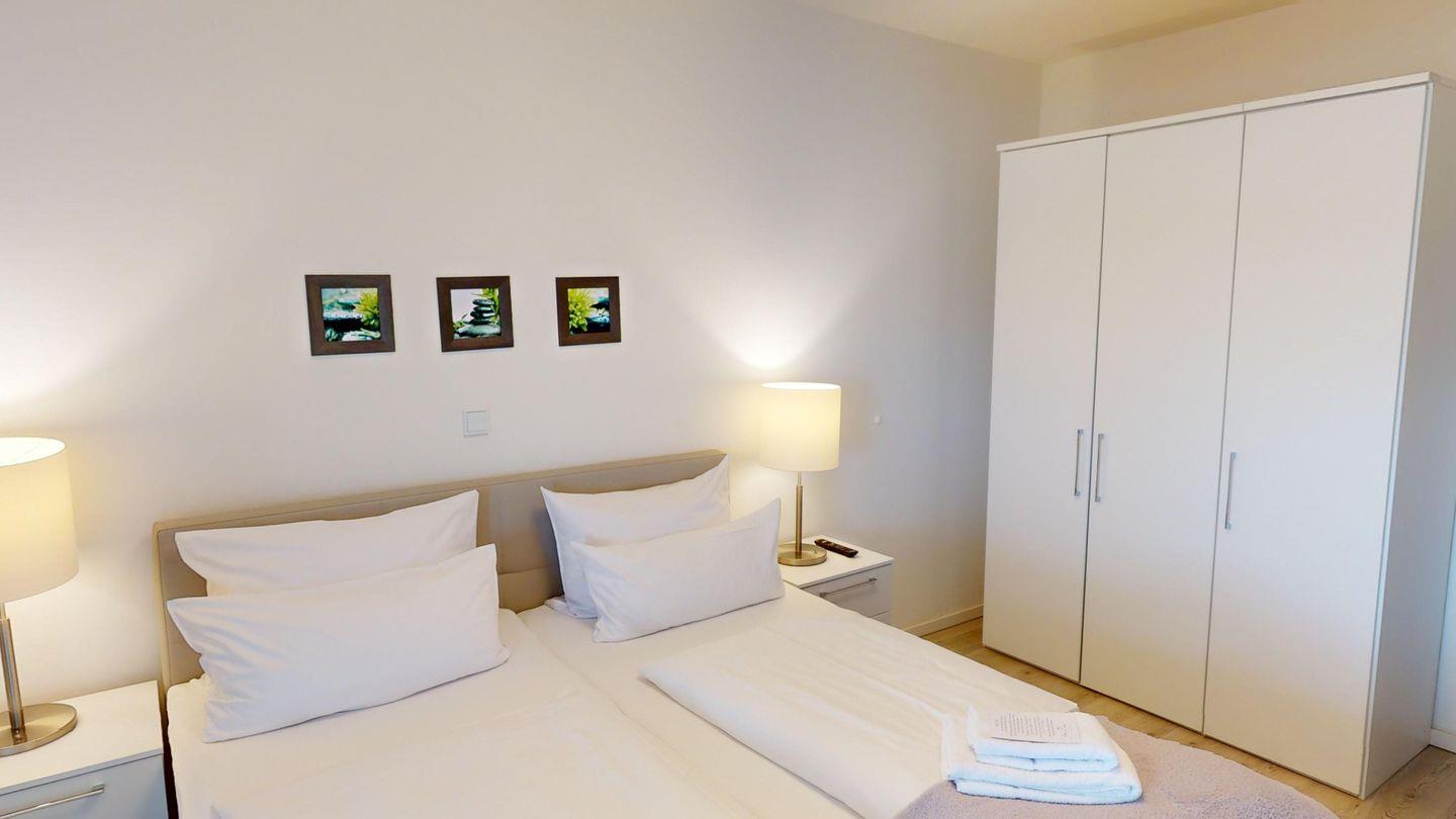Das 70 m² große 2-Zimmer Apartment befindet sich im 1. Obergeschoss des Hauses G. Es ist für eine Belegung mit 3 Personen ausgelegt, auch Ihr Hund ist herzlich willkommen.