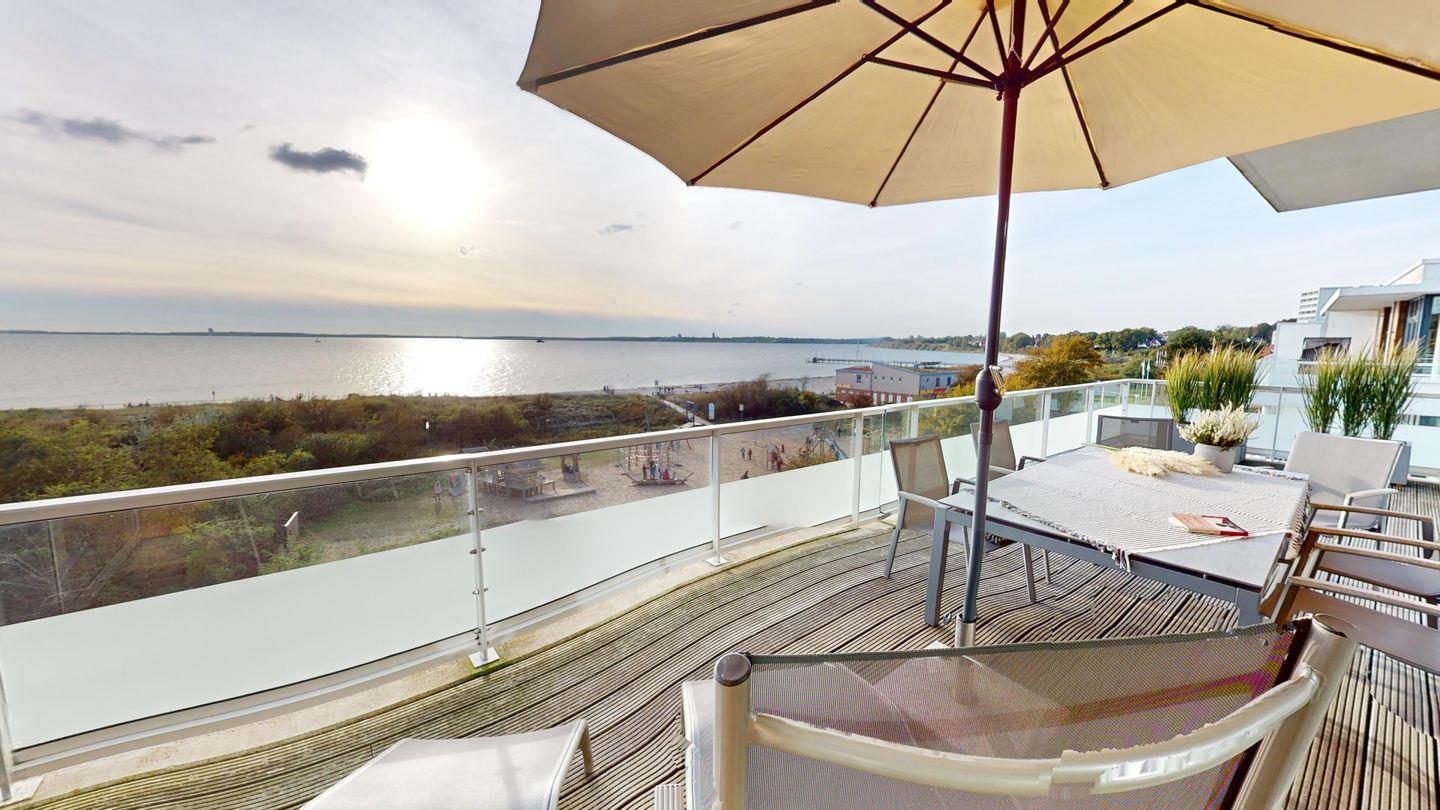 Diese Penthouse-Wohnung in erster Reihe bietet einen überwältigenden Blick auf die Ostsee und ist besonders hochwertig ausgestattet.
