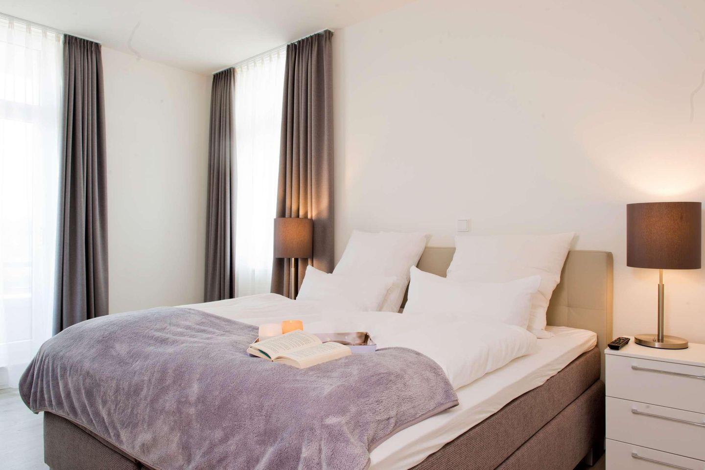 Der einladende Flur mit Garderobe und großem Spiegel führt Sie rechterhand direkt in das hell und freundliche Schlafzimmer. Die Ausstattung besteht aus einem Boxspring-Doppelbett, einem Kleiderschrank sowie einem großen Flachbildfernseher. Weiter über den Flur gelangen Sie wieder rechts in das Badezimme. Hier erwartet Sie eine Badewanne und ein Dusche, das Urlaubsgefühl ist perfekt!