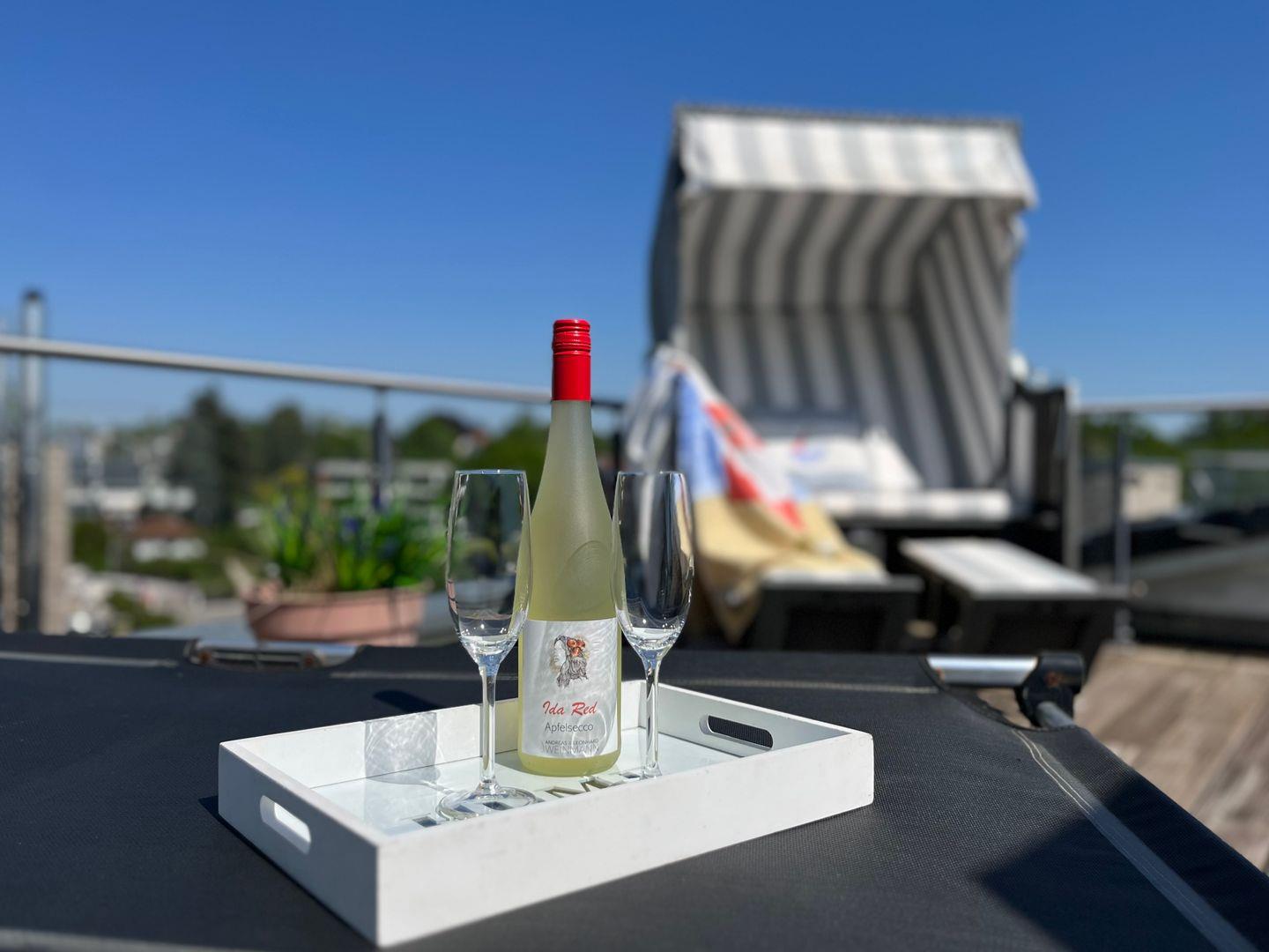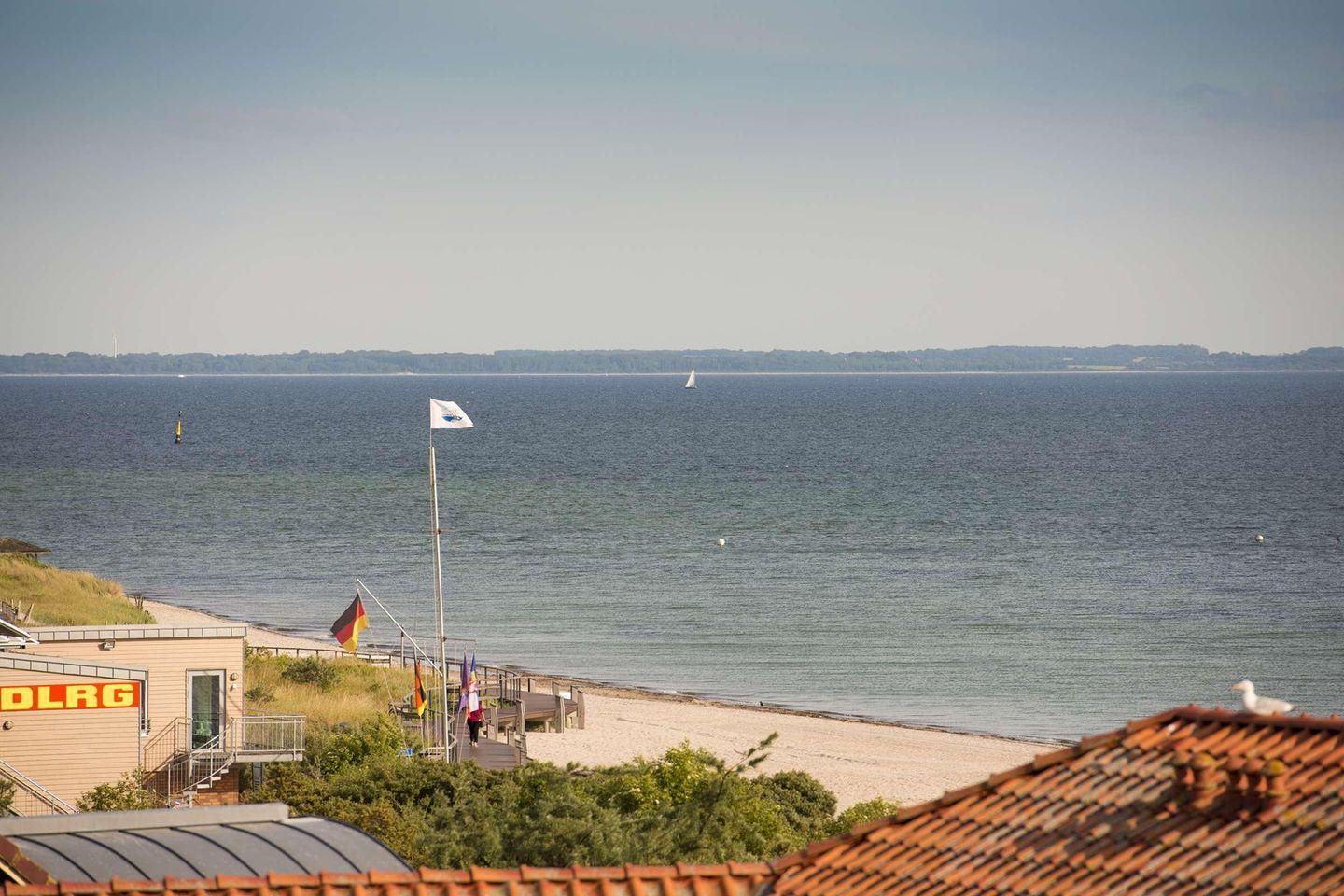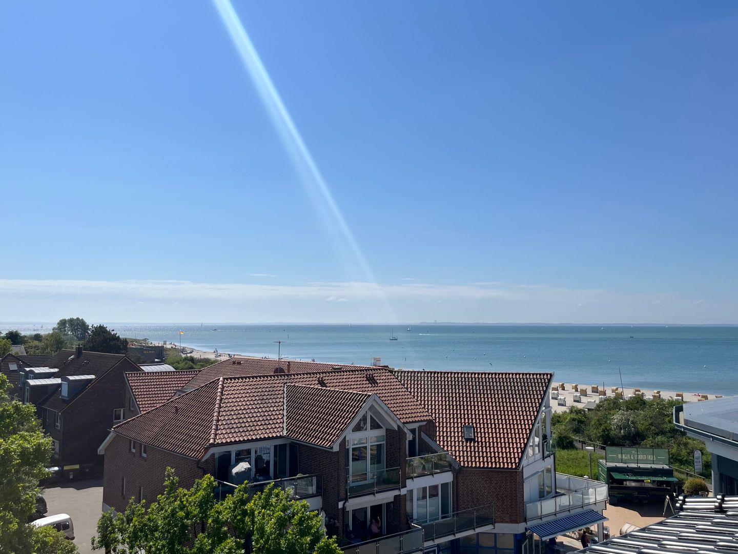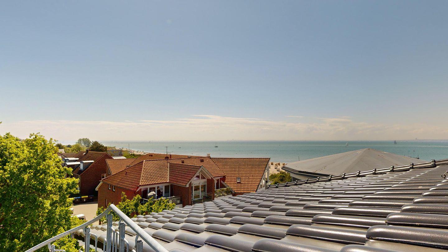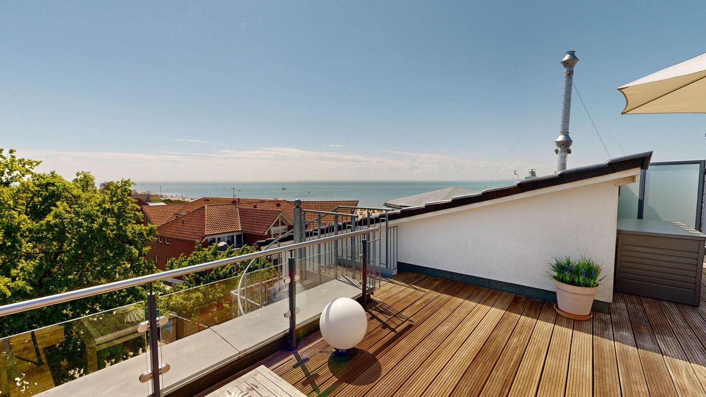 Von dort aus gelangen Sie über eine Wendeltreppe auf die zweite ca. 40m² große Dachterrasse mit einem atemberaubenden Panoramablick über die Ostsee bis zur Hafeneinfahrt Travemünde.