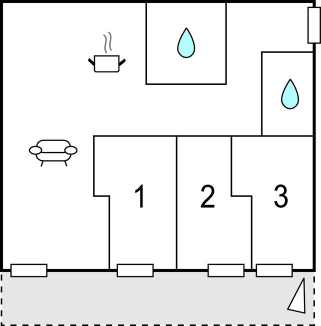Opholdsstue/køkken - 2 Sovepladser. (Sofa, madras eller lignende).