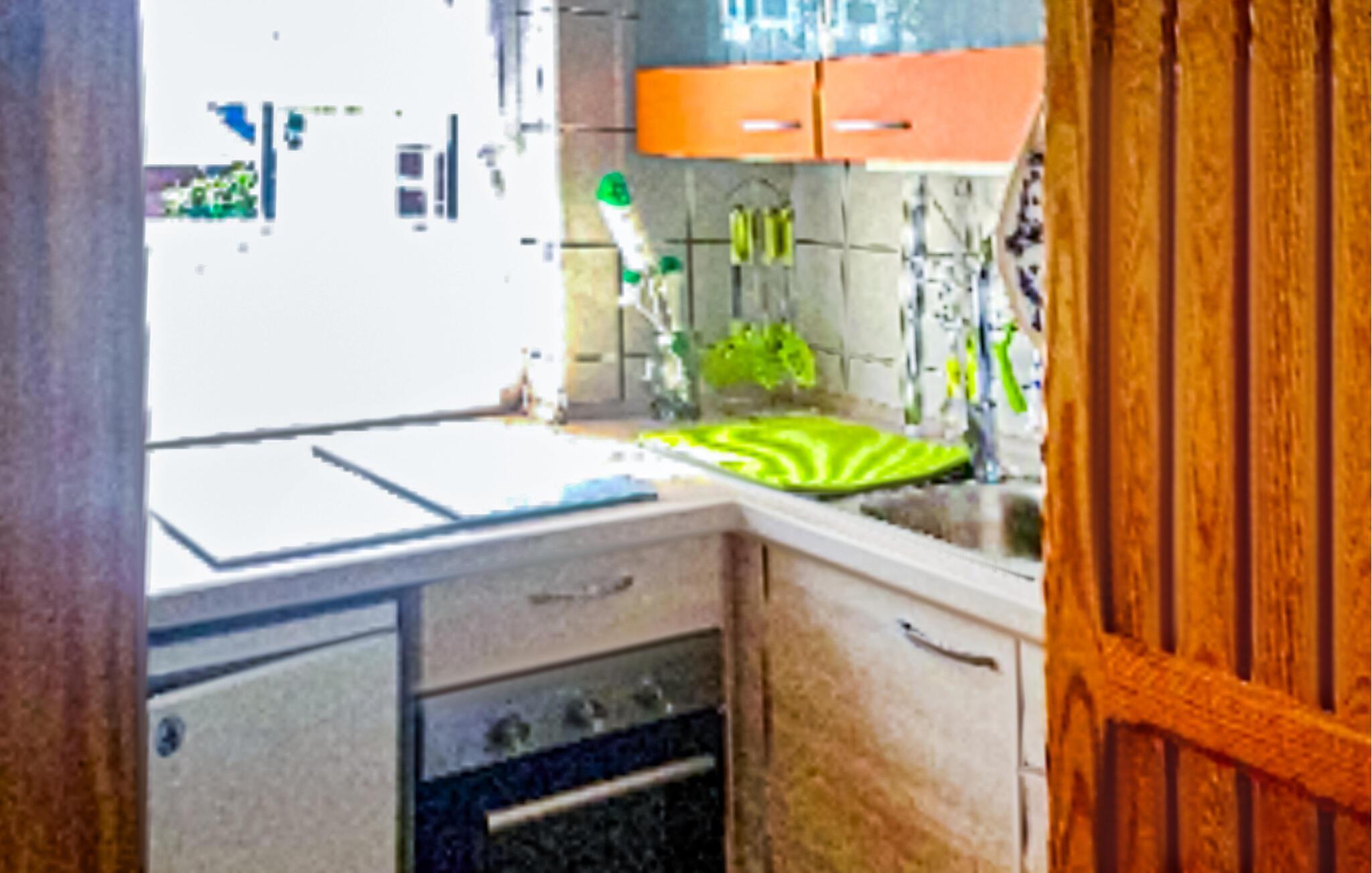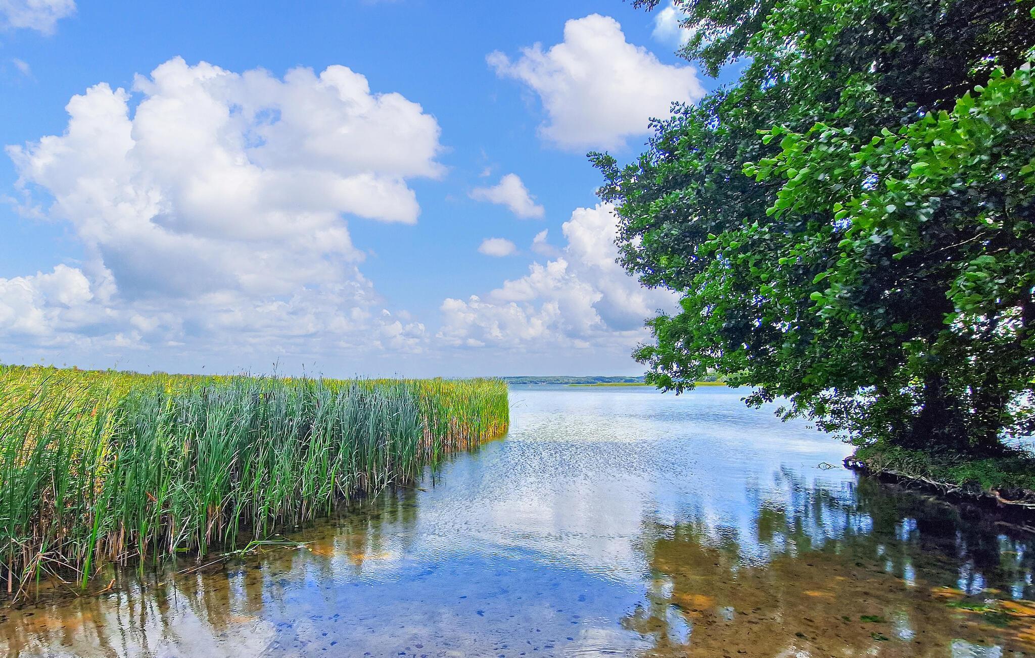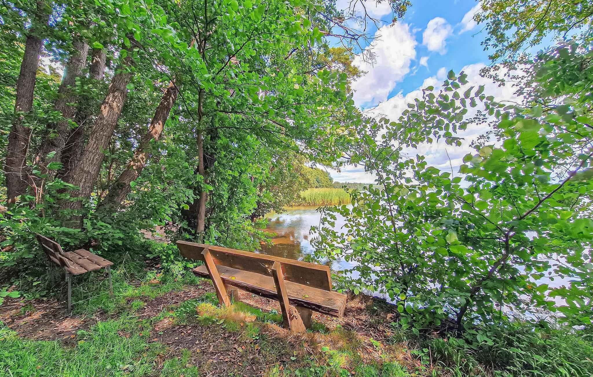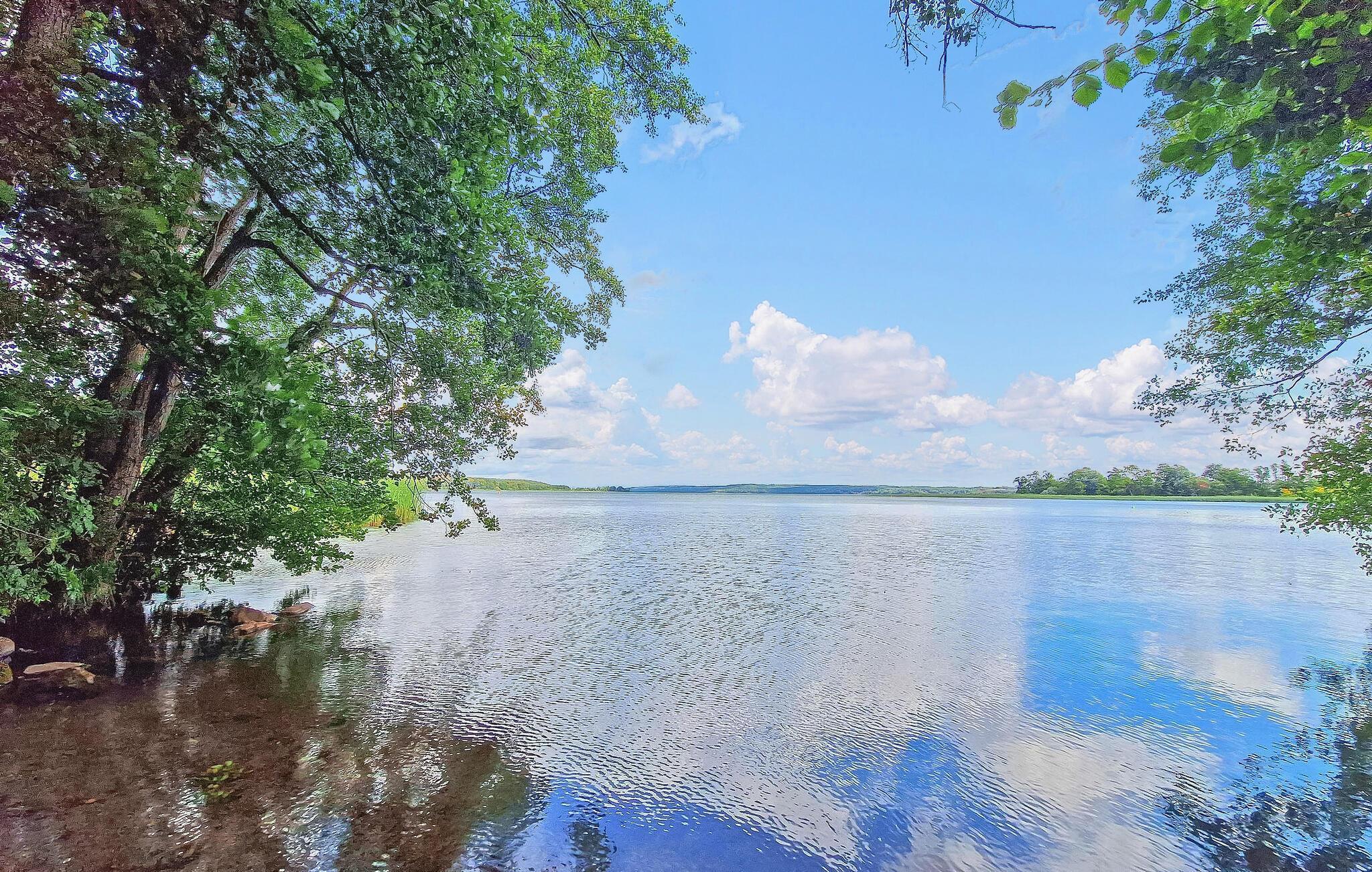 Kun få minutters gang fra et skønt naturligt badeområde ved Tollense-søen, roligt beliggende indenfor et sommerhusområde, let forhøjet på en bakke med en smuk udsigt, er der et separat sommerhus for op til 3 personer på den ca. 270 kvadrat. meter fritidsejendom. Den populære cykelsti omkring Tollensesee nås efter cirka 600 m. Der er en lille strand-snackbar ca. 500 m væk ved naturhavnen, og yderligere forsyningsmuligheder i Penzlin, ca. 6 km væk. Det ikke-ryger hus, som er cirka 32 kvadratmeter stort og har meget træ indvendigt, har en stor stue (sovesofa - ekstra opredning til 1 person, stole, spisebord, fladskærms-tv, pejs med høj effekt - 6 KW), et separat køkkenområde (komfur, køleskab med fryser, brødrister, kedel, kaffemaskine), et soveværelse (2 enkeltsenge, indbyggede skabe) og et badeværelse (bruser, toilet, hårtørrer, en olie). radiator tilgængelig, hvis det kræves). Der er desuden møbleret terrasse foran entréen, grill, liggestole og på den tilstødende ca 350 kvadratmeter grund, ekstra siddepladser, pejs samt parkeringsplads/carport og cykelrum. Den samlede pris inkluderer slutrengøring, el, vandudgifter samt sengelinned og håndklæder. Brænde til bål er tilgængeligt, andet er tilgængeligt mod betaling. Kæledyr er ikke tilladt i denne ejendom. Den lille bydel Wustrow i den lille by Penzlin ligger midt i Mecklenburg Lake District, i Tollense-Becken landskabsbeskyttelsesområde direkte ved Tollense søen, den sjette største og en af de reneste søer i Mecklenburg-Vorpommern. I umiddelbar nærhed ligger naturreservatet Nonnenhof, der siden 1988 har været anerkendt som et europæisk fuglereservat. Ud over tilstrækkelige bade- og vandsportsmuligheder inviterer en 35 km lang rundsti rundt om hele Tollensesee, som fører over maleriske bakker, gennem enge og skove, til vandre- og cykelture. I selve byen byder en tumulus på en enestående panoramaudsigt over Tollense-søen. Også interessant er naturmonumentet Unequal Sisters (en eg og en bøg i symbiose), en natursti ved Wustrow-bugten og en lille, naturlig bådhavn. Butikker, snackbarer og en restaurant findes i Penzlin, cirka 6 km væk, hvis mest berømte vartegn er et middelalderligt slotkompleks. Dette omfatter udover et museum om emnet tortur og heksejagt også en urtehave, et sort køkken, hvor der blandt andet tilbydes børns madlavningskurser og en hekselegeplads for de mindste. Desuden finder mange middelalderbegivenheder, der er kendt langt ud over byens grænser, sted på slottet. Cirka 16 km væk ligger distriktsbyen Mecklenburg Lake District, fireportsbyen Neubrandenburg, som udover talrige andre indkøbsmuligheder, forskellige restauranter, caféer og pubber byder på mange kulturelle institutioner og arrangementer. Særlige attraktioner her er St. Mary's Church, kendt uden for Mecklenburgs grænser som en koncertkirke, med sit nye orgel, hjemsted for Neubrandenburg Philharmonic, teatret og Neubrandenburgs kunstsamling.