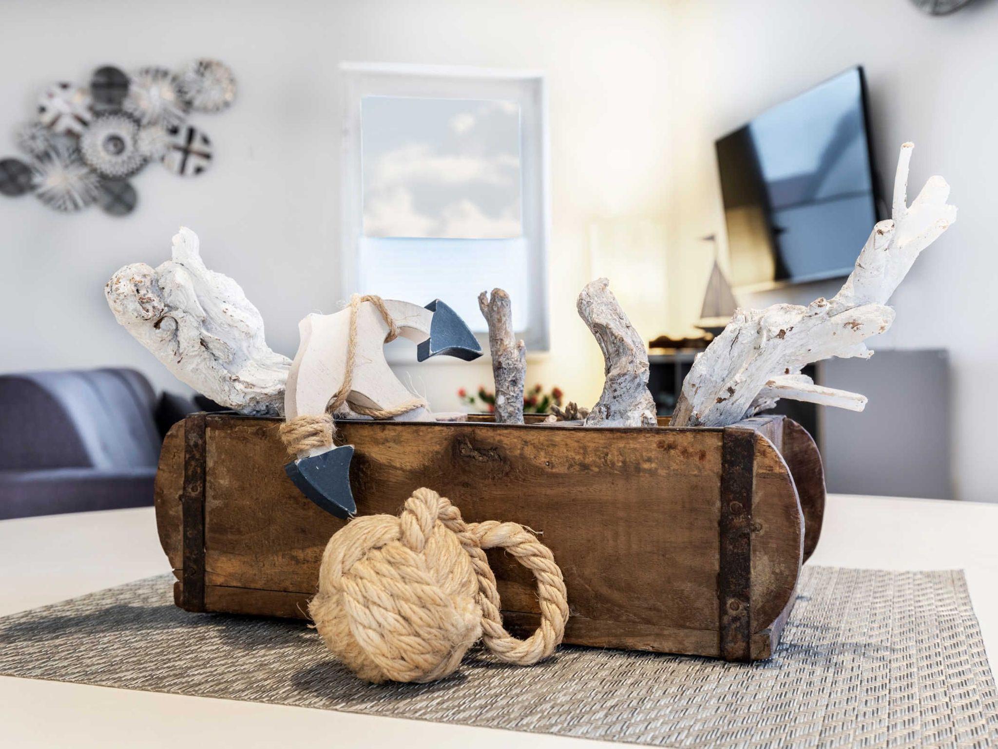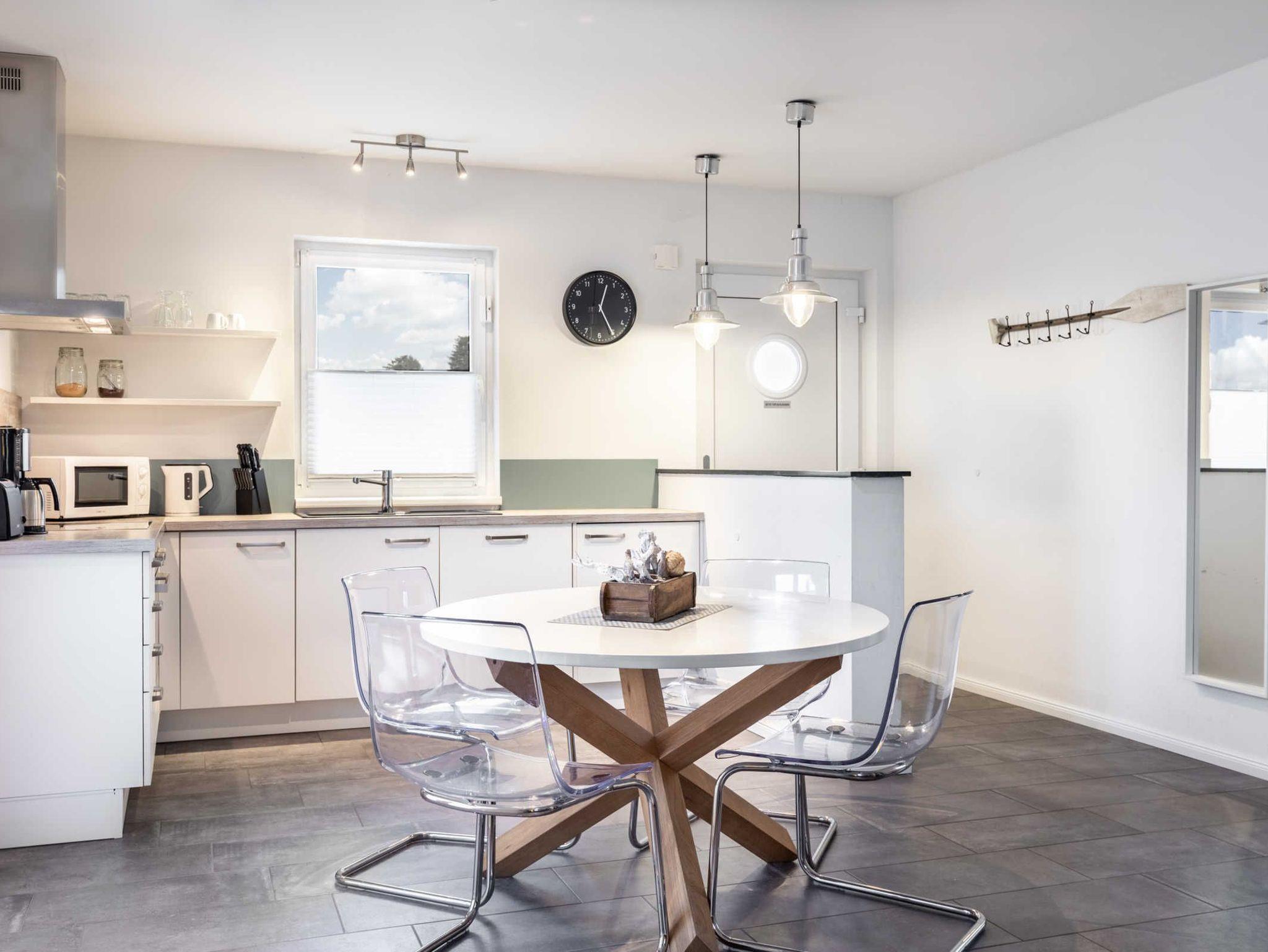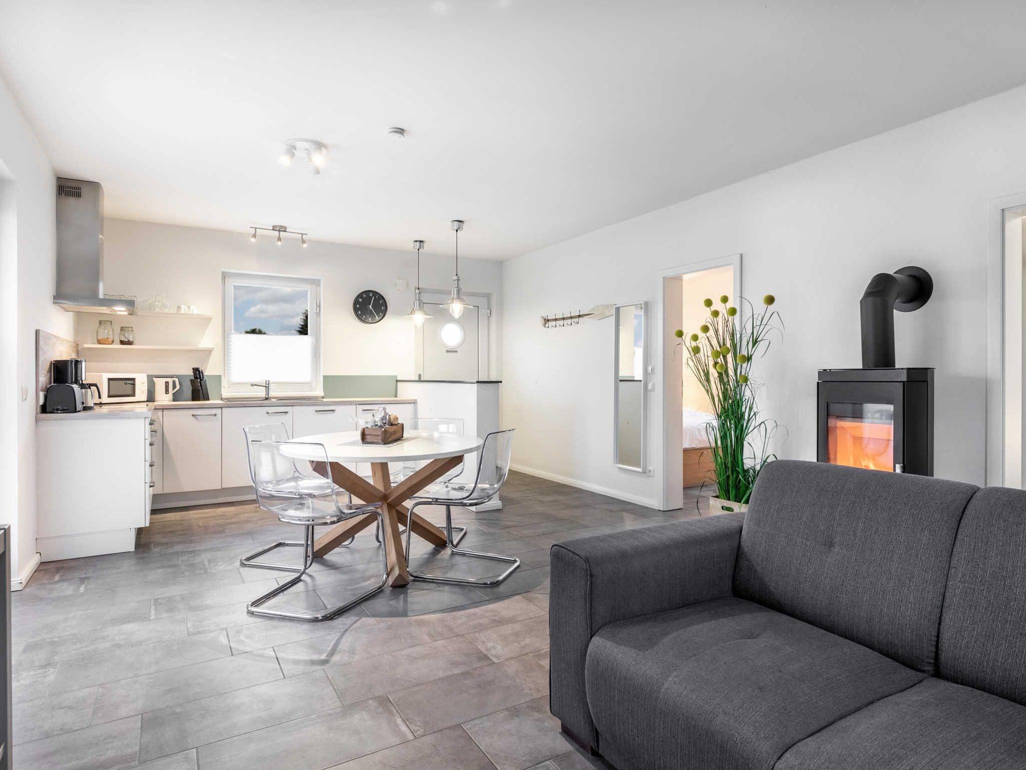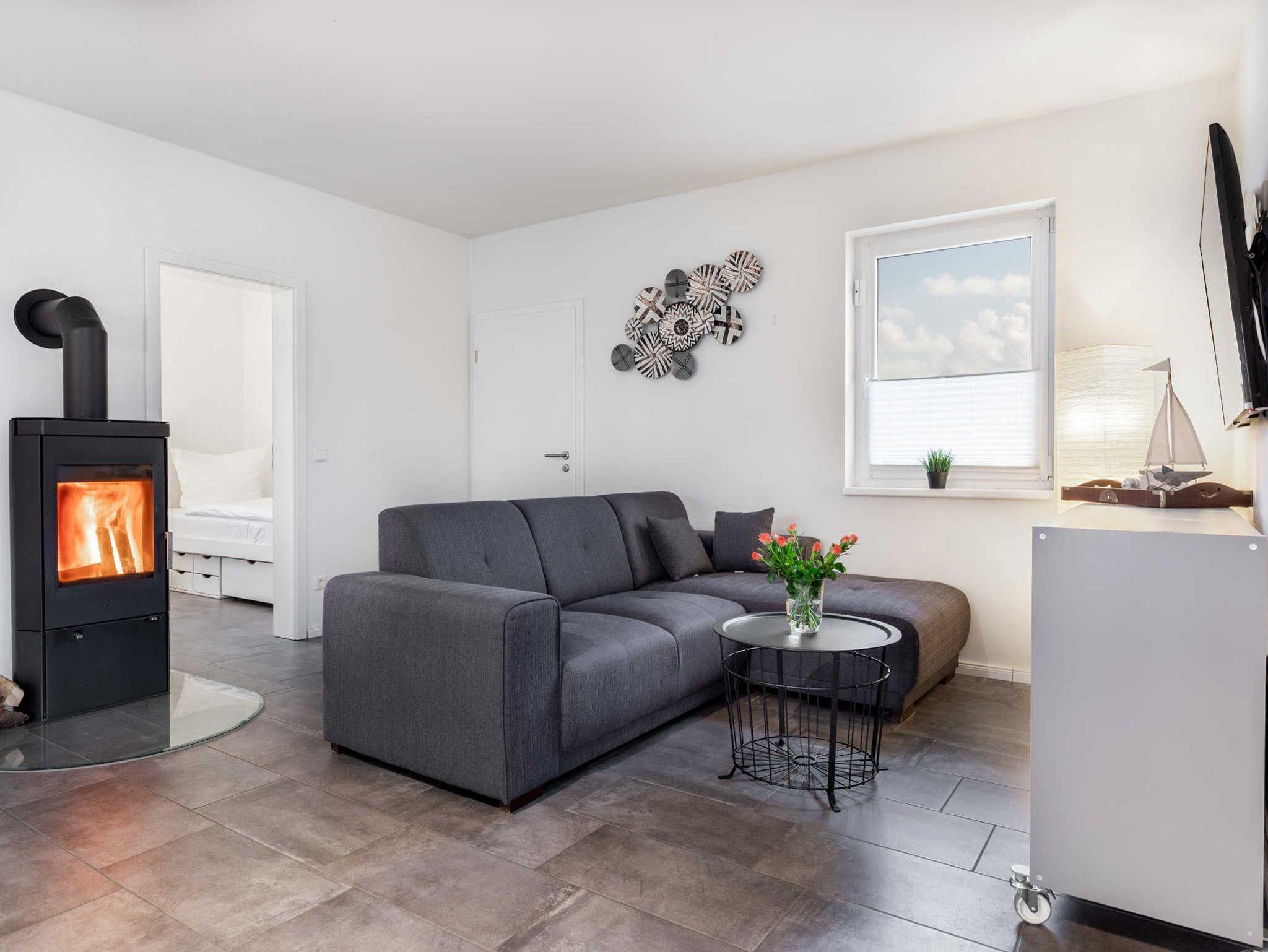 Die Lage und Ausstattung sind perfekt für Familien, Wassersportler, Aktivurlauber und Naturfreunde. Das Strand Ferienhaus verfügt über zwei separate Schlafzimmer. Eines mit Doppelbett und Kleiderregal und eines mit 2 Einzelbetten und Kleiderschrank. Der helle und weitläufigen Wohn- und Essbereich mit Kamin, Sofaecke, TV und Esstisch heißt die Gäste beim Betreten des Hauses willkommen. Die Küche ist mit Geschirrspüler, Herd, Backofen, Mikrowelle, Kaffeemaschine, Wasserkocher und Toaster komplett ausgestattet und bietet viel Platz für gemeinsames Kochen und Schlemmen im Urlaub. Vom Wohnzimmer aus gelangt man direkt auf die möblierte und große Sonnenterrasse mit Grill. Die Terrasse verfügt über einen Wind- und Sichtschutz. Das Bad ist mit Dusche und WC ausgestattet und wirkt mit der geschmackvollen Einrichtung sehr wohlig. Das Ferienhaus ist ebenerdig und eingeschränkt barrierefrei. Es gibt nur je eine kleine Schwelle zur Terrasse.