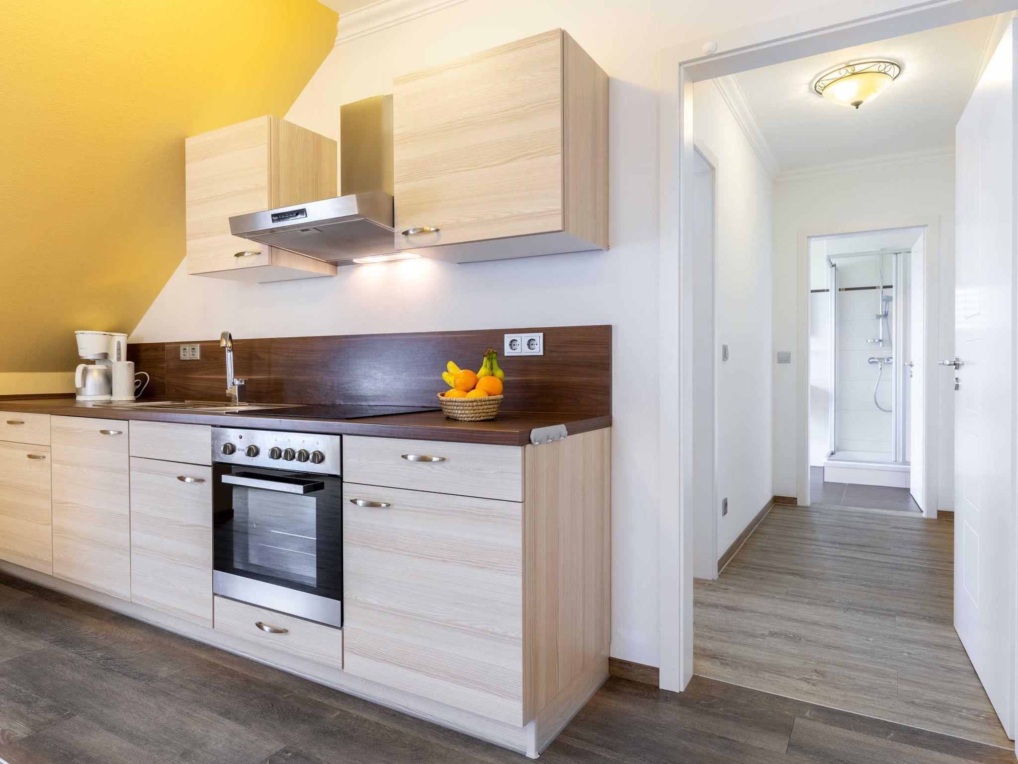 Die helle und gemütliche Ferienwohnung Hanna befindet sich im Obergeschoss des Ostseeferienhauses Drachenflieger. Die Ferienwohnung verfügt über ein separtes Schlafzimmer mit Doppelbett und Kleiderschrank, einen Wohn- Essbereich mit umfangreich ausgestatteter Küchenzeile (Kühlschrank mit Gefrierfach, 4- Platten- Herd, Backofen, Kaffeemaschine, Wasserkocher, Toaster) sowie einen Essbereich und Sitzecke mit ausziehbarer bequemer Schlafcouch. Vom Wohnbereich gelangen Sie auf den Balkon/Loggia. Bad mit Dusche und WC.
