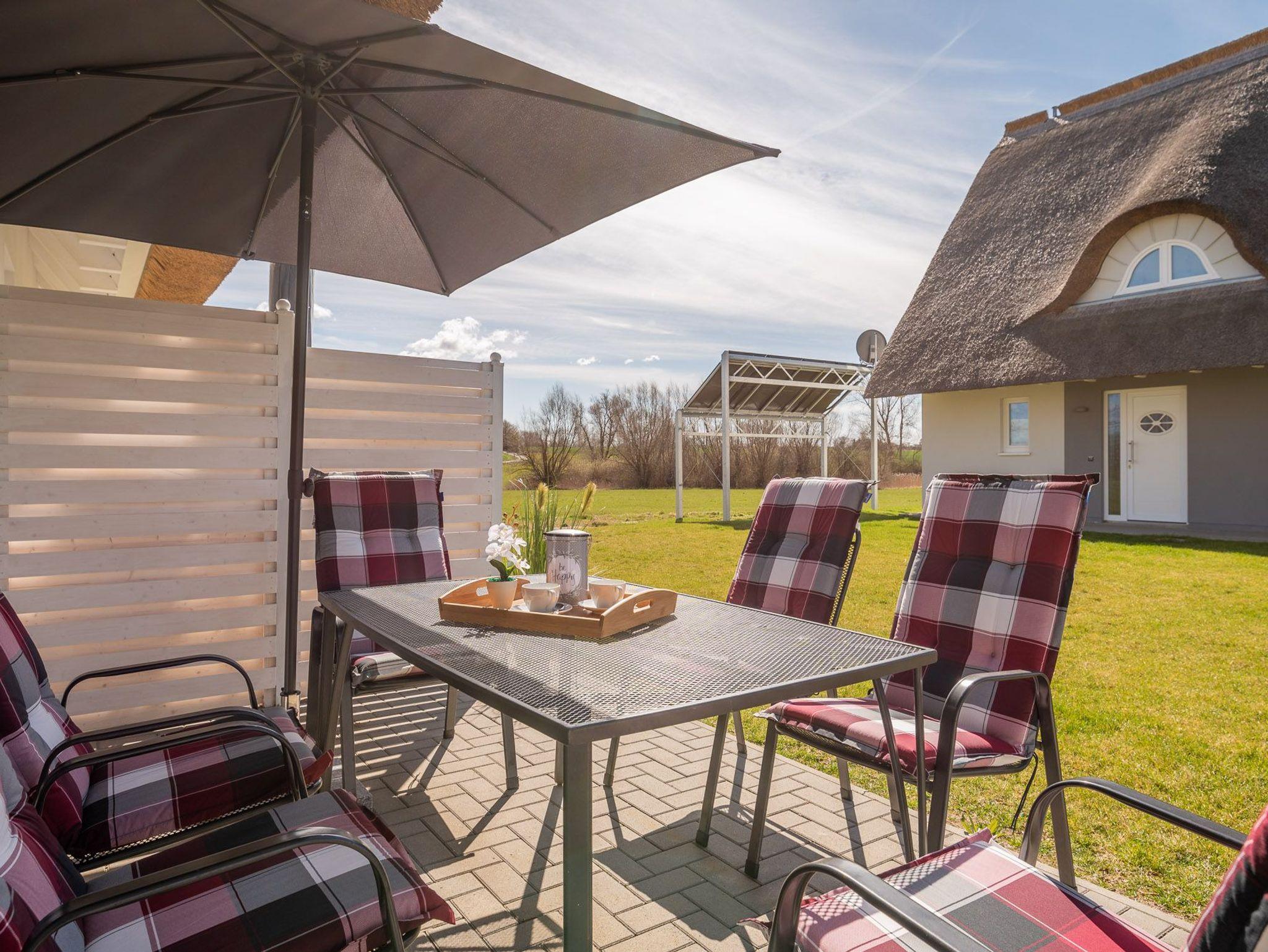 Die reetgedeckte Doppelhaushälfte mit einer Größe von 83m², liegt ruhig am Ortsende von Pepelow am Salzhaff und lädt zum Entspannen und Wohlfühlen ein.