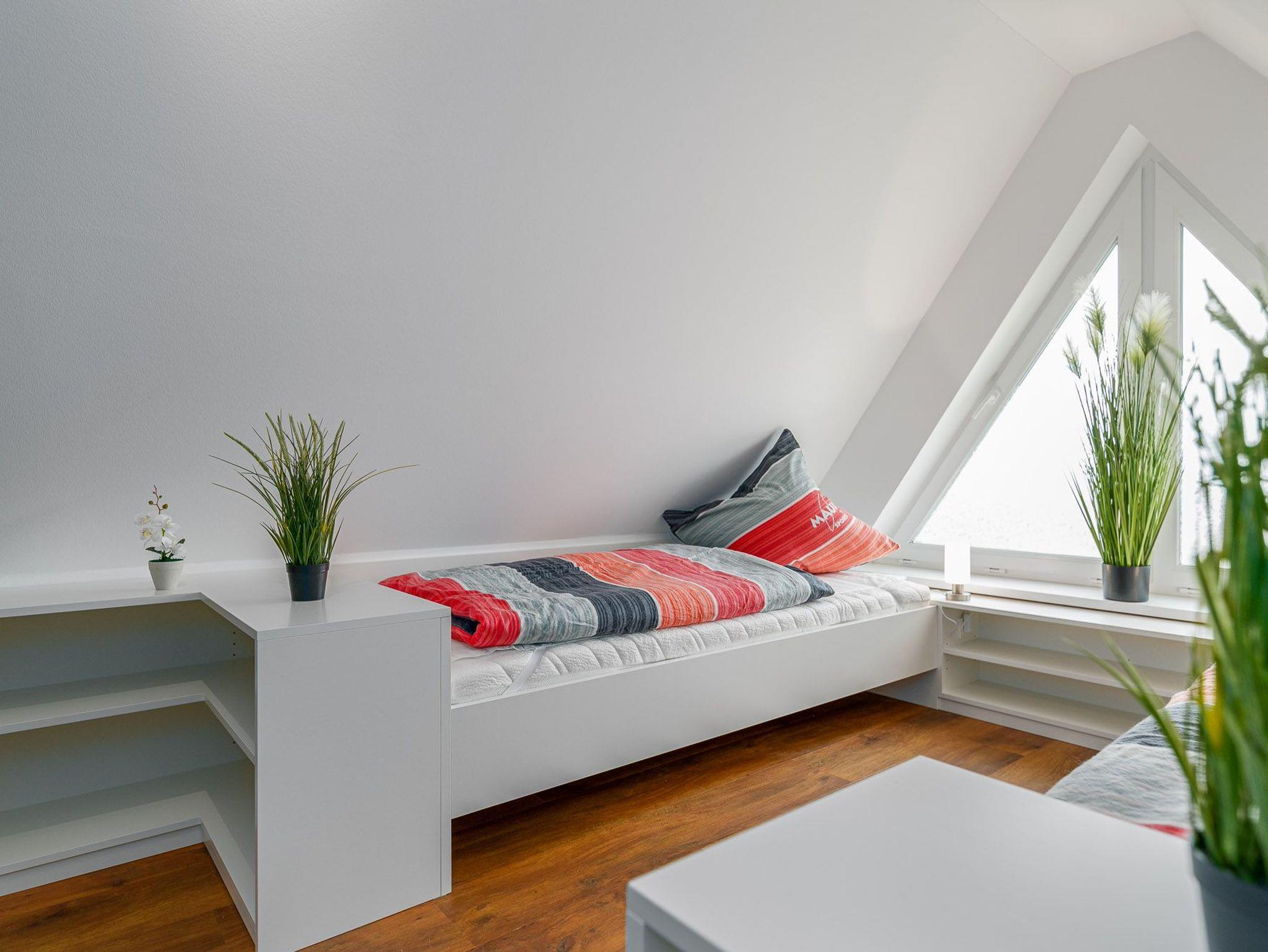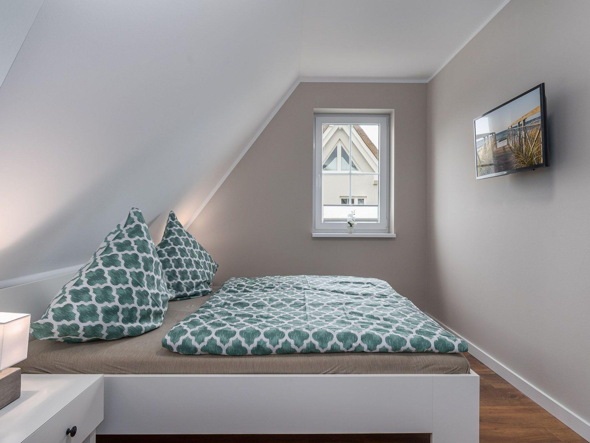 2 Schlafzimmer mit Einbauschränken und Doppelbetten (je 180x200) und 1 Studio im offenen Spitzboden mit 2 Einzelbetten (90x200).Alle ausgestattet mit Flachbildschirmen und Sat/TV