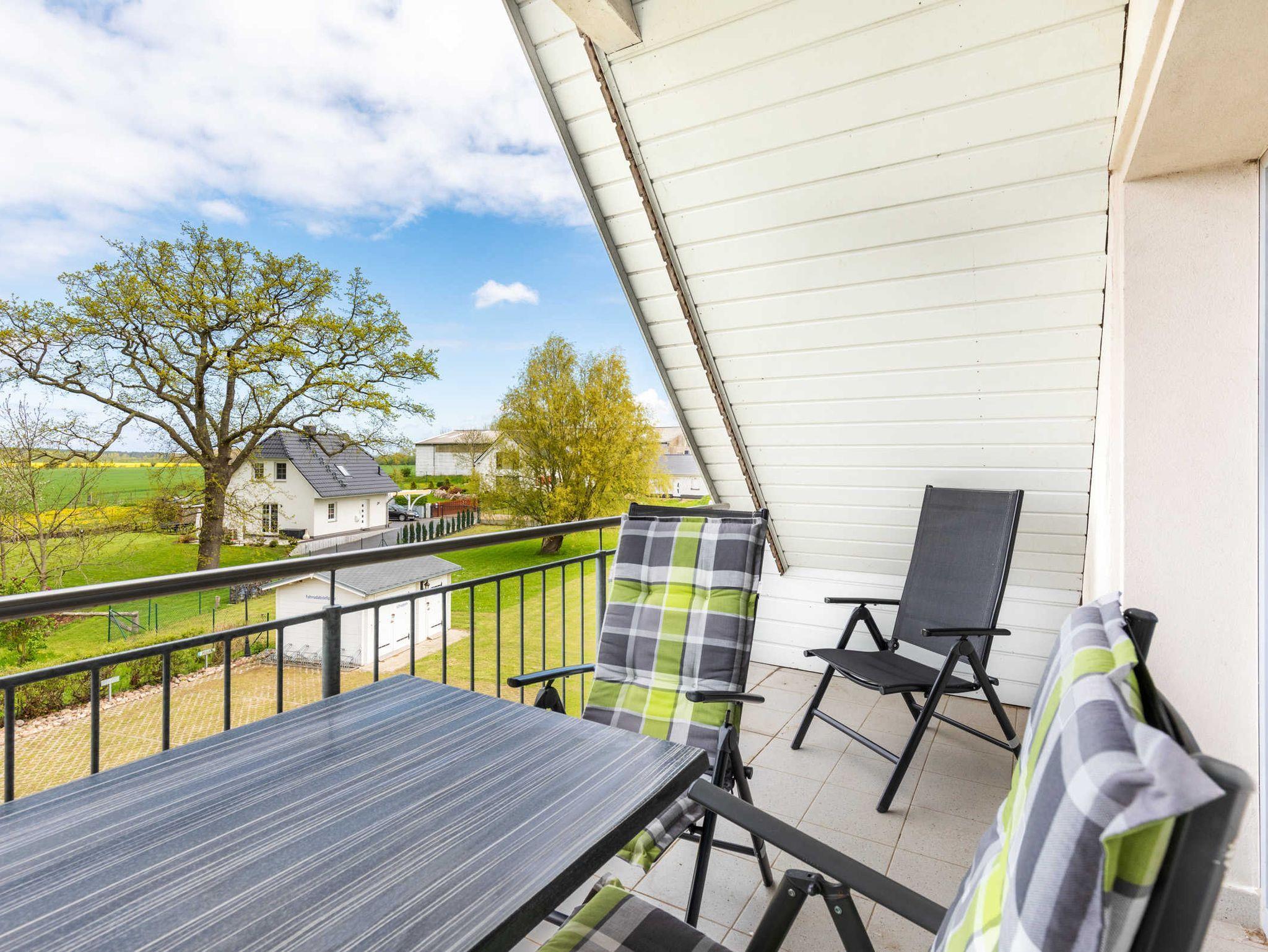 Ferienwohnung Kerstin: Die Ferienwohnung verfügt über zwei separte Schlafzimmer mit Doppelbett und Kleiderschrank, ein Schlafzimmer mit zusätzlichem Einzelbett. Wohn- Essbereich mit umfangreich ausgestatteter Küchenzeile (Kühlschrank mit Gefrierfach, 4- Platten- Herd, Backofen, Kaffeemaschine, Wasserkocher, Toaster) sowie Essbereich und Sitzecke mit ausziehbarer bequemer Schlafcouch.Vom Wohnbereich gelangen Sie auf den großen Holzbalkon mit herrlichem Blick über die weite Ostseelandschaft.Bad mit Dusche und WC.