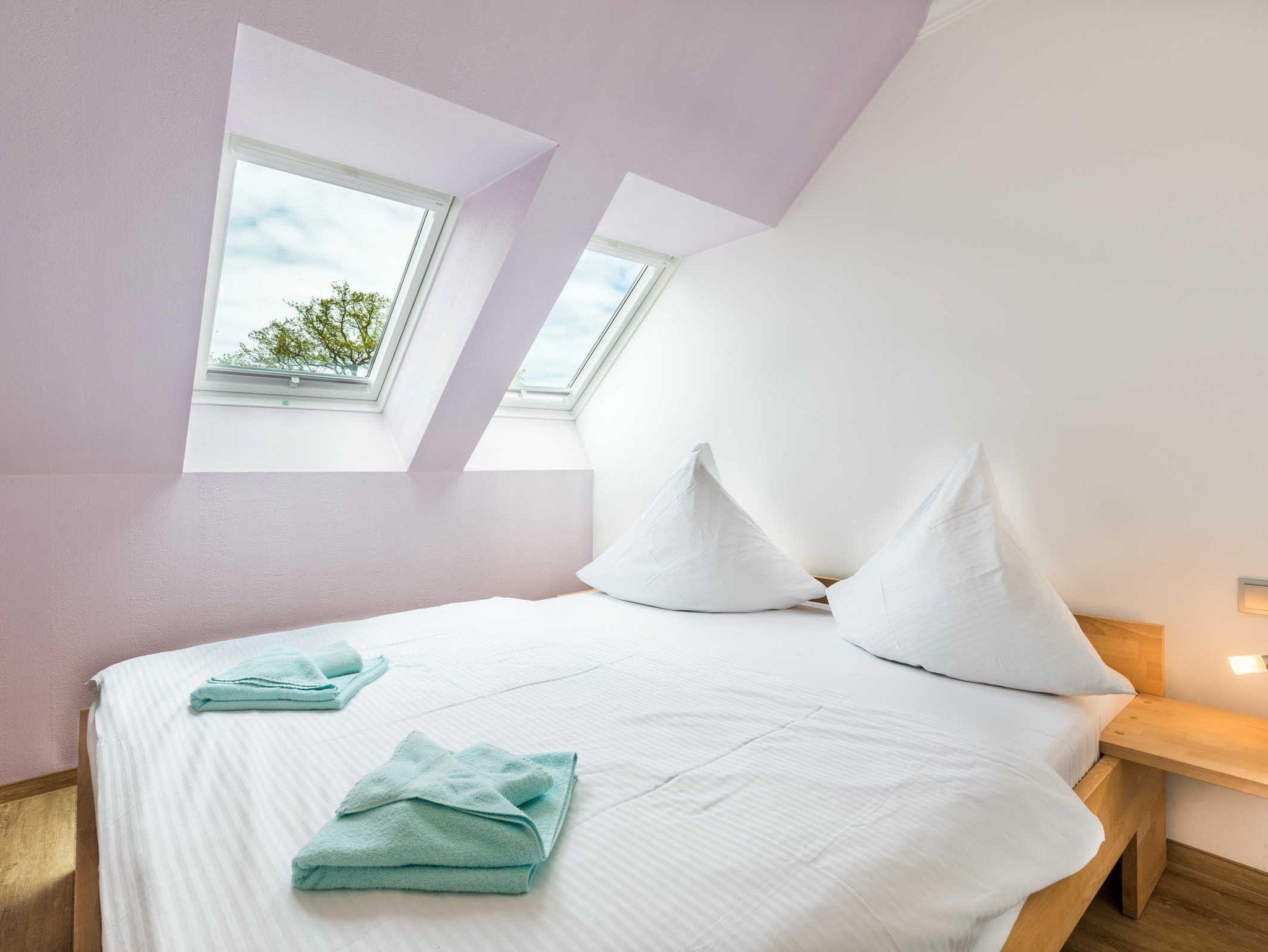 Die großzügigen, hellen und komfortablen Ferienwohnungen sind für 2 - 8 Personen eingerichtet und können ebenso kombiniert gebucht werden. Die Ferienwohnung Barbara ist zudem komplett barrierefrei und rollstuhlgerecht ausgestattet. Das Haus bietet für ebenso Platz für Gruppen. So kann bei Verfügbarkeit das gesamte Haus mit bis zu 30 Personen gebucht werden oder die einzelnen Etagen mit je bis zu 15 Personen.