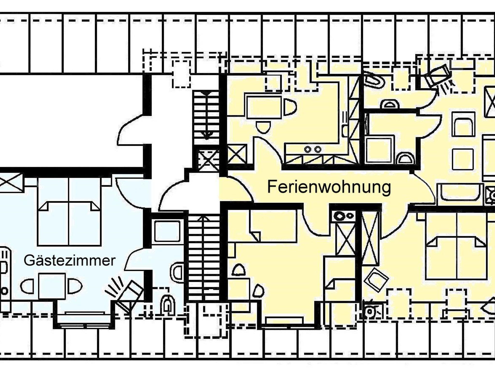 Die helle und freundliche Nichtraucher-Ferienwohnung mit 54 m² in der 1. Etage (DG) bietet Platz für 4 Personen.