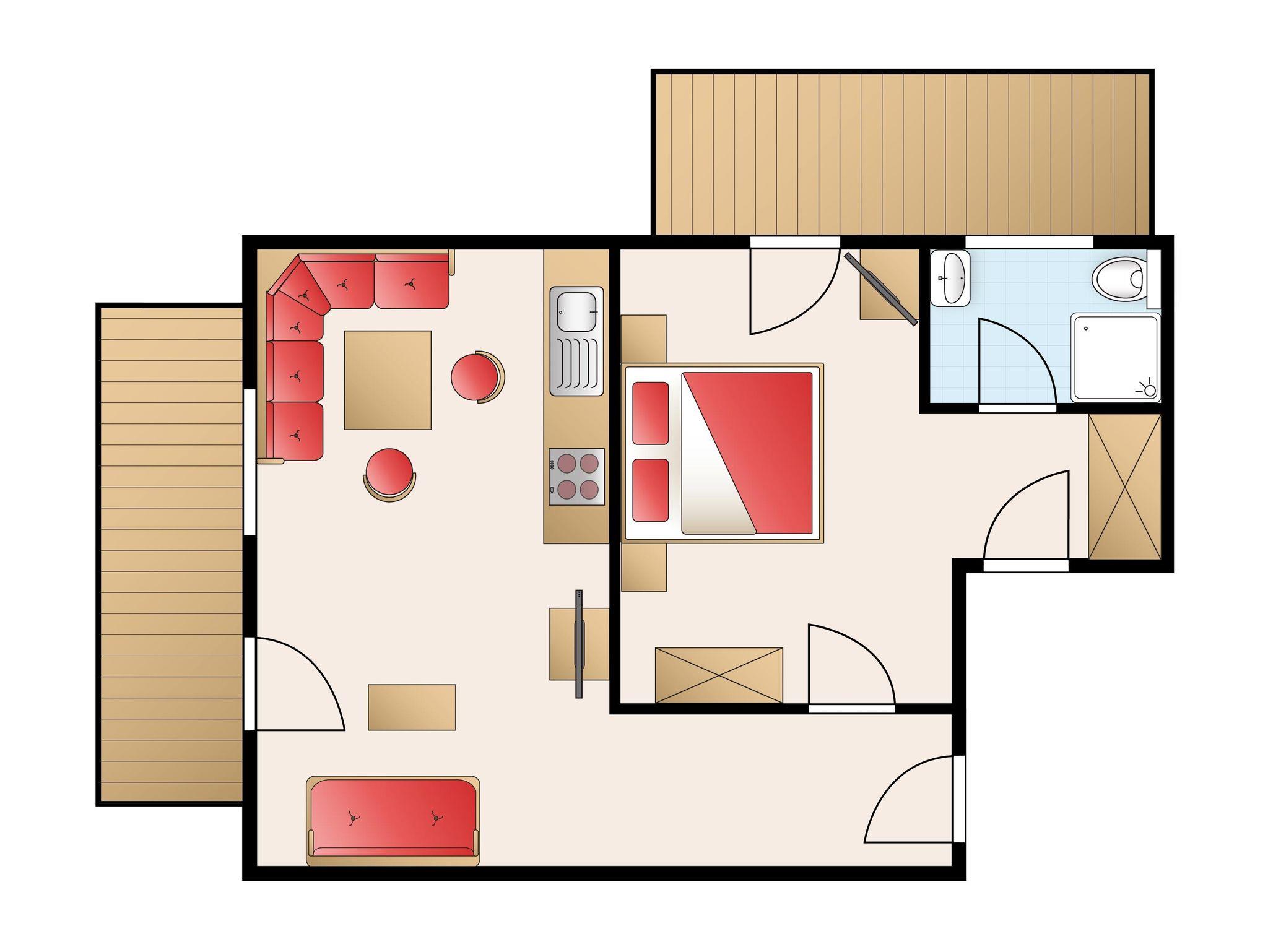 1 Wohnraum mit Balkon, Sitzecke, Sofa, SAT-TV, DVD, WLAN, Radio/CD;