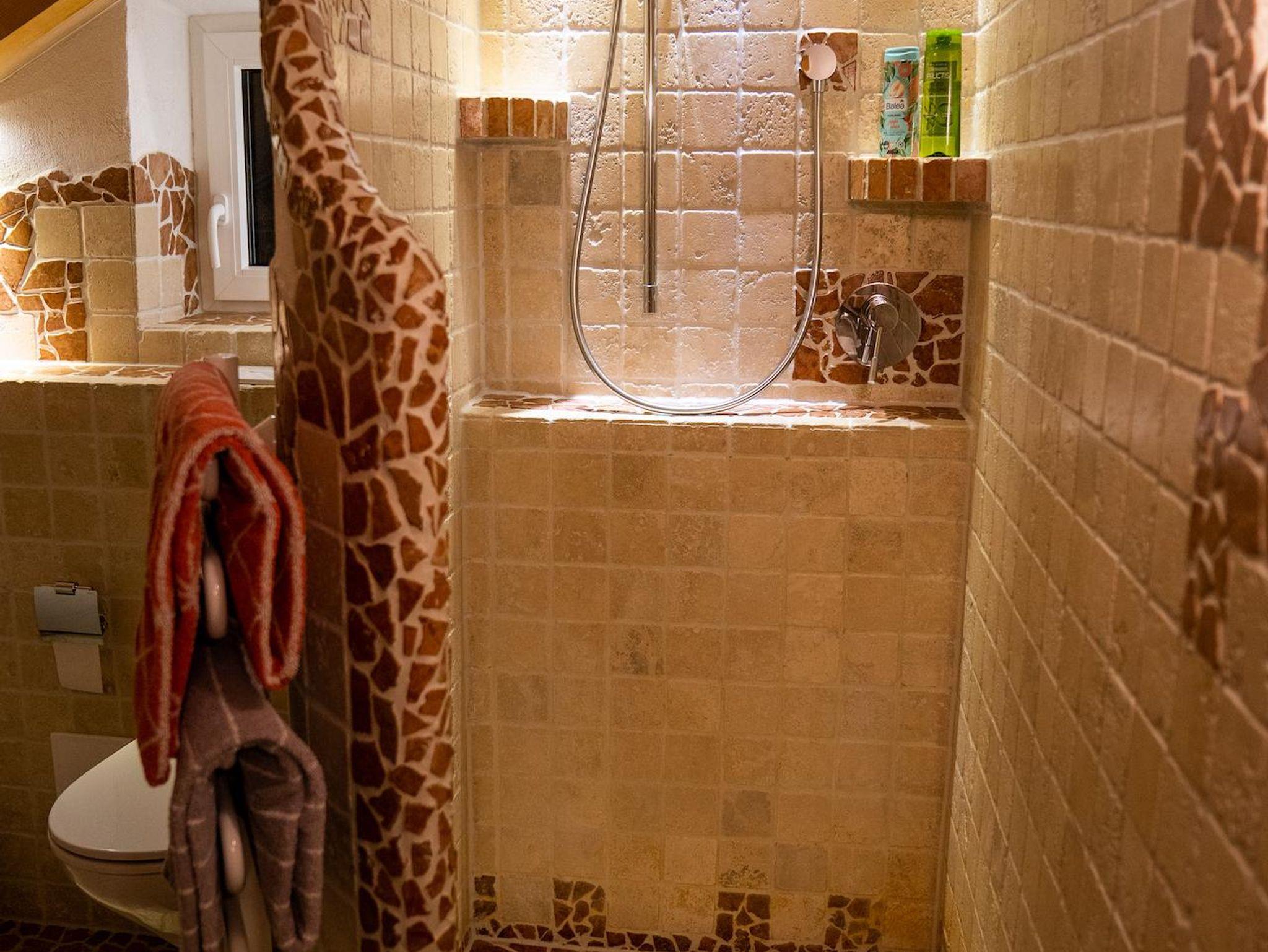 Sie besteht aus einem kombinierten Wohn- und Schlafraum sowie einer modernen Holzküche mit Tisch und zwei Stühlen und einem Marmor-Bad im mediteranen Stil mit einer großen, ebenerdigen, offenen Dusche und WC inkl. Fußbodenheizung.
