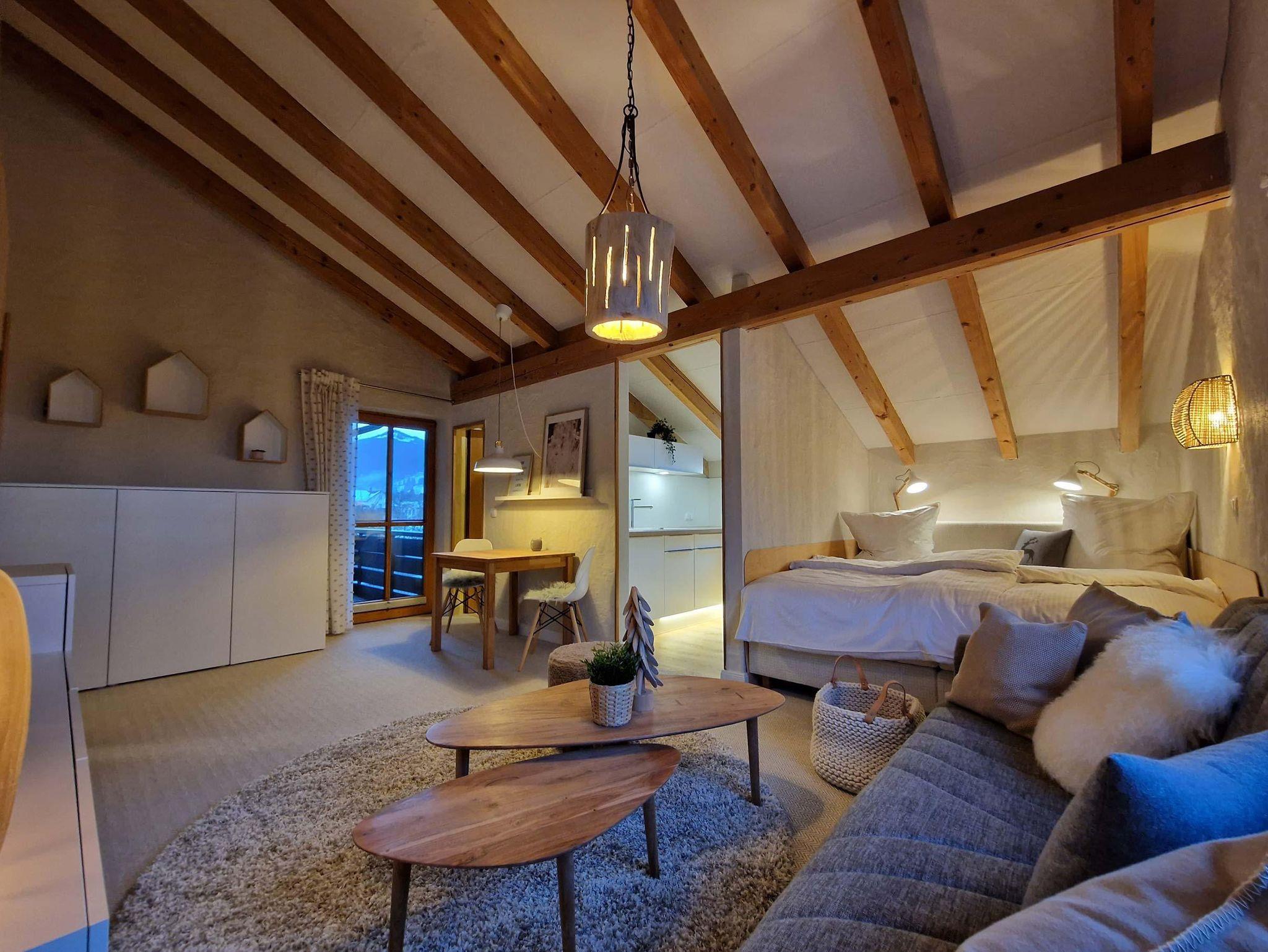 Maximaler Wohlfühlkomfort auf 33 m²: mit Schlafbereich, Wohnbereich, Essbereich, komplett eingerichtete Küche, Badezimmer mit Dusche & WC können Sie im 1. Stock unseres Hauses Ihren Urlaub im schönen Allgäu zu jeder Jahreszeit in vollen Zügen genießen. In unserer liebevoll & edlen eingerichteten Räumlichkeit steht Ihnen kostenloses WLAN zur Verfügung. Von der möbilierten Terrasse haben Sie freien Blick auf die Allgäuer Berglandschaft. Vor dem Haus befinden sich ein eigener kostenfreier Parkplatz und ein absperrbarer Schuppen für Fahrräder oder Ski. Mit eigener Waschmaschine und eigenem Trockner im Trockenraum. Ideal für 2 bis 3 Personen (Kinder erst ab 8 Jahren). Zwei einfache Fahrräder stehen zur kostenfreien Nutzung zur Verfügung.