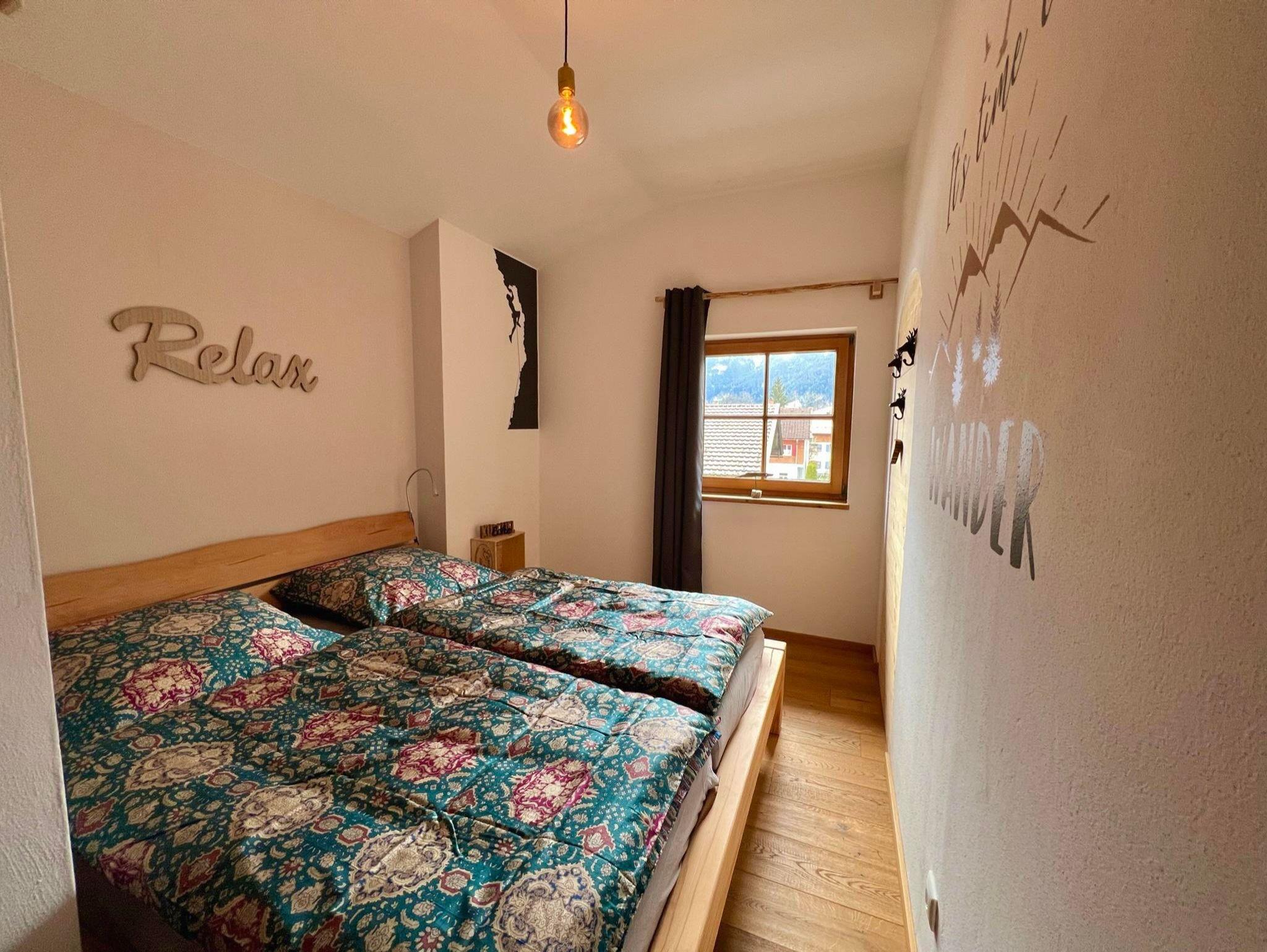Auf knapp 100 Quadratmeter und zwei Balkonen können Sie die Abendsonne mit einem kühlen Bier oder einem Glas Wein genießen und den Tag mit einem grandiosen Blick auf den Breitenberg, Kienberg oder die Burgruine Falkenstein ausklingen lassen. Die hochwertige eingerichtete Wohnung im Alpenflair bietet drei Zimmer - zwei Doppelbetten und einem Stockbett, Wohnzimmer mit Fernseher, Küche, Bad mit ebenerdiger Dusche und einem WC sowie einem separaten WC und somit Platz für sechs Personen.