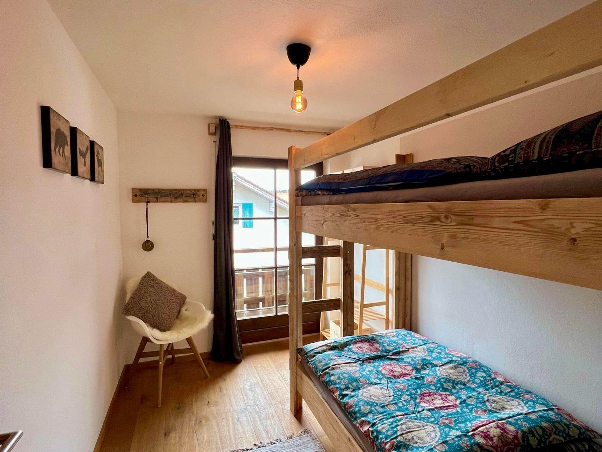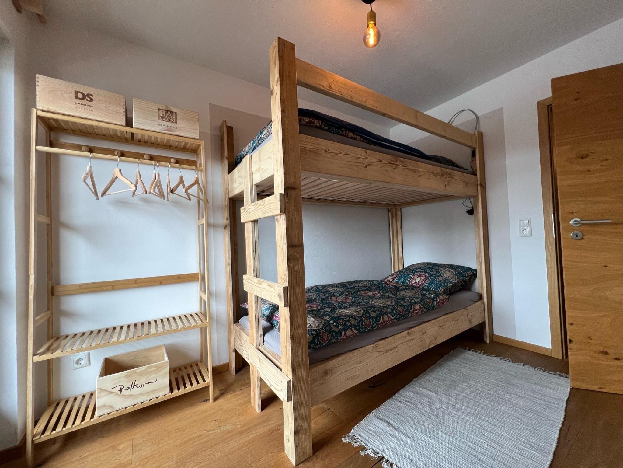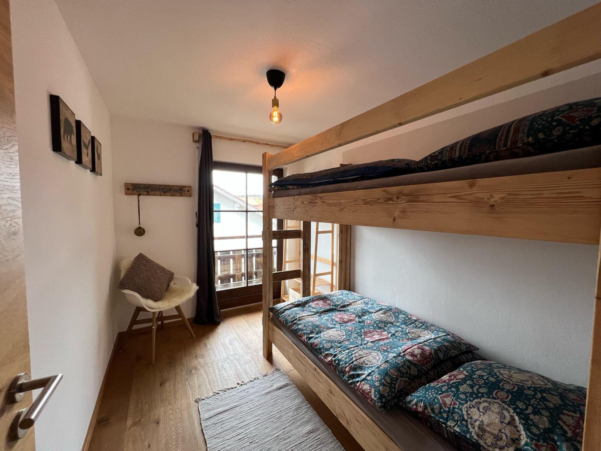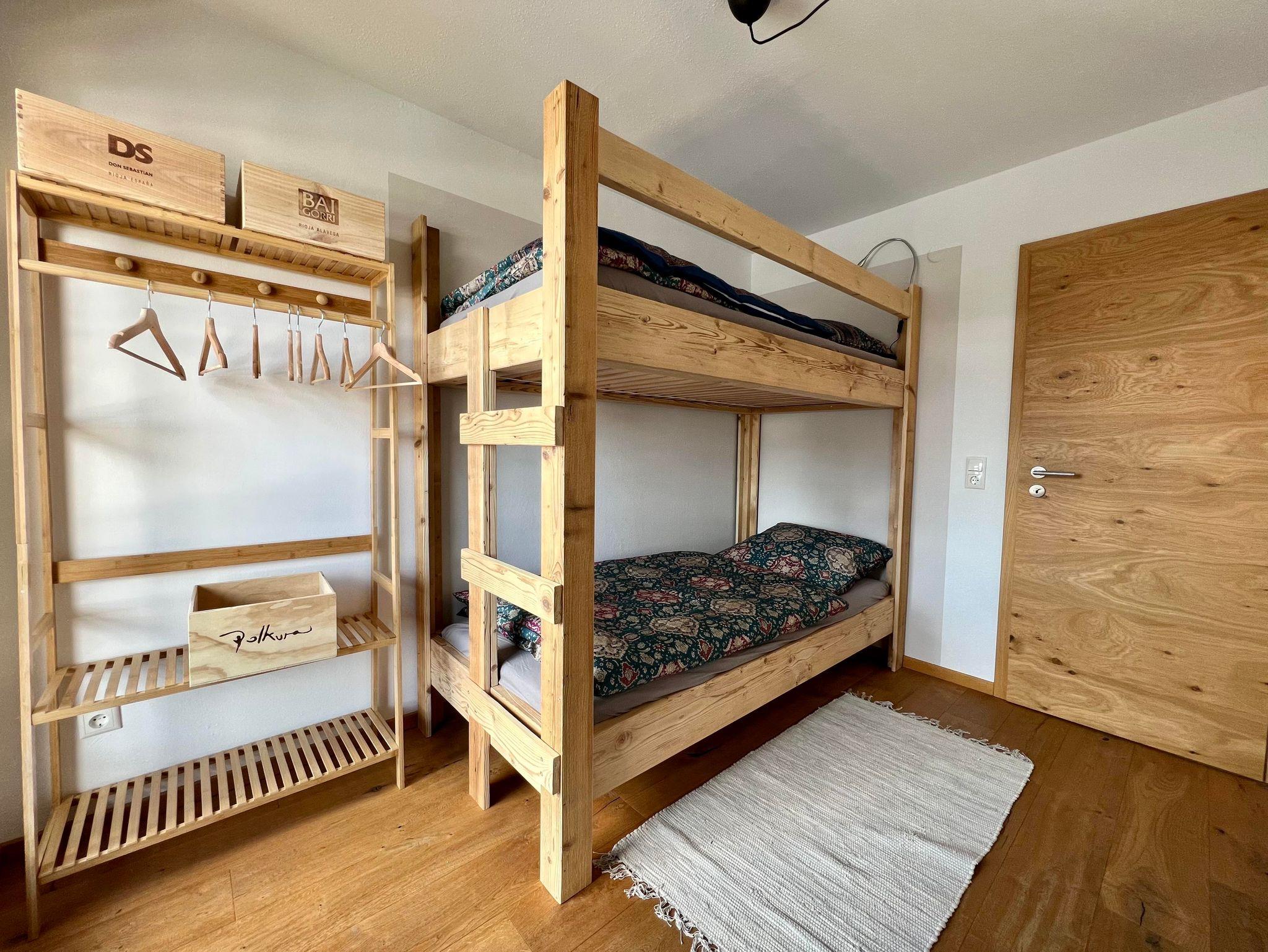 Falkensteinblick - handgefertigtes Stockbett, Süd-Ost Balkon, Vorhang, Rollladen