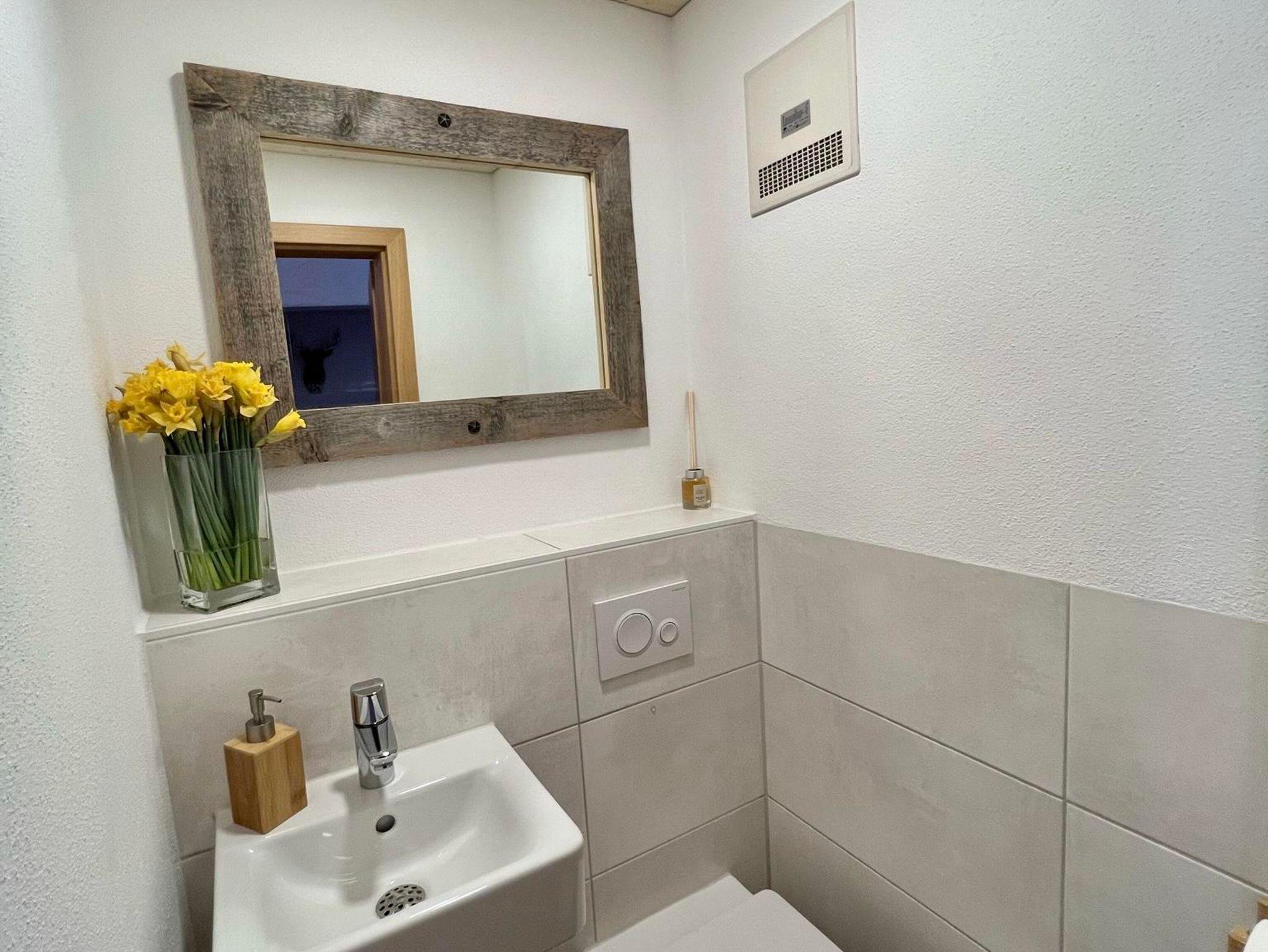 Gäste-WC: Waschbecken, Spiegel, Handtücher