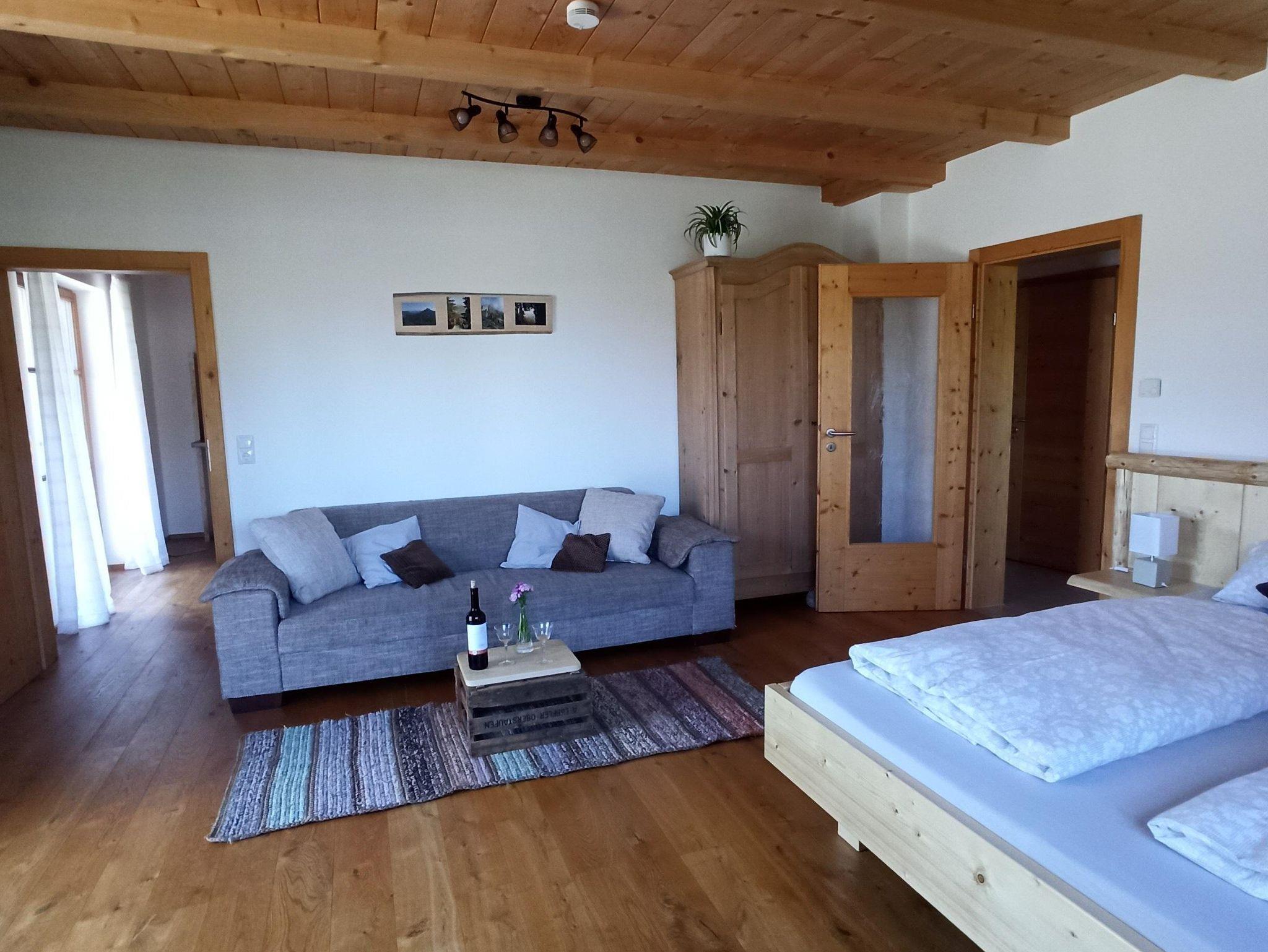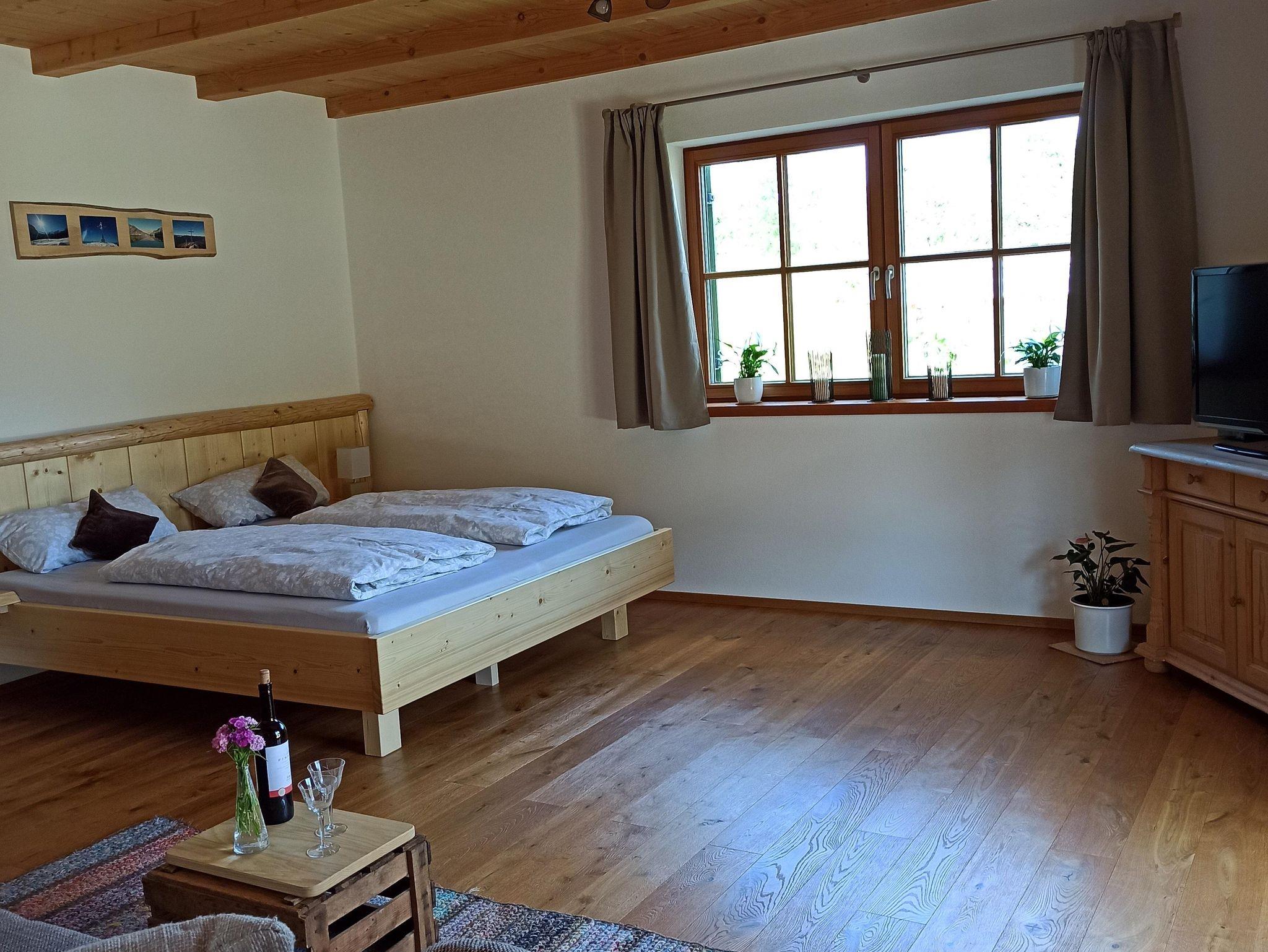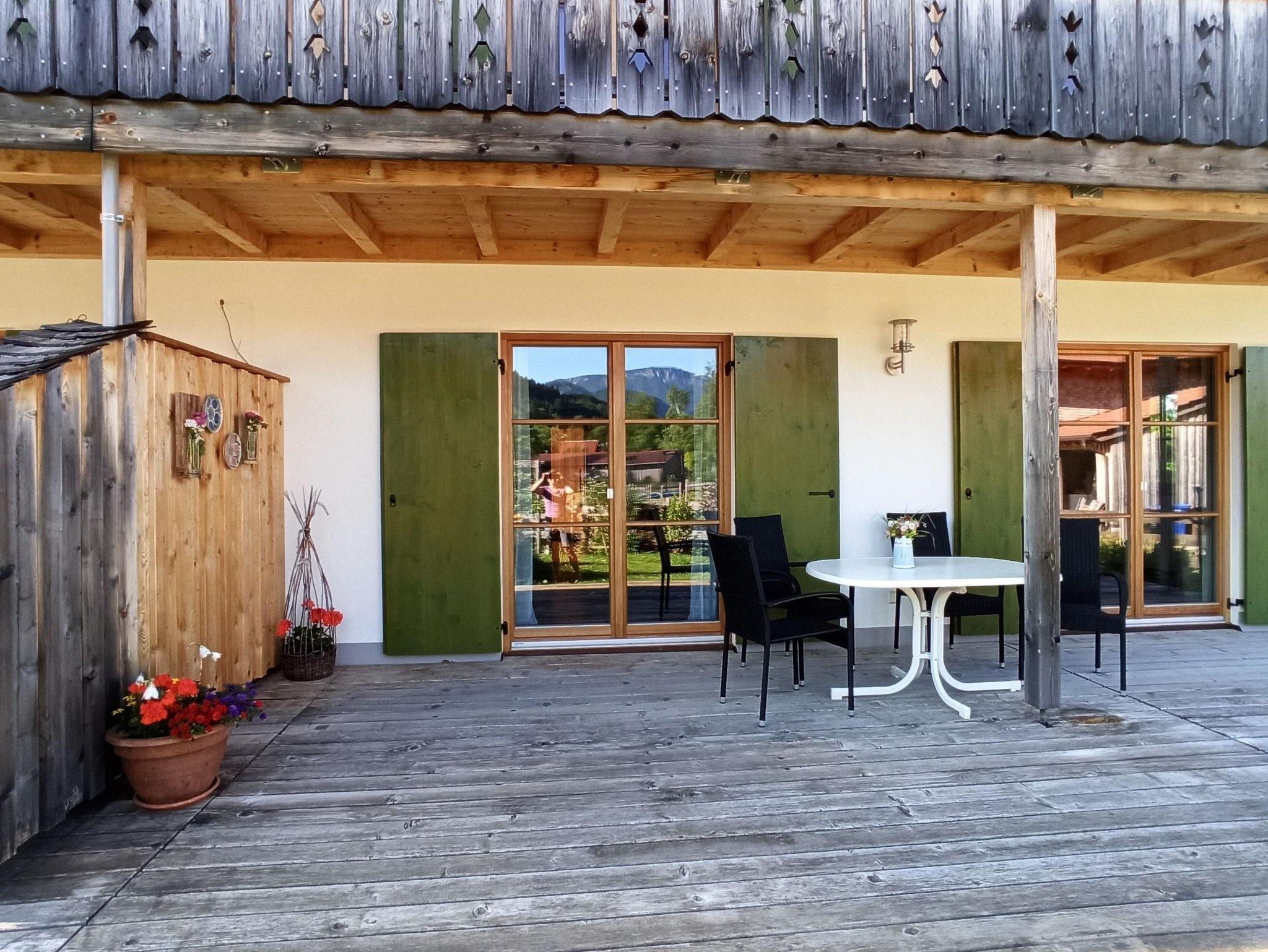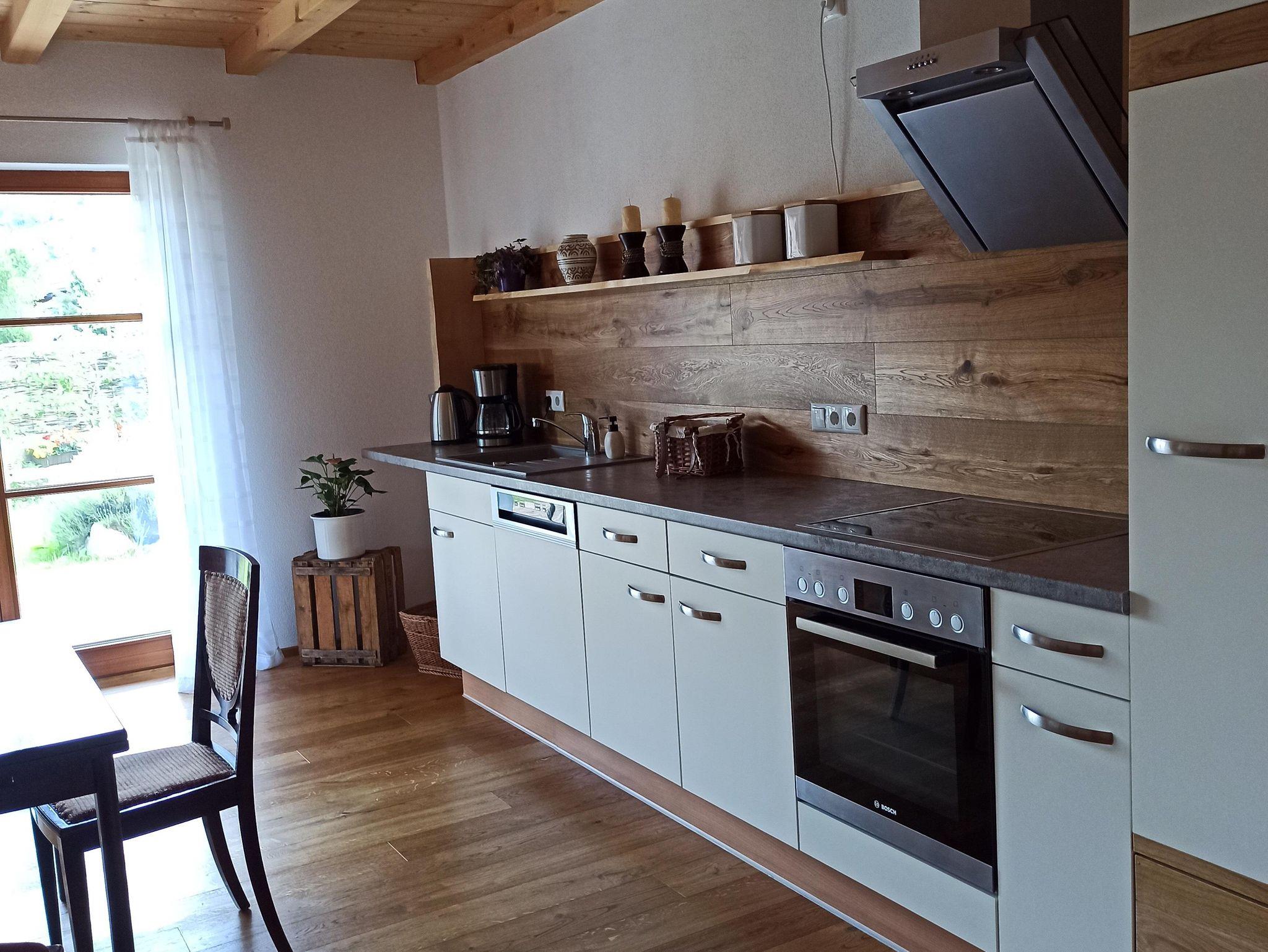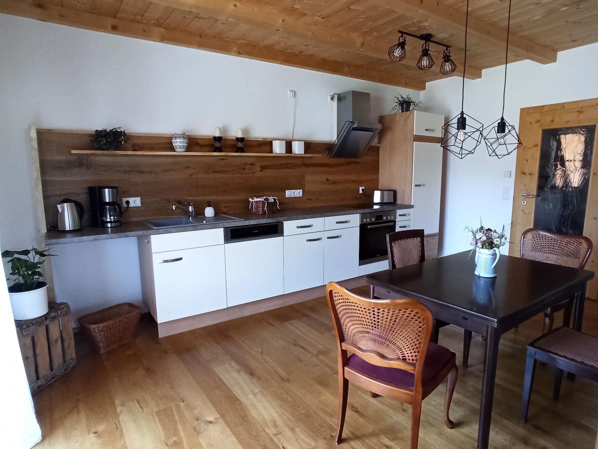 Geräumige Parterre Ferienwohnung in moderner Holzbauweise mit separatem Eingang und großer südseitiger Terrasse mit Bergblick. Die komplett ausgestattete Küche mit Essbereich, Geschirrspüler, gr. Kühlschrank inkl. Gefrierfach, Induktionskochfeld, Backofen, Wasserkocher, Toaster und Kaffeemaschine mit Filter lässt keine Wünsche offen. 2 seperate Schlafzimmer, mit Doppelbetten (180mX200m). Dusche/ WC mit Fenster. Kinderspielplatz im Garten vorhanden. Bitte beachten Sie, dass keine Haustiere erlaubt sind. Es wird nur an Nichtraucher vermietet. Das W-Lan und den Parkplatz vor dem Haus können Sie kostenfrei nutzen. Handtücher, Bettwäsche und Endreinigung ist inklusive.Kurzzeitaufenthaltszuschlag (5/6 Nächte)ist im Preis inbegiffen. Restzahlung und Kurtaxe vor Ort bar bezahlbar.