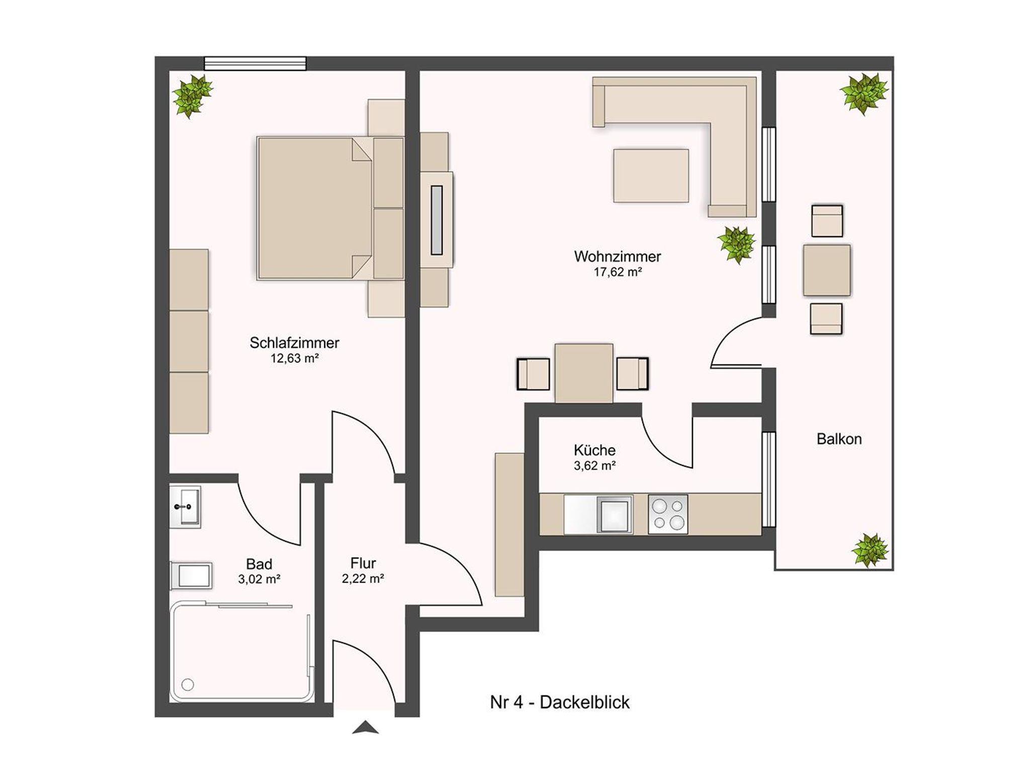 Ferienwohnung Dackelblick eine treuherzige Wahl Ankommen und sich sofort wie zuhause fühlen. In die Ferienwohnung Dackelblick kann man sich nur verlieben. Mit Ihrer durchdachten Aufteilung, der separaten Küche und dem sonnigen Westbalkon genießen Sie Ihren Urlaub ab der ersten Minute!