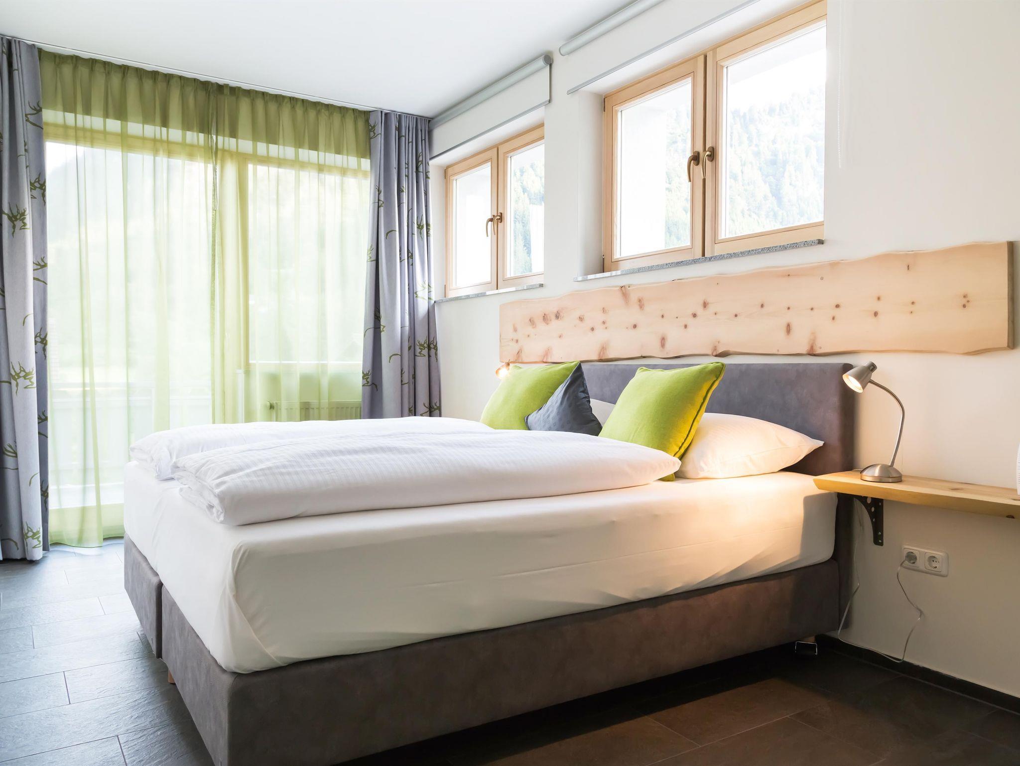 Moderne Wohnkultur mit traditionellem Alpencharme machen diese Ferienwohnung für zwei Personen (weitere Personen auf Anfrage) zur perfekten Heimat auf Zeit. Für Sie und Ihre Lieben legen wir höchsten Wert auf eine komfortable Ausstattung. Die wildgrünen Zirbenholzelemente, das hochwertige Boxspringbett, die moderne Küche und natürliche, alpenländische Dekoration sorgen für die einzigartige Wohlfühlathmosphäre die unsere Gäste so schätzen.