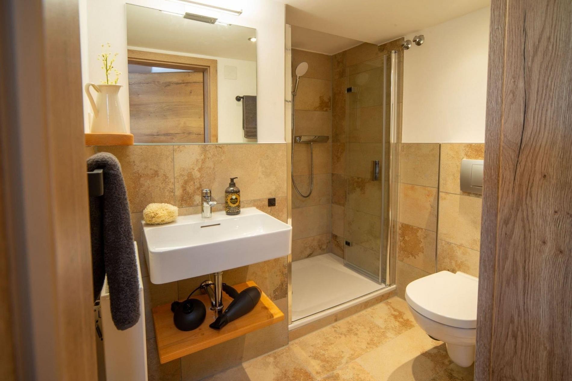 Im Vorderhaus ist eine Hundedusche für Vierbeiner installiert. In nächster Nähe befinden sich tolle Spazierwege und zum Haus gehört auch ein Hang mit großer Wiese.