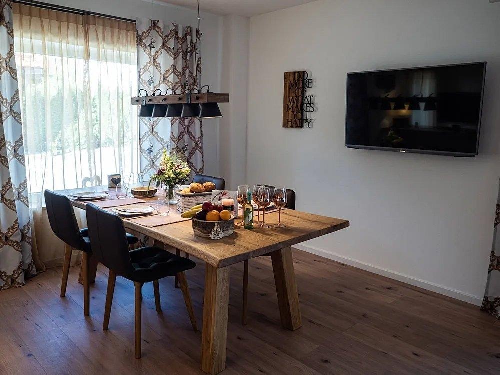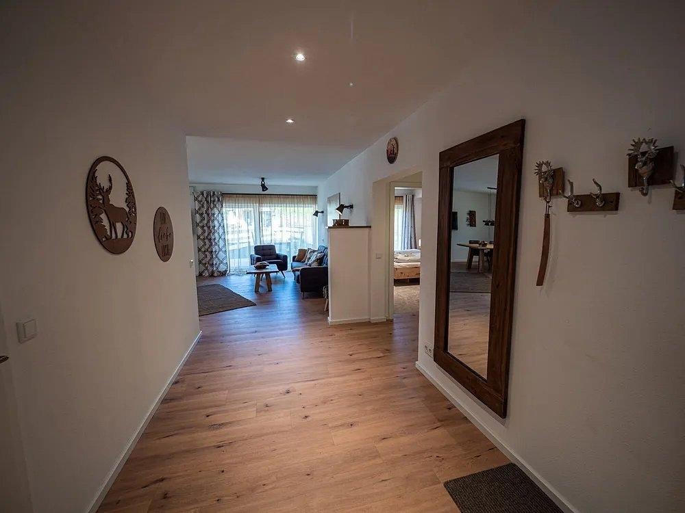Dreizimmerwohnung im Erdgeschoss mit zwei Schlafzimmern, ein Schlafzimmer mit Zirbenholzbetten, ein Schlafzimmer mit einem Boxspringbett bzw. zwei einzelne Boxspringbetten für Kinder oder Erwachsene. Die Königscard ist für alle Gäste im Preis enthalten. Mit ihr können Sie 200 attraktive, kostenlose Angebote in der Region nutzen.