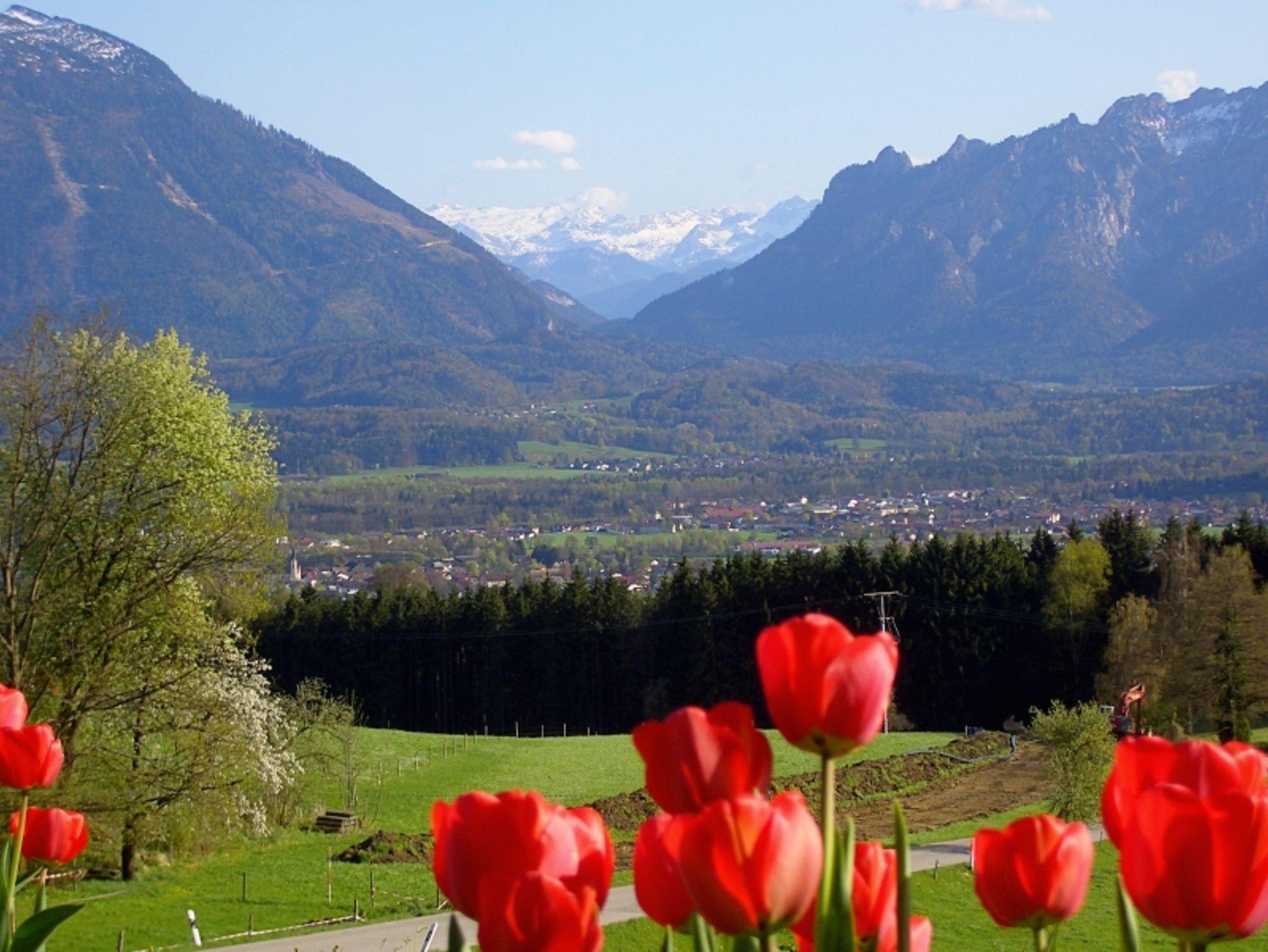 Unser ursprünglicher Bio-Bergbauernhof im Berchtesgadener Land gehört zur Gemeinde Piding. Der Bauernhof mit den stilvollen Ferienwohnungen liegt auf einer Anhöhe, mit Blick ins Tal und zu den Berchtesgadener Bergen. Kinder haben bei uns viele Möglichkeiten zum Spielen und zur Unterhaltung. Ob Trampolin, Wippe, Schaukeln, Kletterbaum oder Rutsche, - alles was das Kinderherz begehrt. Unsere Gäste dürfen gerne unsere Tiere im Stall und auf der Weide besuchen. Wir sind ein aktiver Bauernhof mit Milchkühe. Es gibt viele Kälber und Kleintiere wie Hasen (Berle, Vanessa und Schneewittchen), Ziegen (Resi und Bärli), Gänse (Martin und Martha), 20 Hühner und im Moment auch Puten. Diese freuen sich sehr, wenn sie Futter bekommen. Hierzu geben wir gerne Infos, wer was am liebsten hat. Bei uns werden keine Lebensmittel weggeworfen, es gibt für alles einen Abnehmer! Wir freuen uns auf Euch!