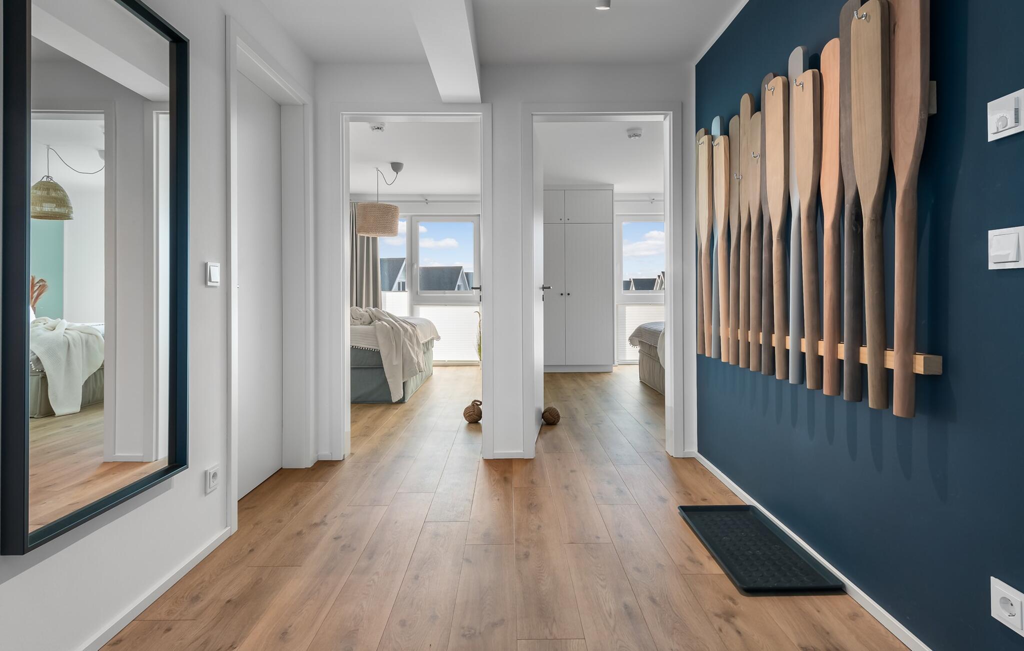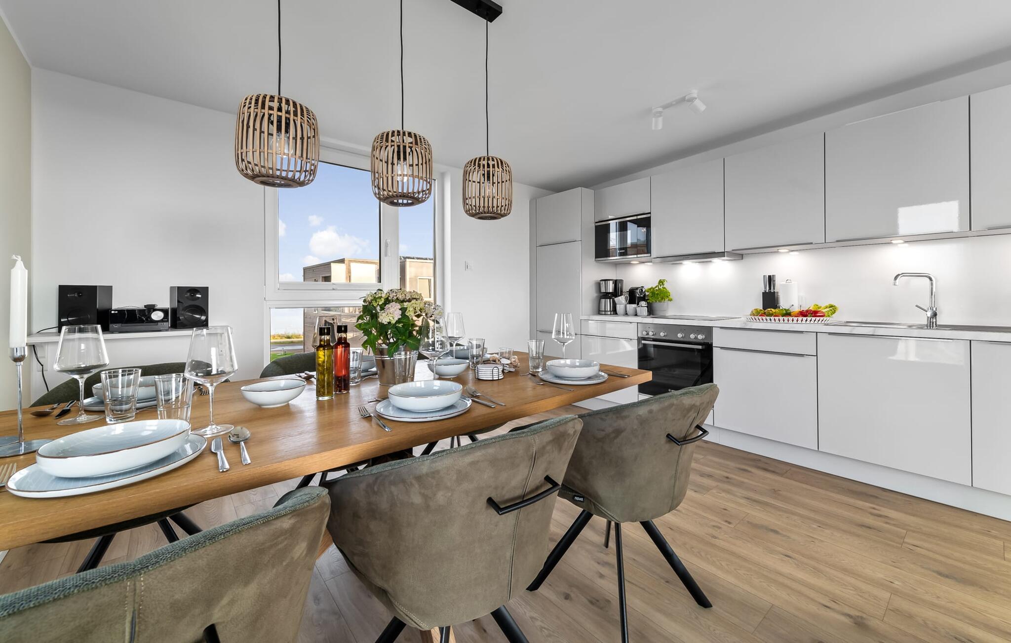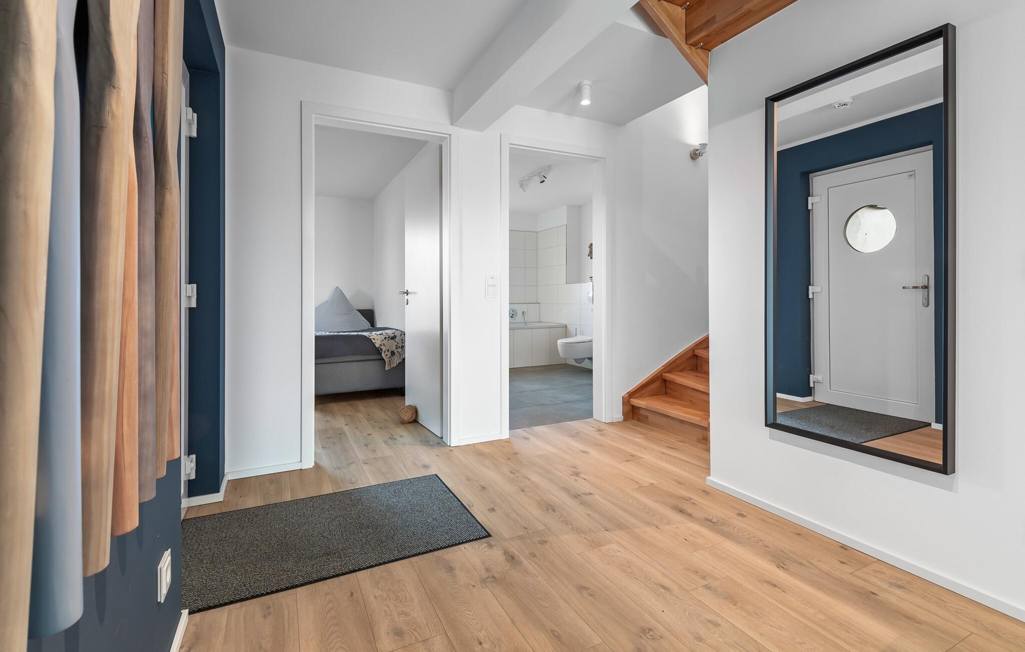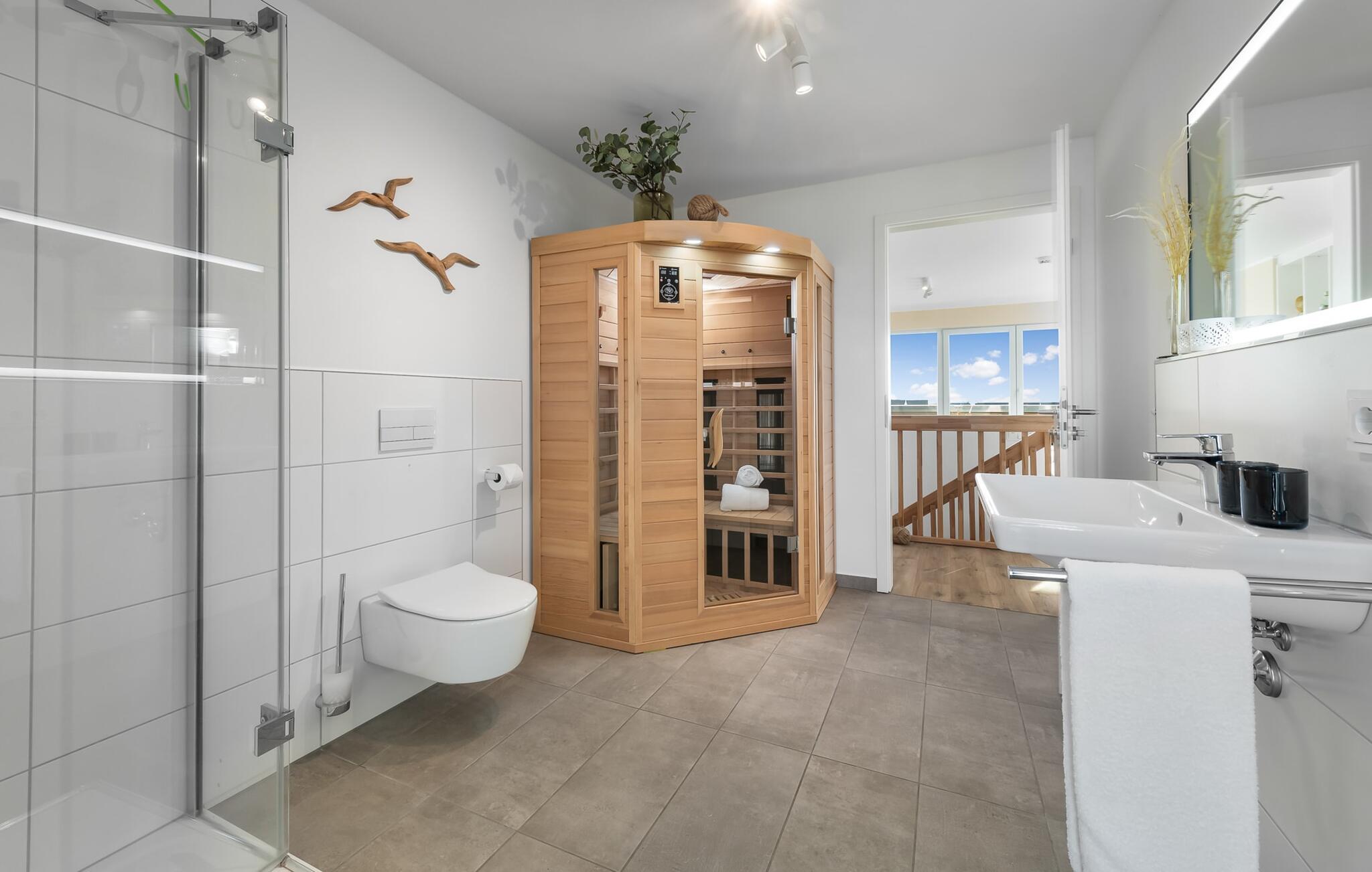 PIER 18 er en rummelig og rummelig maisonette ferielejlighed på første og anden sal. Ferielejligheden PIER 18 er en af de fire enheder i huset. Havnepromenaden i OstseeResort Olpenitz med dets voksende udbud og indkøbsmuligheder samt sejl- og sportsbådshavnen i OstseeResort Olpenitz kan nås til fods. Den maritime minigolfbane ligger i umiddelbar nærhed og byder på sjov for hele familien. PIER 18 skaber feriefølelse! De lyse og venlige møbler skaber en afslappet atmosfære. Lejlighedens tre soveværelser ligger på 1. sal med i alt to dobbelte boxmadrasser og to enkeltbokse. Uanset hvilket soveværelse I vælger, kan I være sikker på en afslappende søvn. Soveværelserne er alle udstyret med et OLED-tv til underholdning. De specialfremstillede indbyggede skabe tilbyder nok opbevaringsplads til alle de ting, I har brug for på ferien. Med vilje isoleret fra familielivet i opholdsområdet tilbyder PIER 18 også en hjemmekontorarbejdsstation i et af soveværelserne. Dette er udstyret med et højdejusterbart skrivebord. Udover soveværelserne har førstesalen også et rummeligt badeværelse med badekar og vaskemaskine. Når I ankommer på anden sal, bliver I budt velkommen af vinduesfronten fra gulv til loft med den tilstødende terrasse. Tilstrækkelige vinduer er udstyret med insektnet, og hvert vindue har plisségardiner for privatlivets fred. Ankom, kig ud af vinduet og nyd naturens fred og ro. Her er ferie ren afslapning og afslapning! Hverdagen bliver mere og mere fjern... Skulle vejret nogensinde vise en nordisk side, sørger den knitrende pejs og opholdsstuen med krammefaktor for yderligere komfort. Det integrerede køkken er udstyret til en høj standard. I får adgang til den store sydvestvendte terrasse direkte fra opholdsstuen eller køkkenet. Her kan I tilbringe mange afslappende timer med heldagssol og se fantastiske solnedgange. Et andet komplet badeværelse med wellnesskarakter og en rummelig panoramabruser på gulvniveau og infrarød sauna runder den komplette pakke af ideelt til en afslappende ferie. Foran ferielejligheden finder I jeres egen parkeringsplads. Vores favoritsted: Efter en dag på stranden kan I afslutte dagen på den store sofa foran pejsen. Bemærk venligst: OstseeResort Olpenitz er meget populært, og der bygges fortsat i parken. Ikke desto mindre kan I se frem til en 5-stjernet standard og et førsteklasses ophold. Byggeaktiviteterne kommer ikke til at forstyrre jer på ferien, og derfor gives der ikke yderligere afslag i prisen.