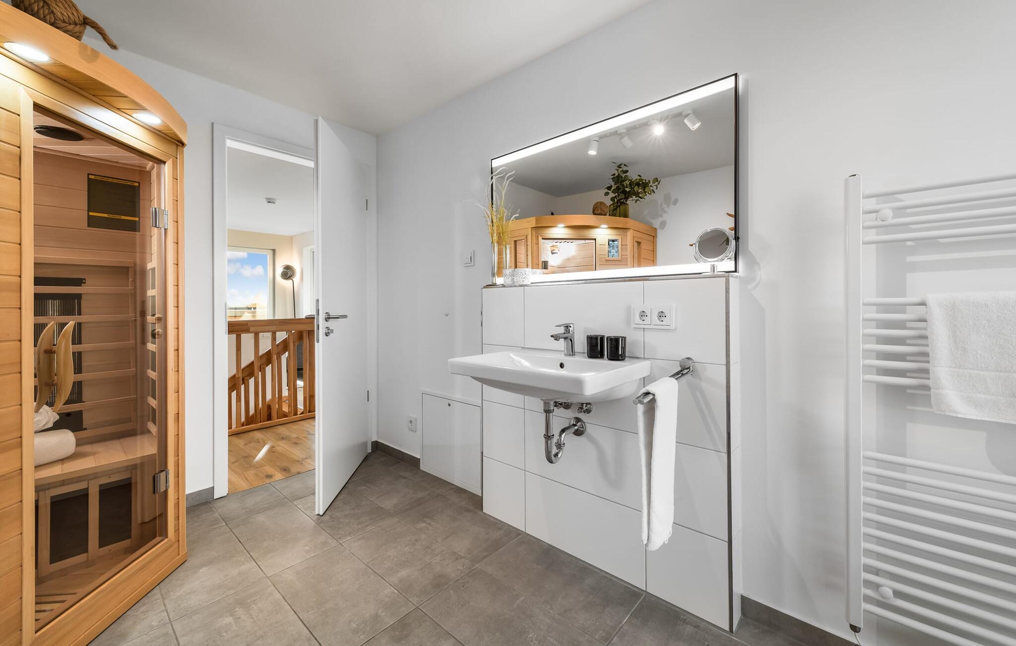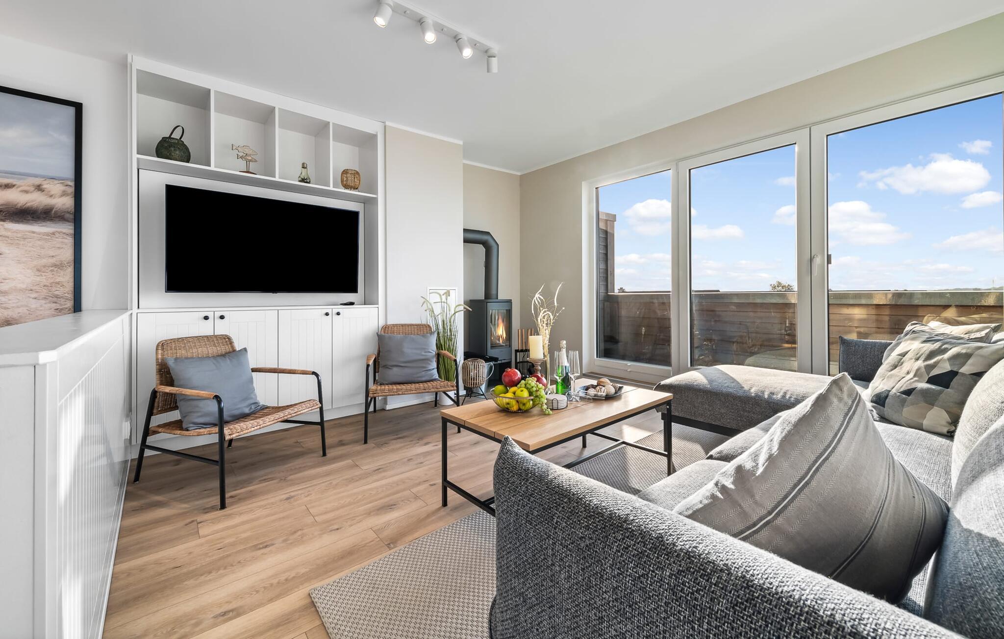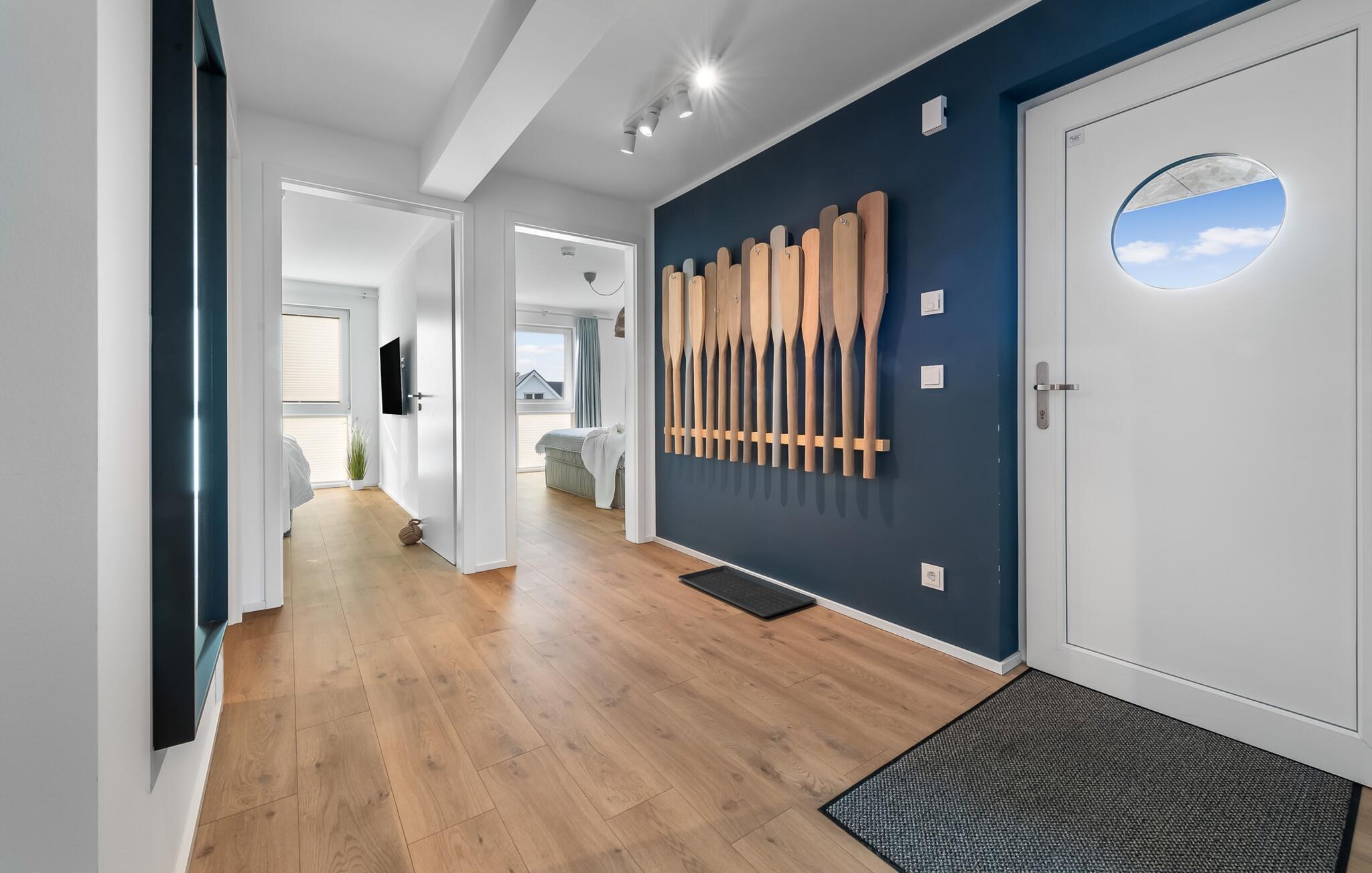 PIER 18 er en rummelig og rummelig maisonette ferielejlighed på første og anden sal. Ferielejligheden PIER 18 er en af de fire enheder i huset. Havnepromenaden i OstseeResort Olpenitz med dets voksende udbud og indkøbsmuligheder samt sejl- og sportsbådshavnen i OstseeResort Olpenitz kan nås til fods. Den maritime minigolfbane ligger i umiddelbar nærhed og byder på sjov for hele familien. PIER 18 skaber feriefølelse! De lyse og venlige møbler skaber en afslappet atmosfære. Lejlighedens tre soveværelser ligger på 1. sal med i alt to dobbelte boxmadrasser og to enkeltbokse. Uanset hvilket soveværelse I vælger, kan I være sikker på en afslappende søvn. Soveværelserne er alle udstyret med et OLED-tv til underholdning. De specialfremstillede indbyggede skabe tilbyder nok opbevaringsplads til alle de ting, I har brug for på ferien. Med vilje isoleret fra familielivet i opholdsområdet tilbyder PIER 18 også en hjemmekontorarbejdsstation i et af soveværelserne. Dette er udstyret med et højdejusterbart skrivebord. Udover soveværelserne har førstesalen også et rummeligt badeværelse med badekar og vaskemaskine. Når I ankommer på anden sal, bliver I budt velkommen af vinduesfronten fra gulv til loft med den tilstødende terrasse. Tilstrækkelige vinduer er udstyret med insektnet, og hvert vindue har plisségardiner for privatlivets fred. Ankom, kig ud af vinduet og nyd naturens fred og ro. Her er ferie ren afslapning og afslapning! Hverdagen bliver mere og mere fjern... Skulle vejret nogensinde vise en nordisk side, sørger den knitrende pejs og opholdsstuen med krammefaktor for yderligere komfort. Det integrerede køkken er udstyret til en høj standard. I får adgang til den store sydvestvendte terrasse direkte fra opholdsstuen eller køkkenet. Her kan I tilbringe mange afslappende timer med heldagssol og se fantastiske solnedgange. Et andet komplet badeværelse med wellnesskarakter og en rummelig panoramabruser på gulvniveau og infrarød sauna runder den komplette pakke af ideelt til en afslappende ferie. Foran ferielejligheden finder I jeres egen parkeringsplads. Vores favoritsted: Efter en dag på stranden kan I afslutte dagen på den store sofa foran pejsen. Bemærk venligst: OstseeResort Olpenitz er meget populært, og der bygges fortsat i parken. Ikke desto mindre kan I se frem til en 5-stjernet standard og et førsteklasses ophold. Byggeaktiviteterne kommer ikke til at forstyrre jer på ferien, og derfor gives der ikke yderligere afslag i prisen.