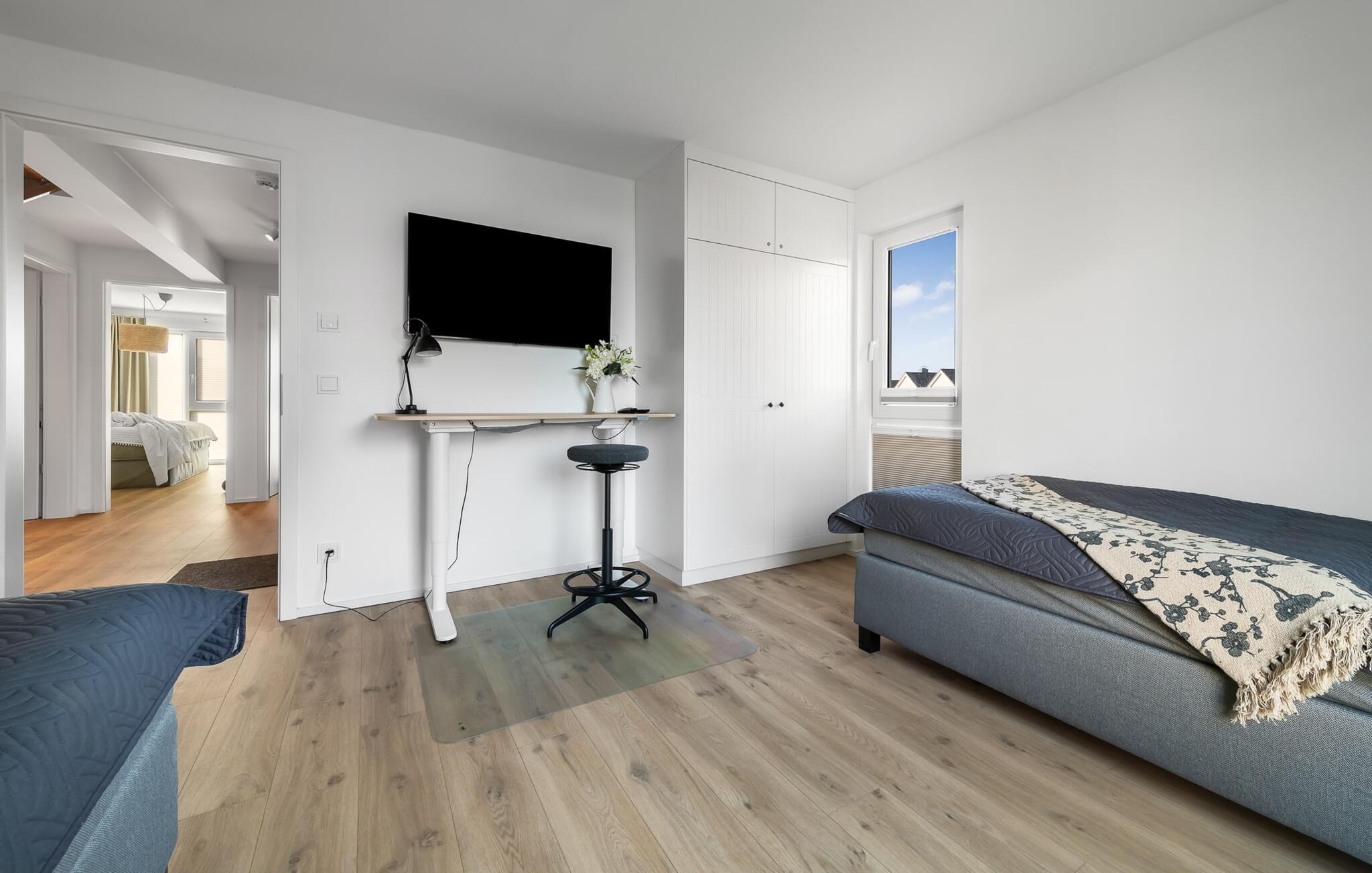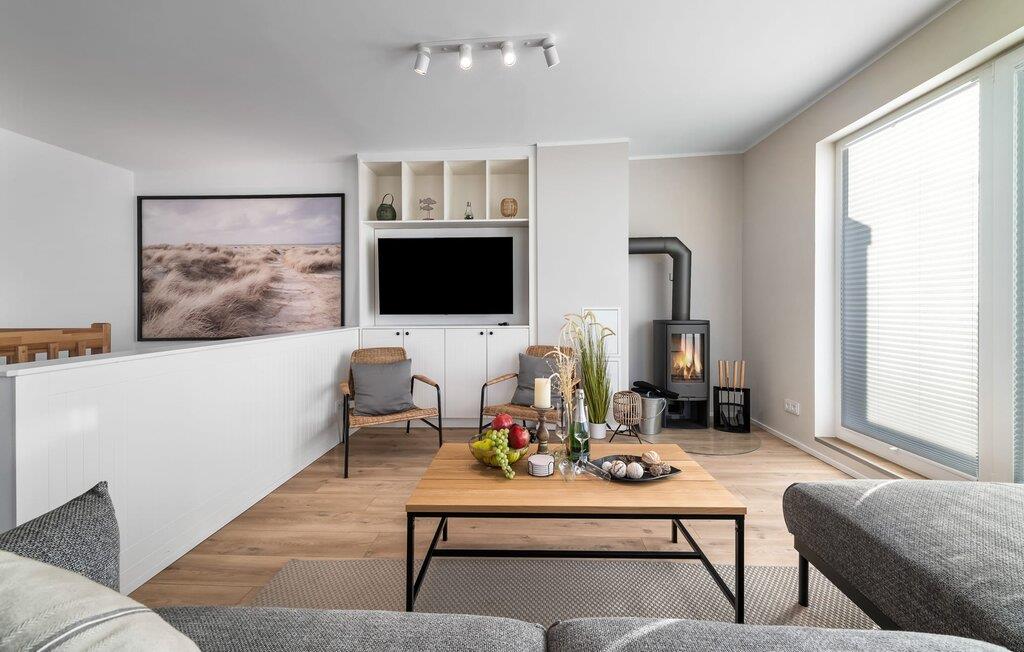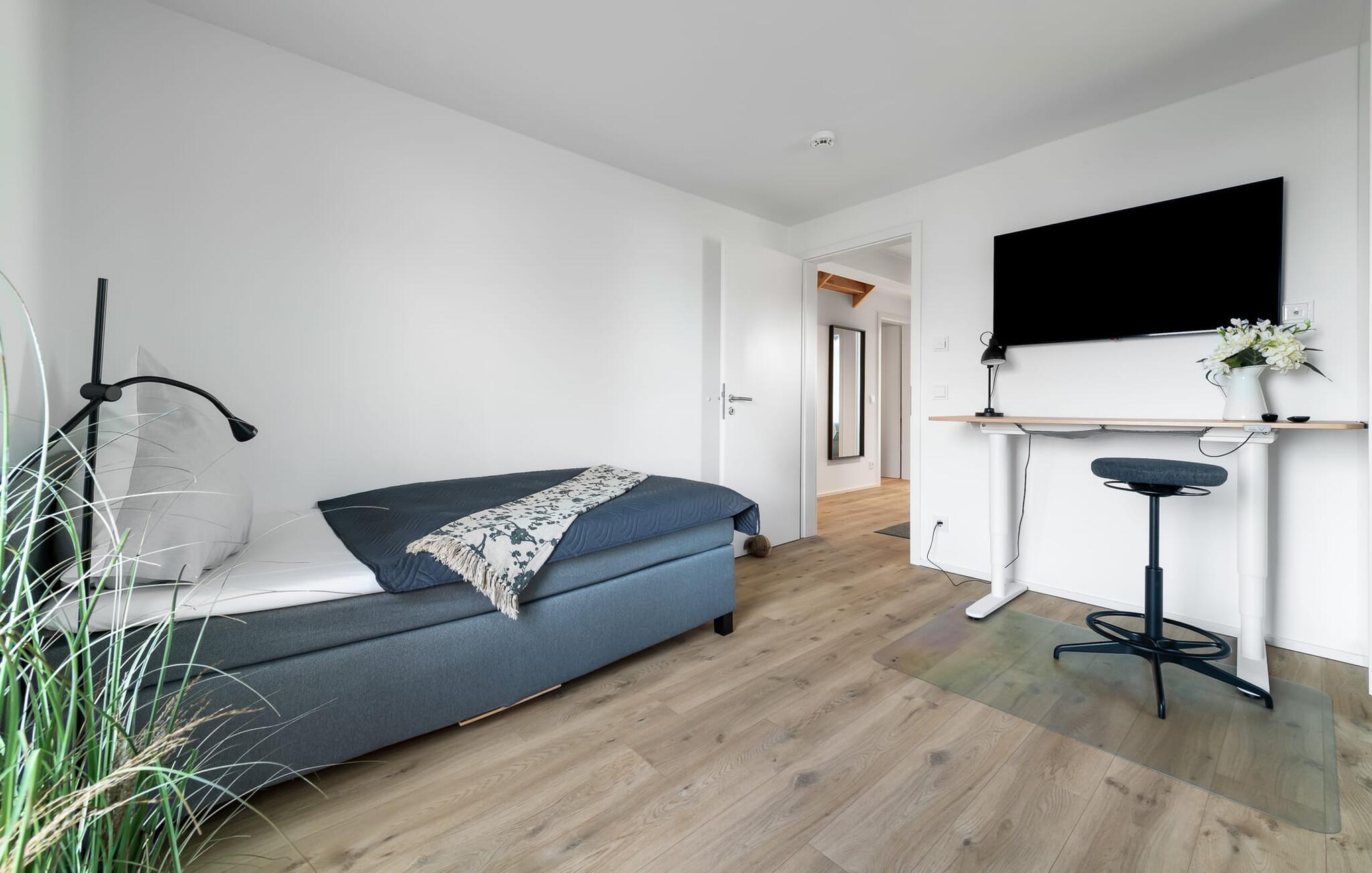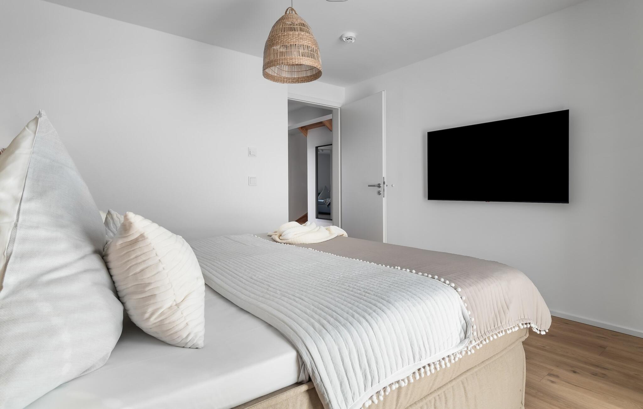 PIER 18 er en rummelig og rummelig maisonette ferielejlighed på første og anden sal. Ferielejligheden PIER 18 er en af de fire enheder i huset. Havnepromenaden i OstseeResort Olpenitz med dets voksende udbud og indkøbsmuligheder samt sejl- og sportsbådshavnen i OstseeResort Olpenitz kan nås til fods. Den maritime minigolfbane ligger i umiddelbar nærhed og byder på sjov for hele familien. PIER 18 skaber feriefølelse! De lyse og venlige møbler skaber en afslappet atmosfære. Lejlighedens tre soveværelser ligger på 1. sal med i alt to dobbelte boxmadrasser og to enkeltbokse. Uanset hvilket soveværelse I vælger, kan I være sikker på en afslappende søvn. Soveværelserne er alle udstyret med et OLED-tv til underholdning. De specialfremstillede indbyggede skabe tilbyder nok opbevaringsplads til alle de ting, I har brug for på ferien. Med vilje isoleret fra familielivet i opholdsområdet tilbyder PIER 18 også en hjemmekontorarbejdsstation i et af soveværelserne. Dette er udstyret med et højdejusterbart skrivebord. Udover soveværelserne har førstesalen også et rummeligt badeværelse med badekar og vaskemaskine. Når I ankommer på anden sal, bliver I budt velkommen af vinduesfronten fra gulv til loft med den tilstødende terrasse. Tilstrækkelige vinduer er udstyret med insektnet, og hvert vindue har plisségardiner for privatlivets fred. Ankom, kig ud af vinduet og nyd naturens fred og ro. Her er ferie ren afslapning og afslapning! Hverdagen bliver mere og mere fjern... Skulle vejret nogensinde vise en nordisk side, sørger den knitrende pejs og opholdsstuen med krammefaktor for yderligere komfort. Det integrerede køkken er udstyret til en høj standard. I får adgang til den store sydvestvendte terrasse direkte fra opholdsstuen eller køkkenet. Her kan I tilbringe mange afslappende timer med heldagssol og se fantastiske solnedgange. Et andet komplet badeværelse med wellnesskarakter og en rummelig panoramabruser på gulvniveau og infrarød sauna runder den komplette pakke af ideelt til en afslappende ferie. Foran ferielejligheden finder I jeres egen parkeringsplads. Vores favoritsted: Efter en dag på stranden kan I afslutte dagen på den store sofa foran pejsen. Bemærk venligst: OstseeResort Olpenitz er meget populært, og der bygges fortsat i parken. Ikke desto mindre kan I se frem til en 5-stjernet standard og et førsteklasses ophold. Byggeaktiviteterne kommer ikke til at forstyrre jer på ferien, og derfor gives der ikke yderligere afslag i prisen.