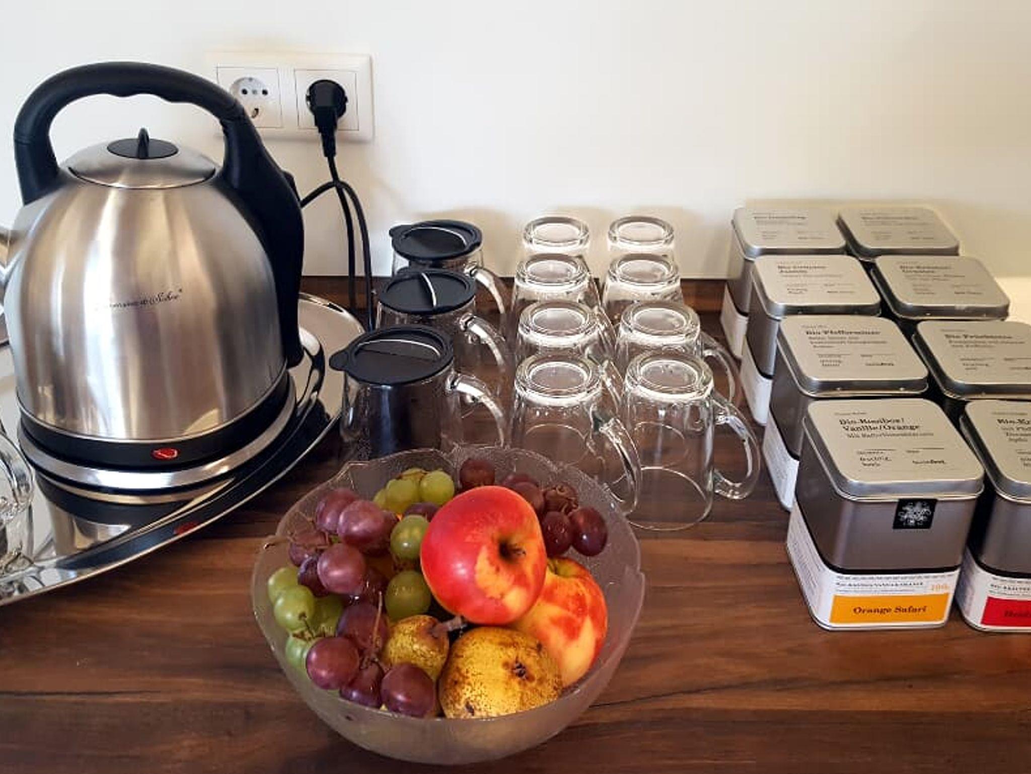 Frühstück vor Ort zubuchbar: 10;- € pro Person, Kinder bis 3 Jahre frei, bis 10 Jahre 4,- €, bis 14 Jahre 8,- €.