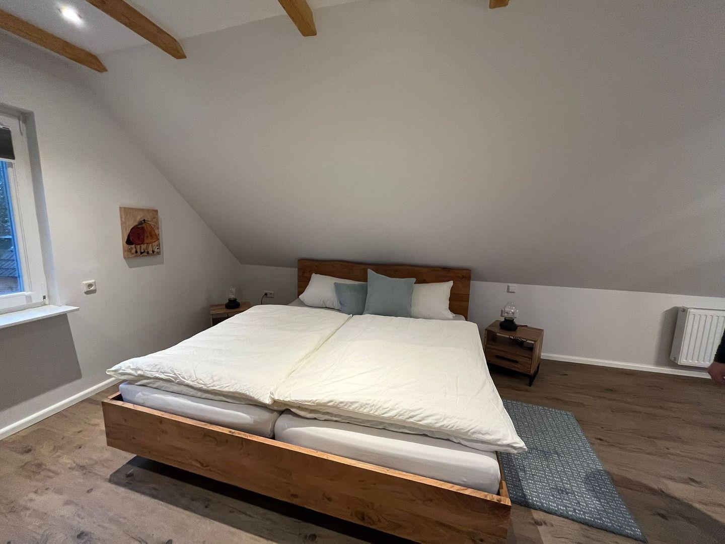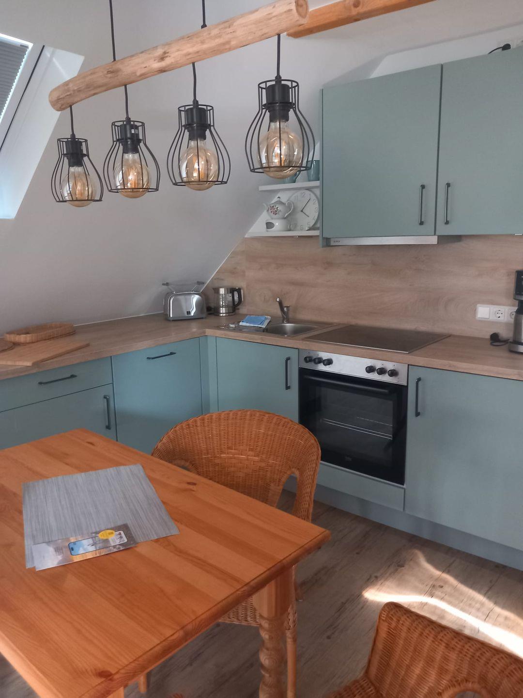 Die Ferienwohnung Amelie befindet sich in Amei´s Huuske im Obergeschoß. Die Wohnung wurde 2021 komplett renoviert. Über eine eigene Eingangstür gelangen Sie in die Oberwohnung. Schon beim Öffnen der Tür fühlen Sie sich gleich wohl. Im Eingangsbereich finden Sie eine Garderobe. Das helle Badezimmer verfügt über Dusche/WC. Der Wohn- und Schlafraum lässt keine Wünsche offen. Getrennt durch einen mittigen Schornstein wirkt der Raum gemütlich. Die moderne Küchenzeile ist voll ausgestattet. Gegenüber kann am Esstisch mit Korbstühlen fabelhaft gegessen und geklönt werden. Ein Sofa lädt zum Ausruhen ein. Der Mittelpunkt des Raumes ist das große Doppelbett. Kuschelige Abende und Nächte stehen hier bestimmt auf dem Plan. Ein großer Flachbild-TV steht bereit. Die Wohnung ist etwas Besonderes und mit liebevollen Details eingerichtet. Entspannung und Relaxen pur! Im Außenbereich kann eine kleine Terrasse benutzt werden. WLAN ist verfügbar! Ihren Hund können Sie gerne mitbringen (bitte beachten Sie die etwas steile Treppe). Ein Parkplatz befindet sich am Haus.