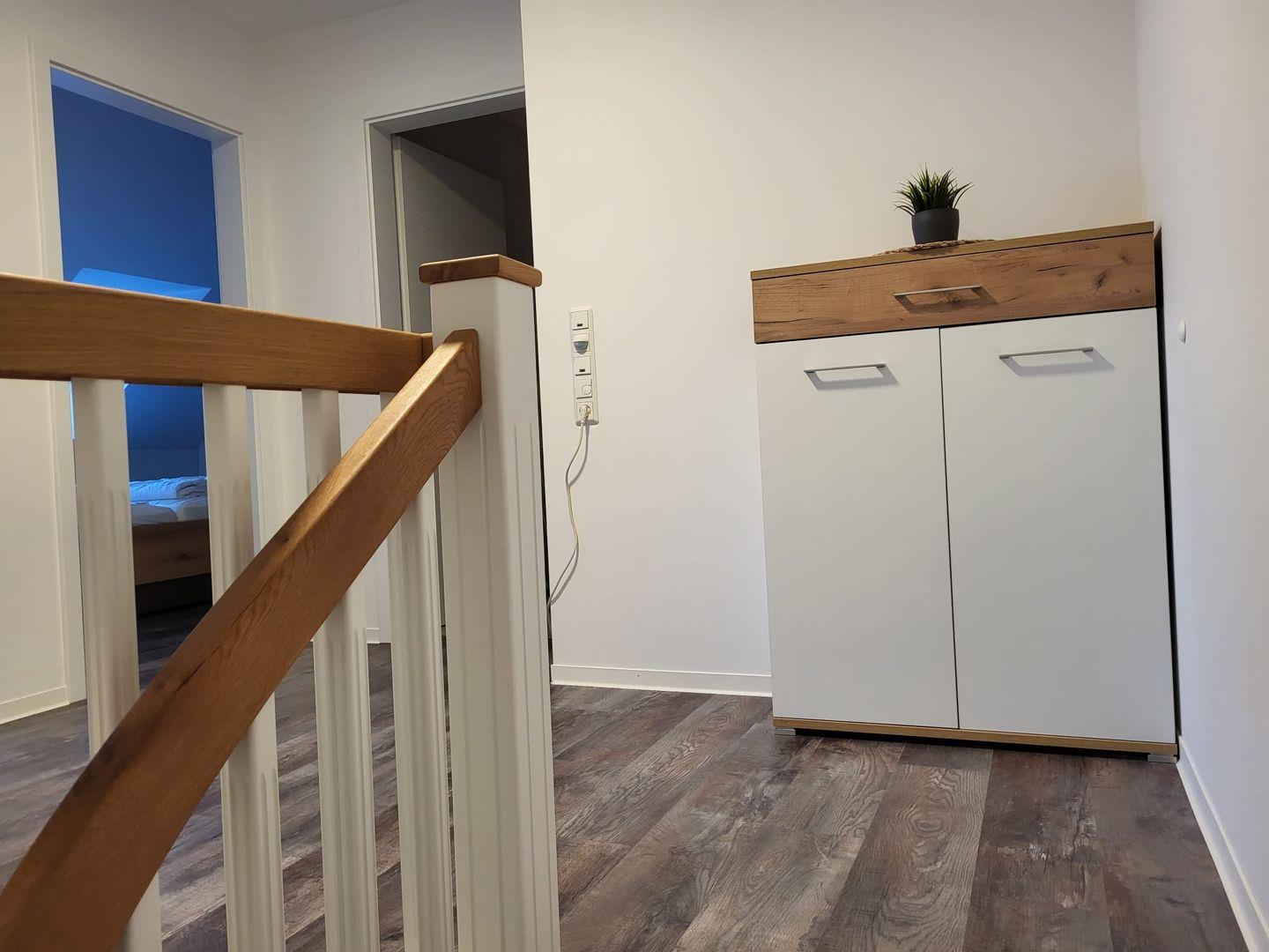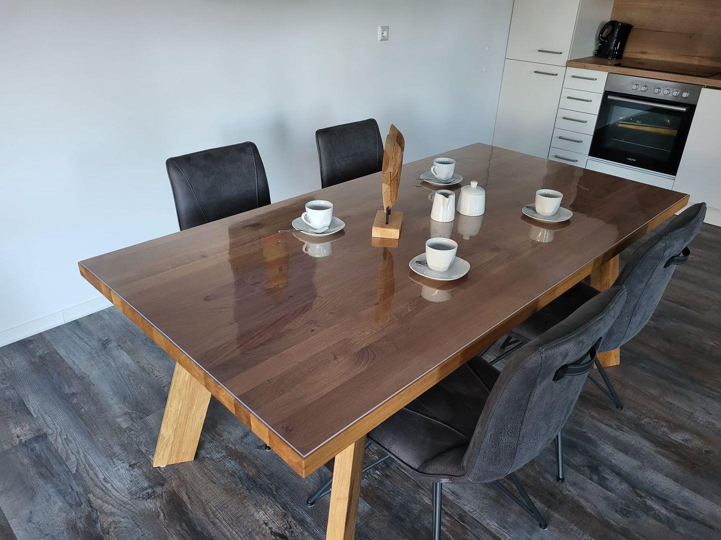 Die große helle Wohnung "Zum Ankerplatz" wurde Ende 2021 fertiggestellt. Sie befindet sich in einem Gulfhof in der Krummhörner Ortschaft Pilsum. Nach Greetsiel sind es ca. 3 km und gut mit dem Fahrrad zu erreichen. Kommen Sie herein in den Gulfhof! Vom großen Flur gelangen Sie in die 128 m² große Wohnung. Im Erdgeschoß befindet sich der helle und großzügige Wohn- und Essbereich mit Küche. Relaxen Sie auf der gemütlichen Couch mit großem Flachbild-TV. Durch die großen Fensterfronten haben Sie immer genügend Licht. Hier ist auch der Zugang zur Terrasse. Diese lädt ein zum Entspannen und zum frische Nordseeluft schnuppern. Die weiße voll ausgestattete Küchenzeile lässt den Hobbykoch erstrahlen. Zubereitete Speisen können am großen Esstisch serviert werden. Hier findet die ganze Familie Platz. Über eine Treppe gelangen Sie ins Obergeschoß. Von einem kleinen Flur erreichen Sie das moderne Duschbad mit Waschmaschine. Nebenan kann im Schlafzimmer mit Doppelbett angenehm geträumt werden. Ein zusätzliches Schlafzimmer mit 2 Einzelbetten komplettiert die obere Etage. Ein Fernseher steht in beiden Schlafräumen bereit. WLAN ist verfügbar! Ein Parkplatz mit E-Ladestation befindet sich direkt vor dem Gulfhof. Hier können Sie Ihr Fahrzeug aufladen. Die Gebühr beträgt 7,50 € je Nacht. In der Fahrradbox können Sie Ihre mitgebrachten Fahrräder unterstellen. E-Bikes können hier geladen werden. Für einen gemeinsamen Urlaub mit der ganzen Familie oder mit Freunden kann die Nachbarwohnung "Zum kleinen Leuchtturm", die fast identisch aufgeteilt und eingerichtet ist, dazu gebucht werden.