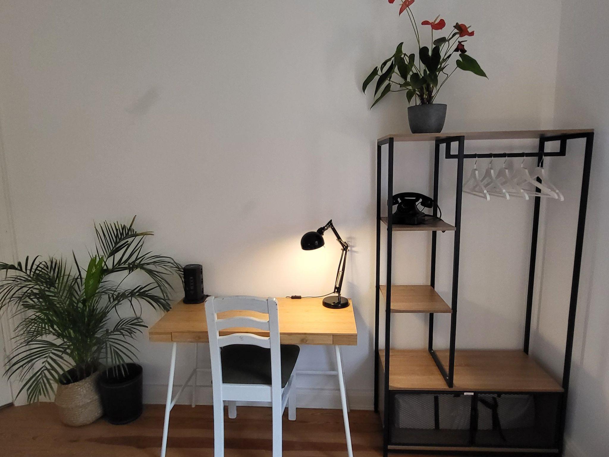 • Schreibtisch mit Whiteboard, Flipchart