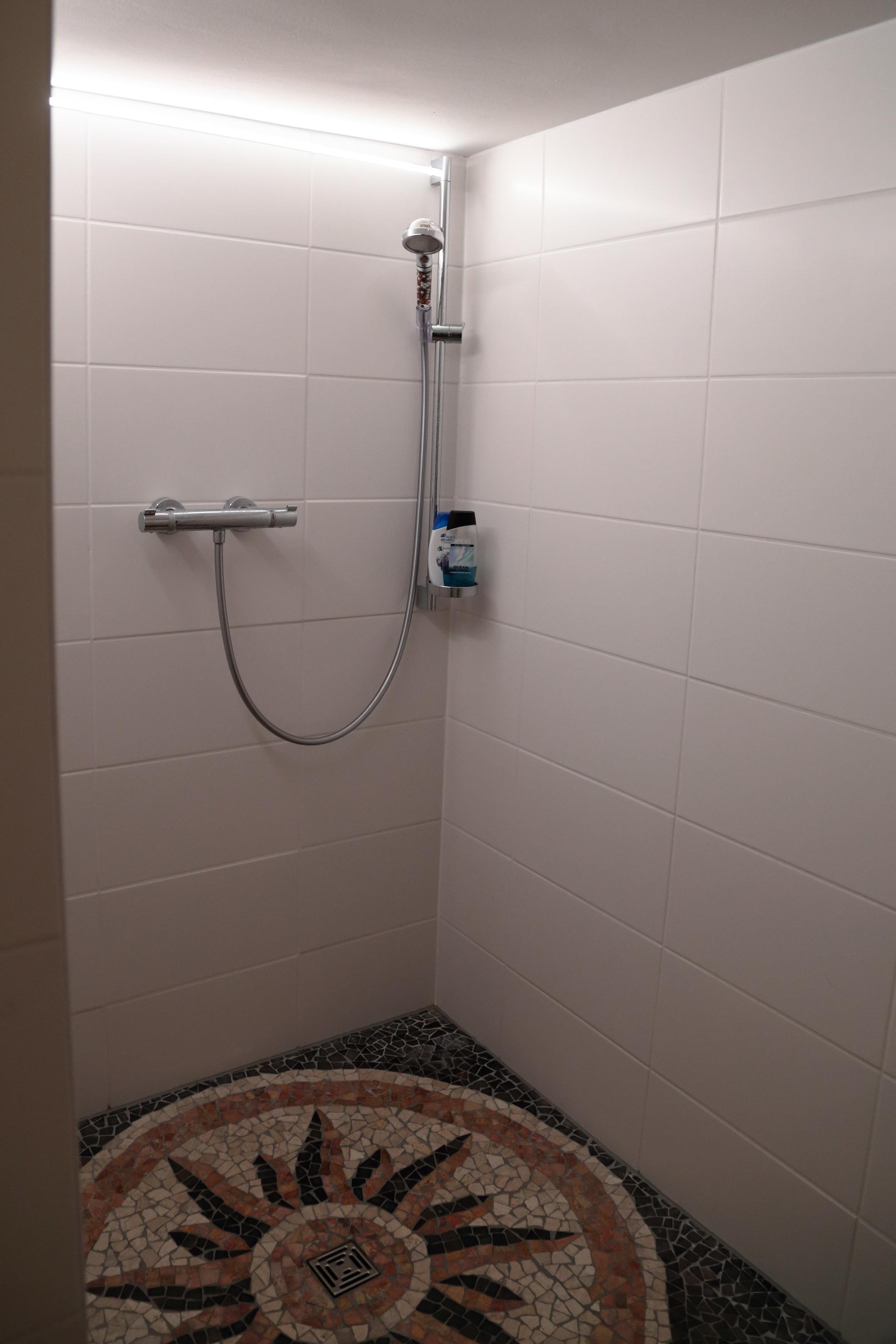 Komfortfaciliteter på badeværelset (hårtørrer, shampoo, hårbalsam, håndsæbe og brusegel)