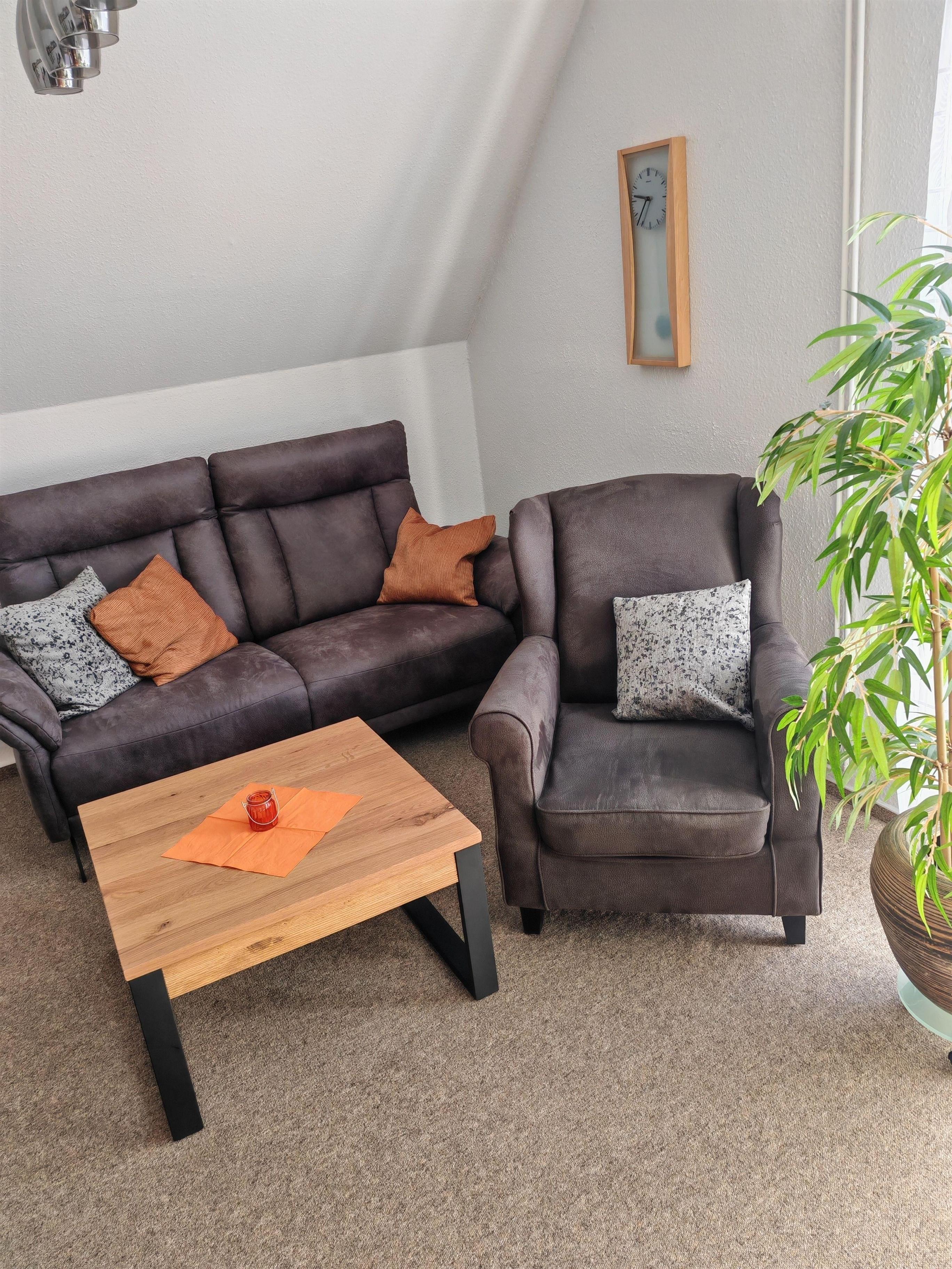 Im Wohn-/Schlafraum finden Sie eine gemütliche u. moderne Ausstattung mit Anbauwand, Couchgarnitur u. großem Flachbild-TV mit Stick für Streamingdienste mit Anmeldung über das eigene Amazon Konto.