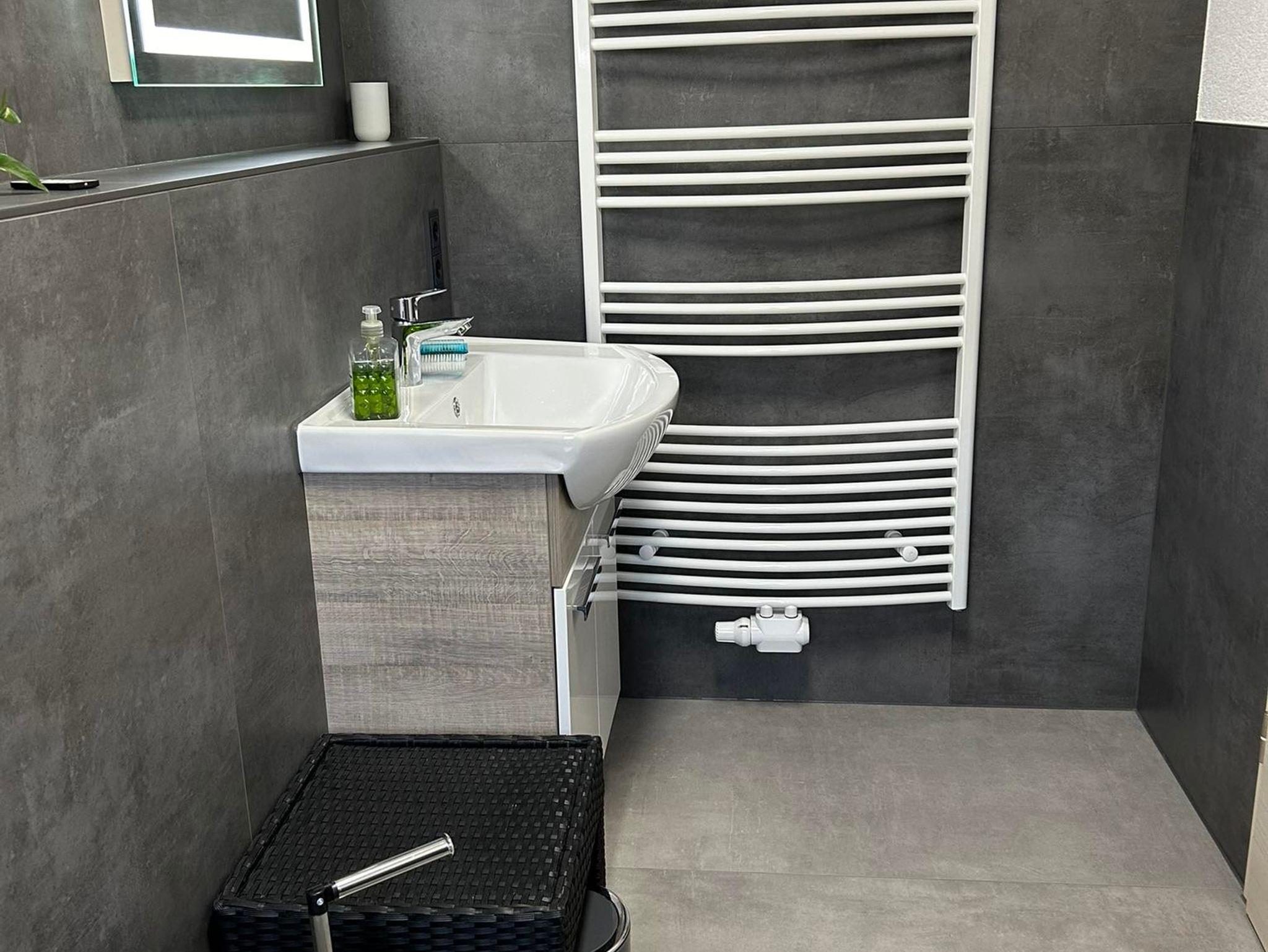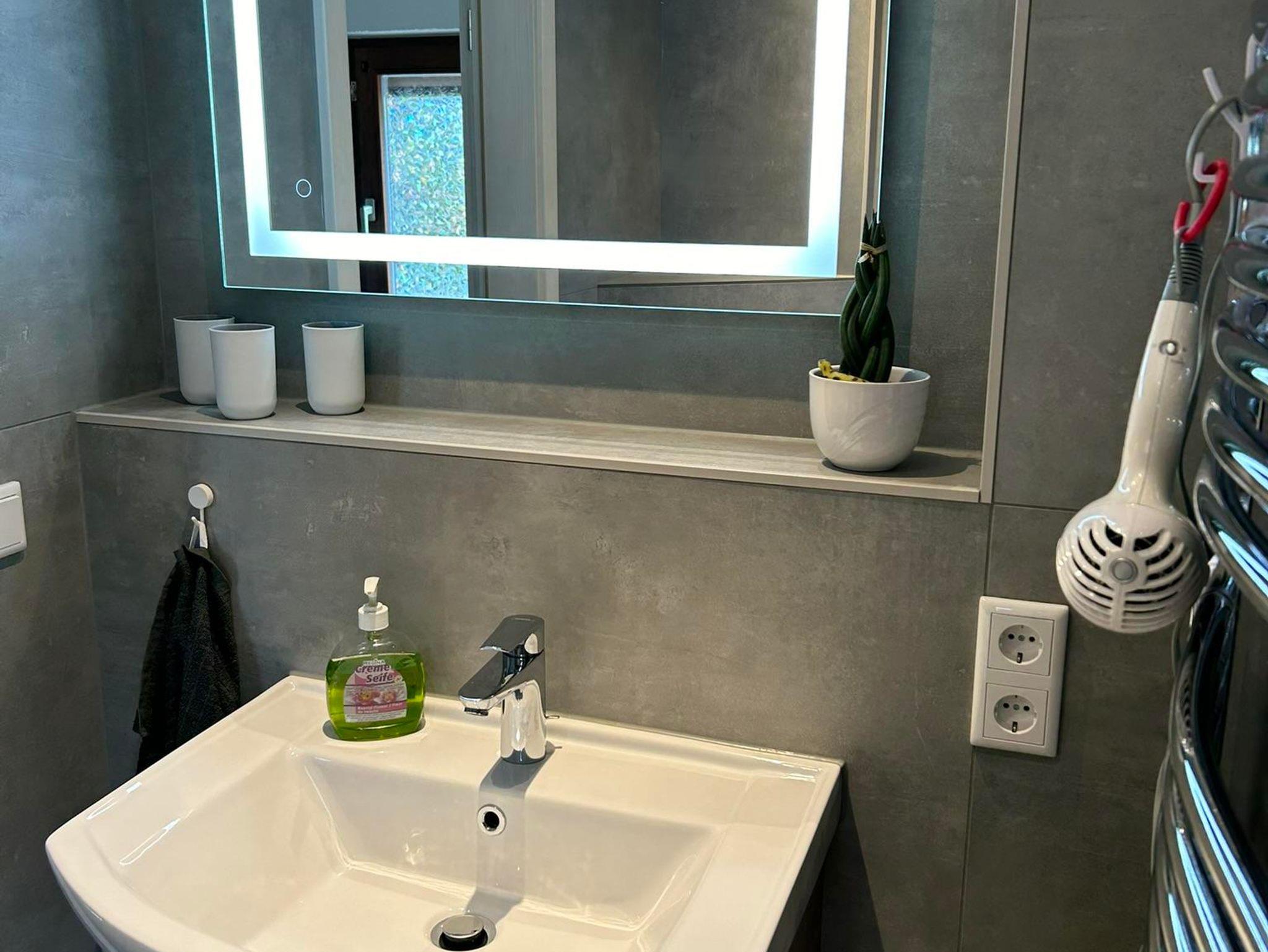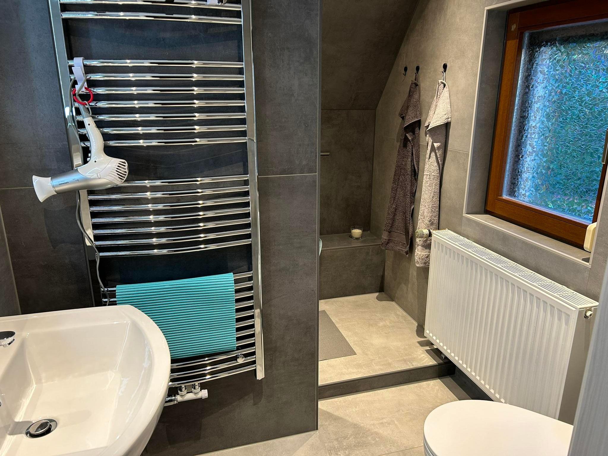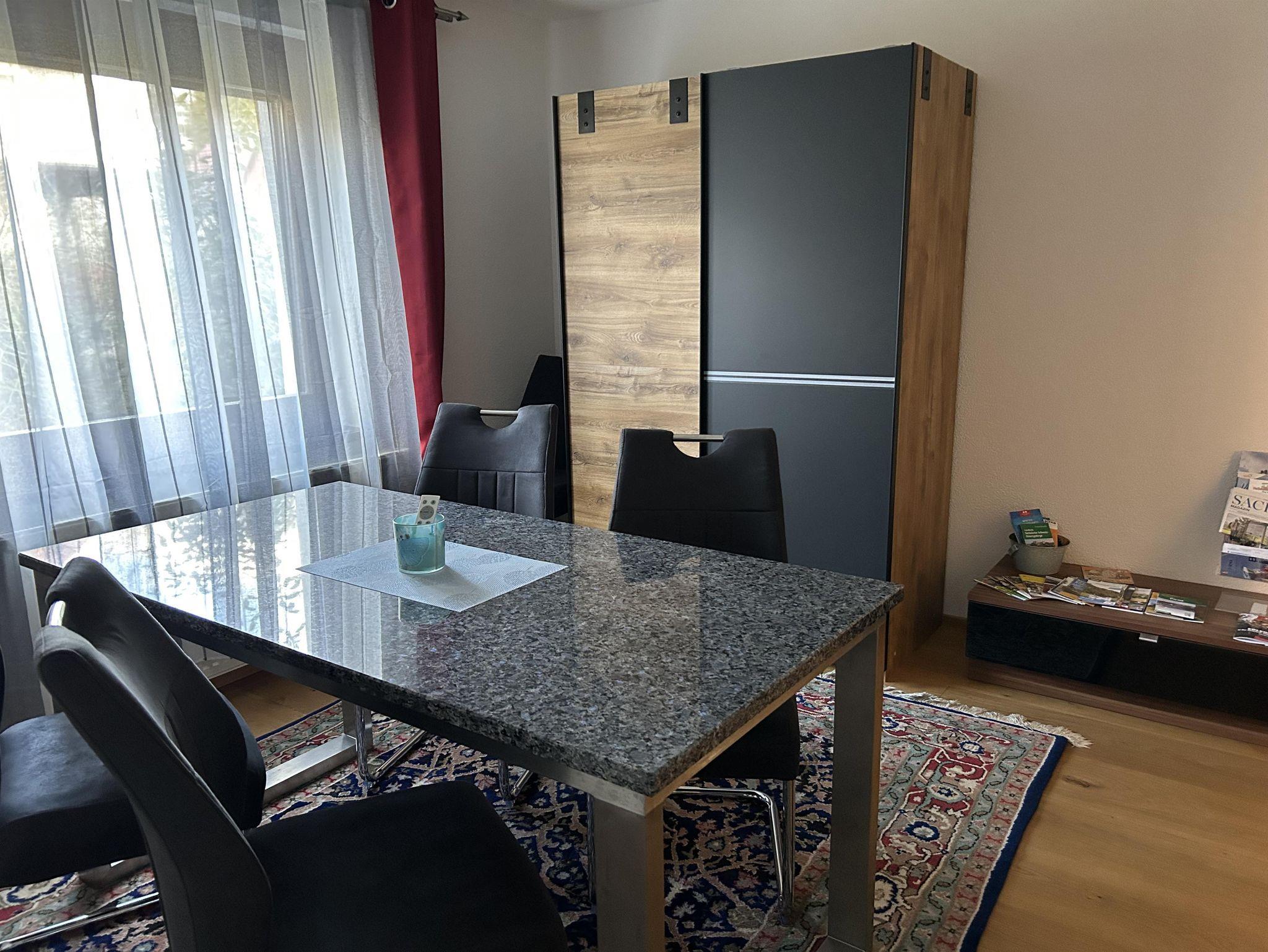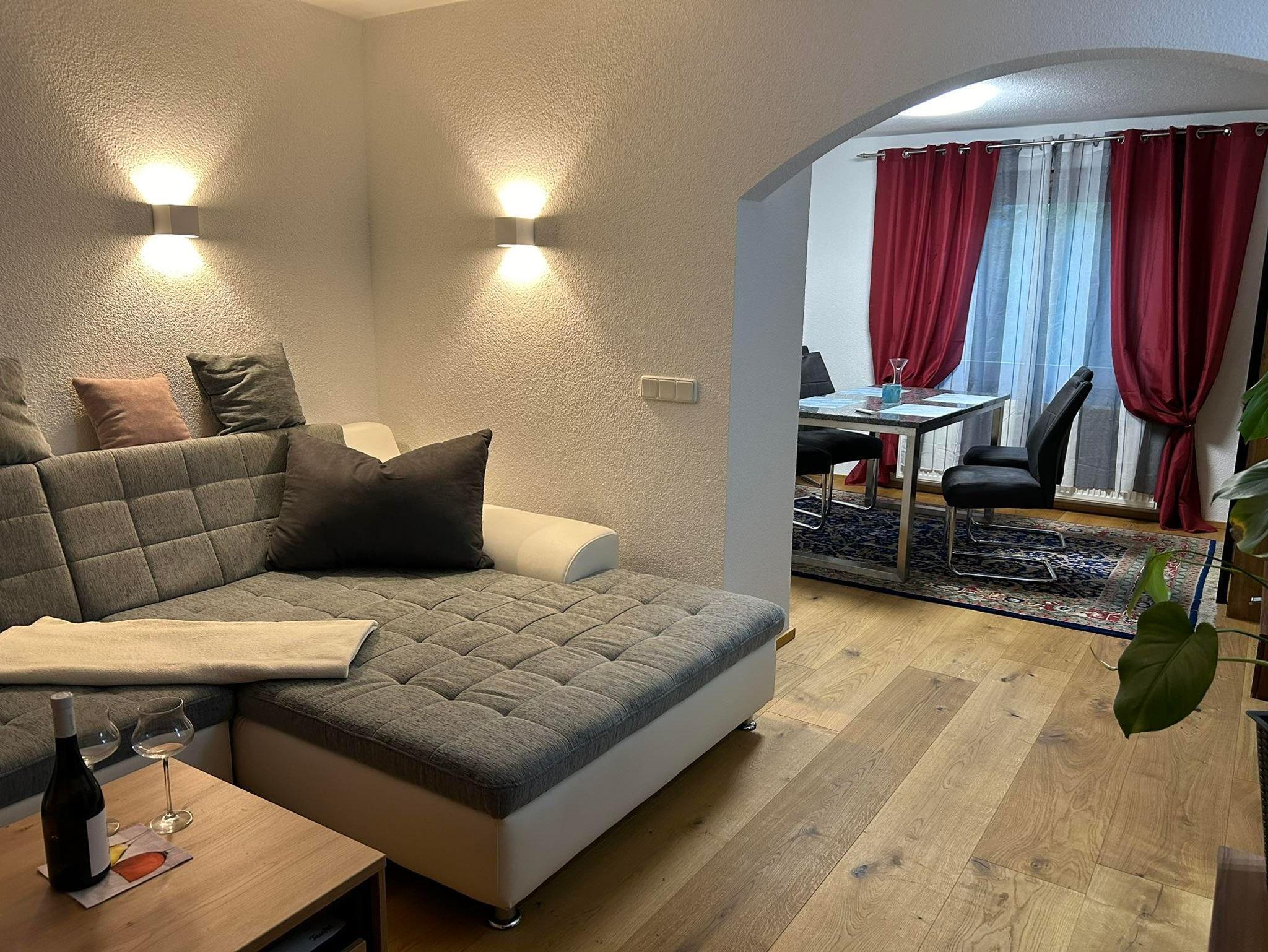 Unsere Ferienwohnung - welche komplett neu saniert und eingerichtet wurde - ideal für 2 Erwachsene und 1 bis 2 Kinder (max. 5 Personen) erstreckt sich über 2 Etagen. Über die Treppe erreichen wir im Obergeschoss das Schlafzimmer mit einem Doppelbett, und ein weiteres Schlafzimmer als Durchgangszimmer mit einem Queensize-Doppelbett. Auf Anfrage ist ein Kinderreisebett und ein Hochstuhl möglich. Im Dachgeschoss steht eine weitere Schlafmöglichkeit zur Verfügung. Das Bad ist mit Dusche und WC ausgestattet. Ein separates Gäste WC steht im Erdgeschoss zur Verfügung.