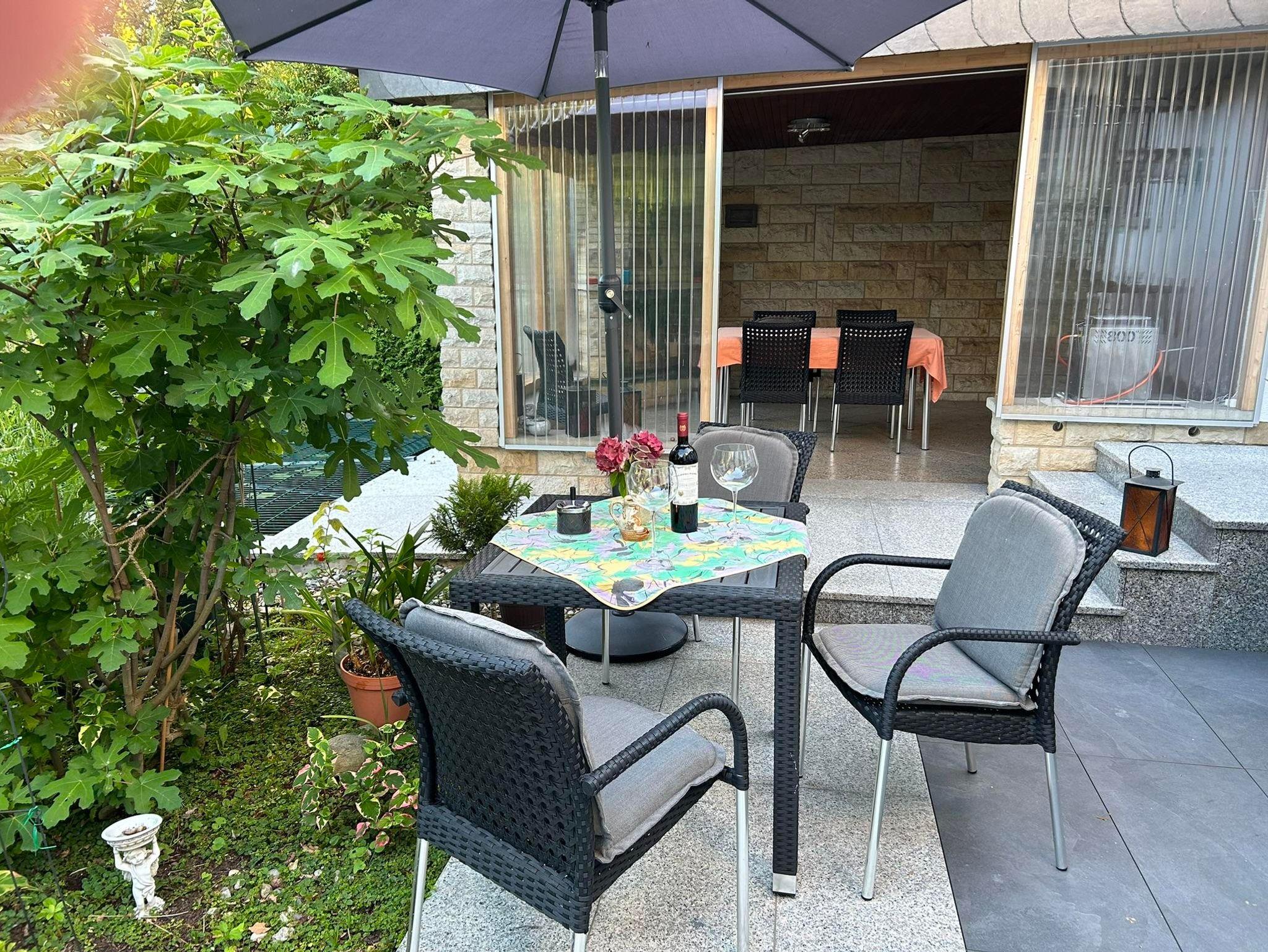 Für einen ruhig, gemütlichen Ausklang am Abend stellen wir auch gern unsere Sitzecke im Garten zur Verfügung.